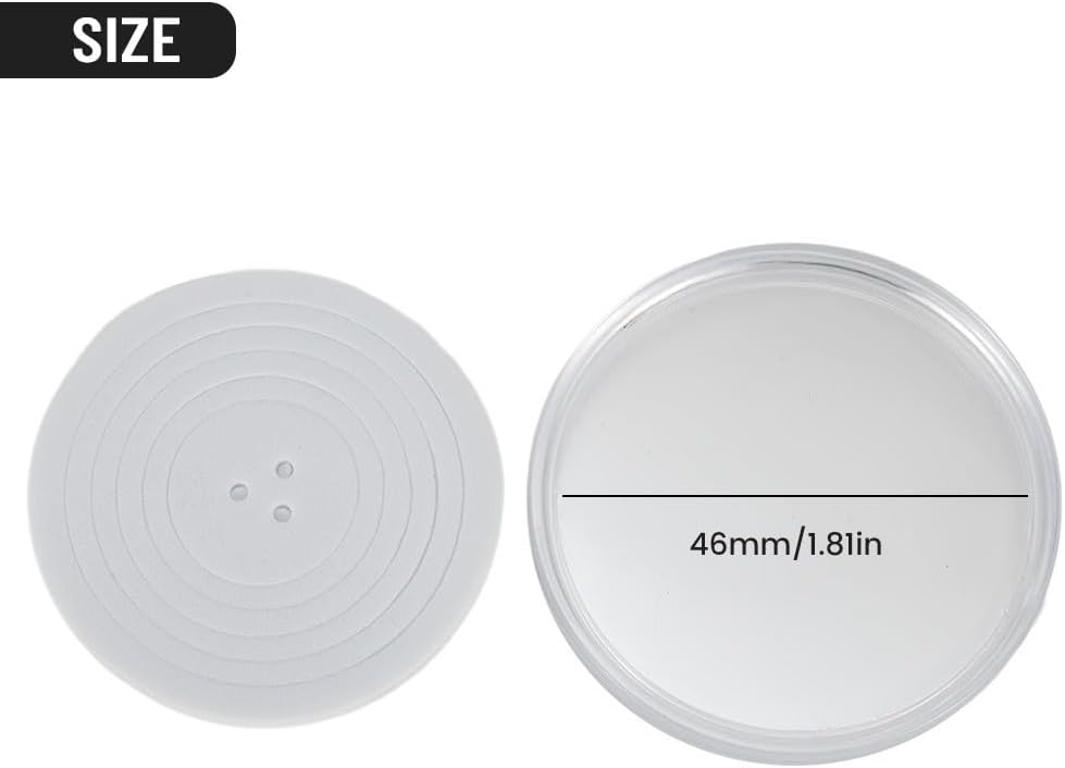 Raccolta e protezione delle monete: questi portamonete in plastica trasparente sono estremamente utili per raccogliere e proteggere le monete. Materiale: realizzate in materiale plastico di alta qualità, queste capsule per monete durano a lungo. Dimensioni perfette: con un diametro interno di 46 mm, questi portamonete possono ospitare monete di varie dimensioni. Guarnizioni interne incluse: ogni set viene fornito con guarnizioni ad anello interne di dimensioni da 18 mm, 23 mm, 28 mm, 33 mm e 38 mm, offrendo una vestibilità sicura per diverse monete. Opzioni di imballaggio flessibile: scegli tra 10 o 25 capsule per monete, ognuna con il rispettivo set di guarnizioni ad anello interno.