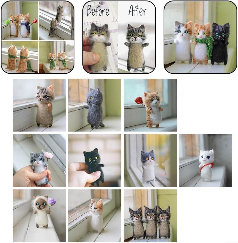 Feltro di lana per gatti fai da te: crea la tua bambola realistica e adorabile con questo kit per infeltrimento ad ago. Perfetto per chi ama l'artigianato artigianale, include tutti i materiali necessari. Confezione di materiale in feltro di lana non finito: personalizza e aggiungi il tuo tocco creativo alla bambola gatto con questa confezione. Contiene tessuti e materiali in PVC che consentono la personalizzazione. Kit di strumenti per infeltrimento ad ago per bambole fatte a mano: goditi la comodità e la facilità di creare le tue bambole fatte a mano con questo kit. Include una varietà di strumenti per infeltrimento ad ago. Foglie verdi realistiche e morbide in plastica rivestita: la bambola per gatti è impreziosita da foglie verdi in plastica realistiche e morbide, che gli conferiscono un tocco glamour. Le foglie assomigliano a foglie in stile eucalipto. Bellissimo anello per candele: non solo puoi creare una bambola con gatto, ma questo prodotto funge anche da bellissimo anello per candele. Aggiunge eleganza e fascino al tuo arredamento. Disponibile in diversi colori.