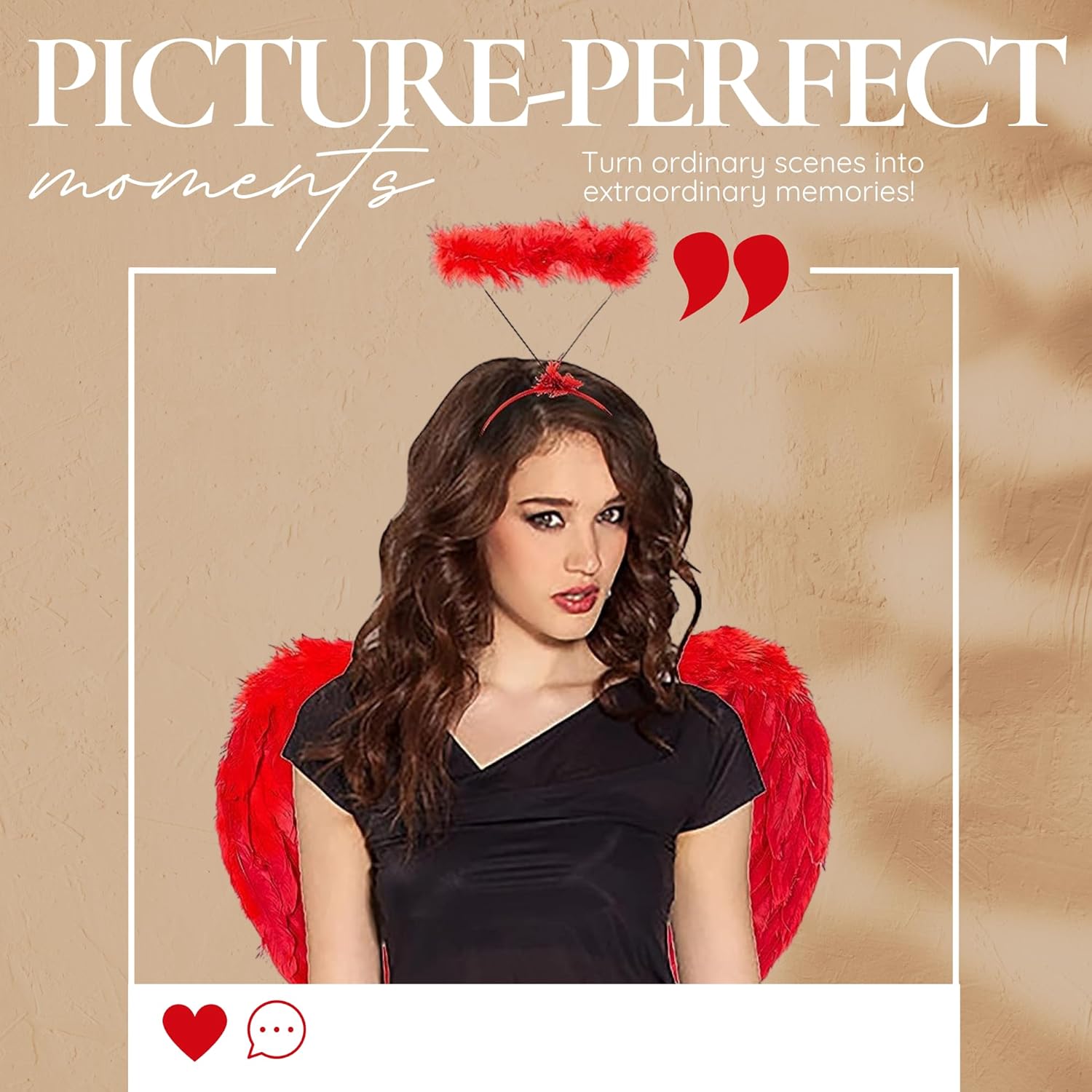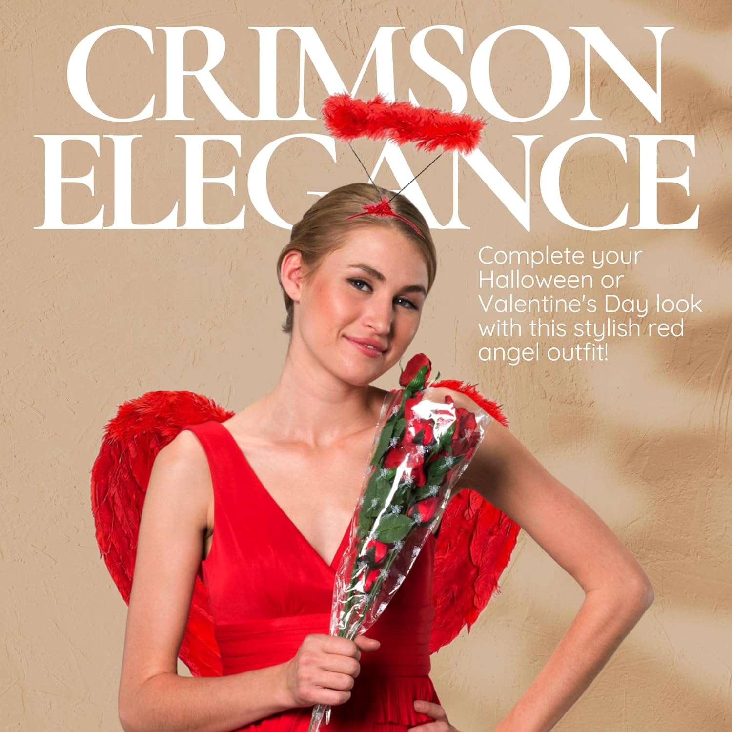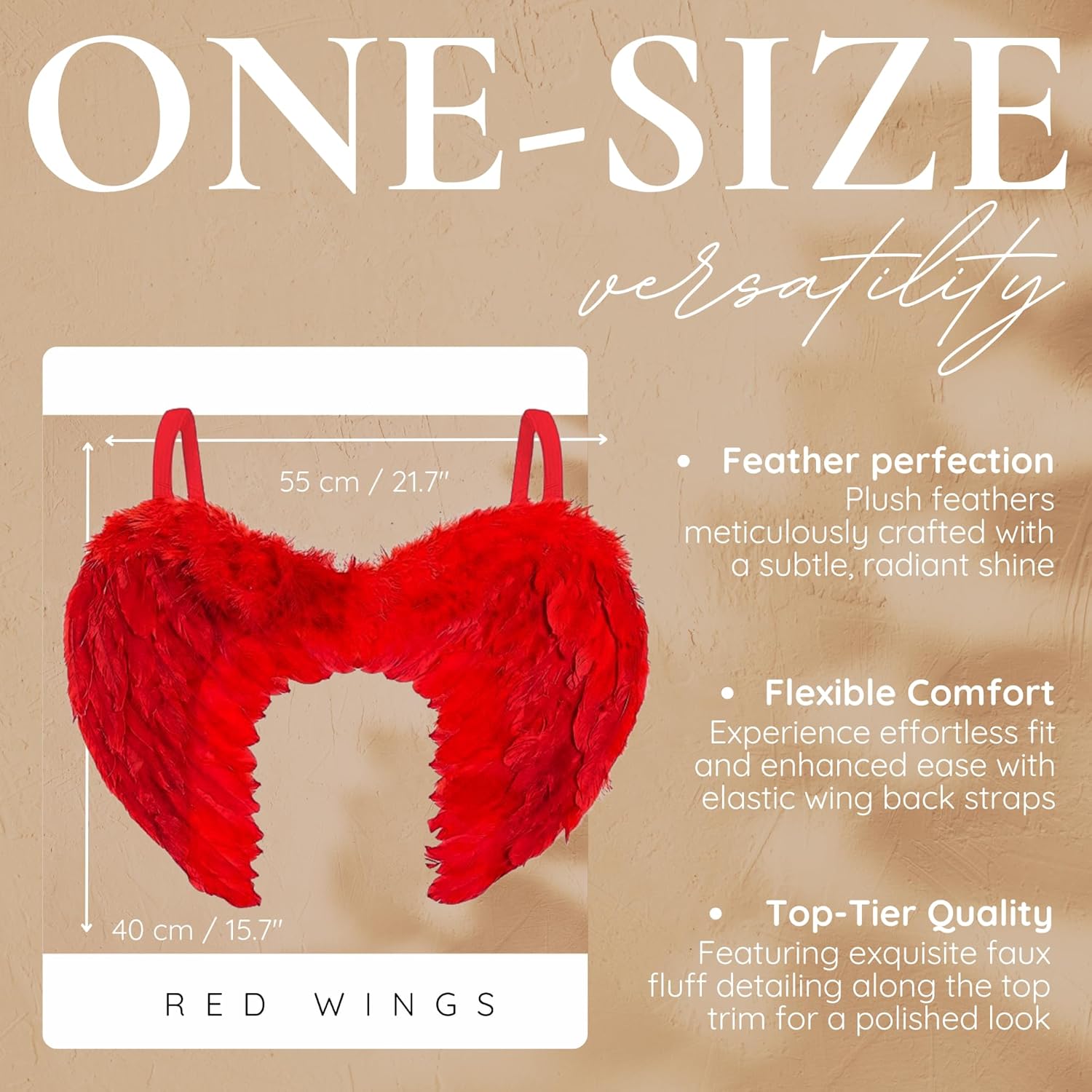 Costume da diavolo Halloween; Questo set da 3 pezzi contiene ali di cupido rosse, un'aureola da diavolo rossa e una gonna tutù per creare il perfetto costume di Halloween da diavolo. Gli angeli caduti possono usare gli accessori da diavolo come le ali e il tutù dell'angelo, nonché l'aureola rossa dell'angelo per creare un costume da diavolo per donna o un costume da angelo caduto che le donne possono indossare con orgoglio Costume di Halloween da angelo; Ali rosse per adulti con spalline elastiche e 55 cm x 40 cm, cerchietto da diavolo, aureola e gonna tutù da diavolo, lunga circa 40 cm, adatto per le taglie 8-12 UK. Un costume di Halloween da angelo e diavolo combinato con ali d'angelo, aureola e tutù per creare un costume di Halloween da diavolo completo per adulti, scegli il set completo da diavolo per costume da diavolo e angelo Costume da Cupido; Le ali e l'aureola del diavolo possono essere utilizzate come parte di un costume da Cupido per Halloween o come abito da Cupido per San Valentino con aureola rossa e ali per il tuo costume da ali d'angelo
