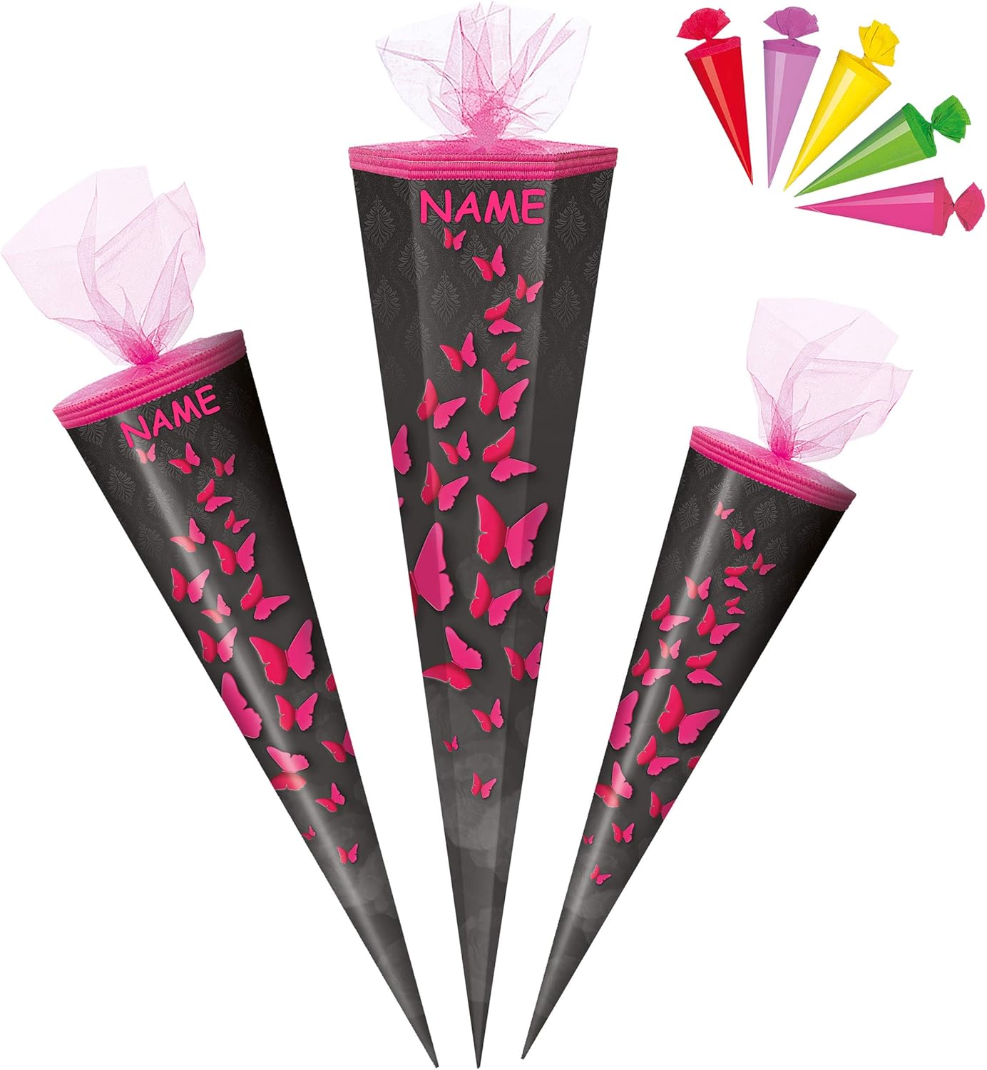 fantastico set _____ con bellissimo effetto 3D - stampa GLITTER e mica!! ____ stabile e di alta qualità - cono per la scuola ___ 50 cm di lunghezza (misurato solo il cartone) ___ forma: ROTONDO ____ il bordo superiore ha un elegante bordo intrecciato e una finitura in tulle ____ motivo: "farfalle - rosa & rosa" + 5 pezzi - coni scolastici extra in un colorato mix di colori da appendere o decorare.... (ciascuno alto 12 cm - misurato solo il cartone) l'ATTENZIONE: ______ il vostro cono scolastico personalizzato ___ compreso: singolarmente con il NOME DESIDERATO - il nome verrà fatto corrispondere ___ la richiesta del nome verrà effettuata - AUTOMATICAMENTE entro 4 ore - NON inviare un messaggio in anticipo ___ incl. grande effetto 3D _ fiocco in tinta - questo renderà il tuo cono scolastico ancora più bello per attirare l'attenzione ______ la consegna dei bellissimi modelli di fiocchi sarà mista (puoi vedere esempi nelle immagini) made in Germany! __ Materiale: cartone rivestito e di alta qualità - SUPER stabile! - idrorepellente! __ fantastici colori di stampa!_____ OPZIONALE è disponibile una punta in plastica abbinata, trasparente e solida da attaccare (questo rende la punta del cono scolastico molto stabile e stabile) ---- (questo articolo deve essere ordinato EXTRA al cono scolastico) e come extra: IL LOOP individuale con il nome DESIDERATO - aggiungi semplicemente l'articolo "nome desiderato" come extra nel carrello, il nome verrà poi applicato al fiocco