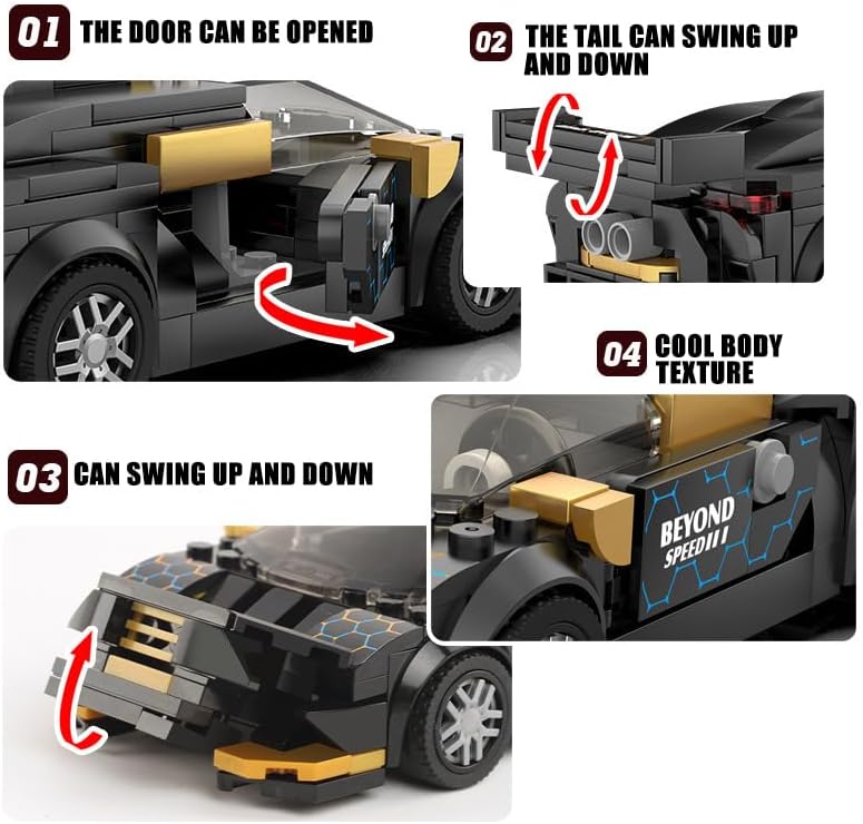 【Design eccezionale】: questo kit modello di auto sportiva comprende 330 parti e misura 16,5 × 7,5 × 4,5 centimetri. Questo straordinario modello di auto è progettato per fornire un'esperienza di assemblaggio stimolante esplorando i dettagli precisi del suo design e degli elementi funzionali. 【Blocchi per auto sportive】: i mattoncini per auto da drift rappresentano un vero veicolo da corsa. Con i suoi dettagli realistici, il volante, le straordinarie sezioni anteriore e posteriore e il design aerodinamico, ogni componente dimostra un'accurata lavorazione artigianale e finiture complesse. 【Materiali sicuri】: realizzato in plastica ABS ecologica e sicura e composti di argilla naturale, questo giocattolo è completamente atossico. L'auto in mattoncini assemblata vanta una struttura robusta e un realismo sorprendente, garantendo la sicurezza dei bambini e consentendo loro di godersi il divertimento della costruzione. 【Idea regalo eccezionale】: Il nostro stampo Speed Champion è la scelta ideale per rafforzare i legami genitore-figlio! Trascorri del tempo di qualità insieme e crea ricordi indimenticabili. 【Centro assistenza post-vendita】: in caso di domande o dubbi, non esitate a contattarci. La vostra soddisfazione è la nostra massima priorità.