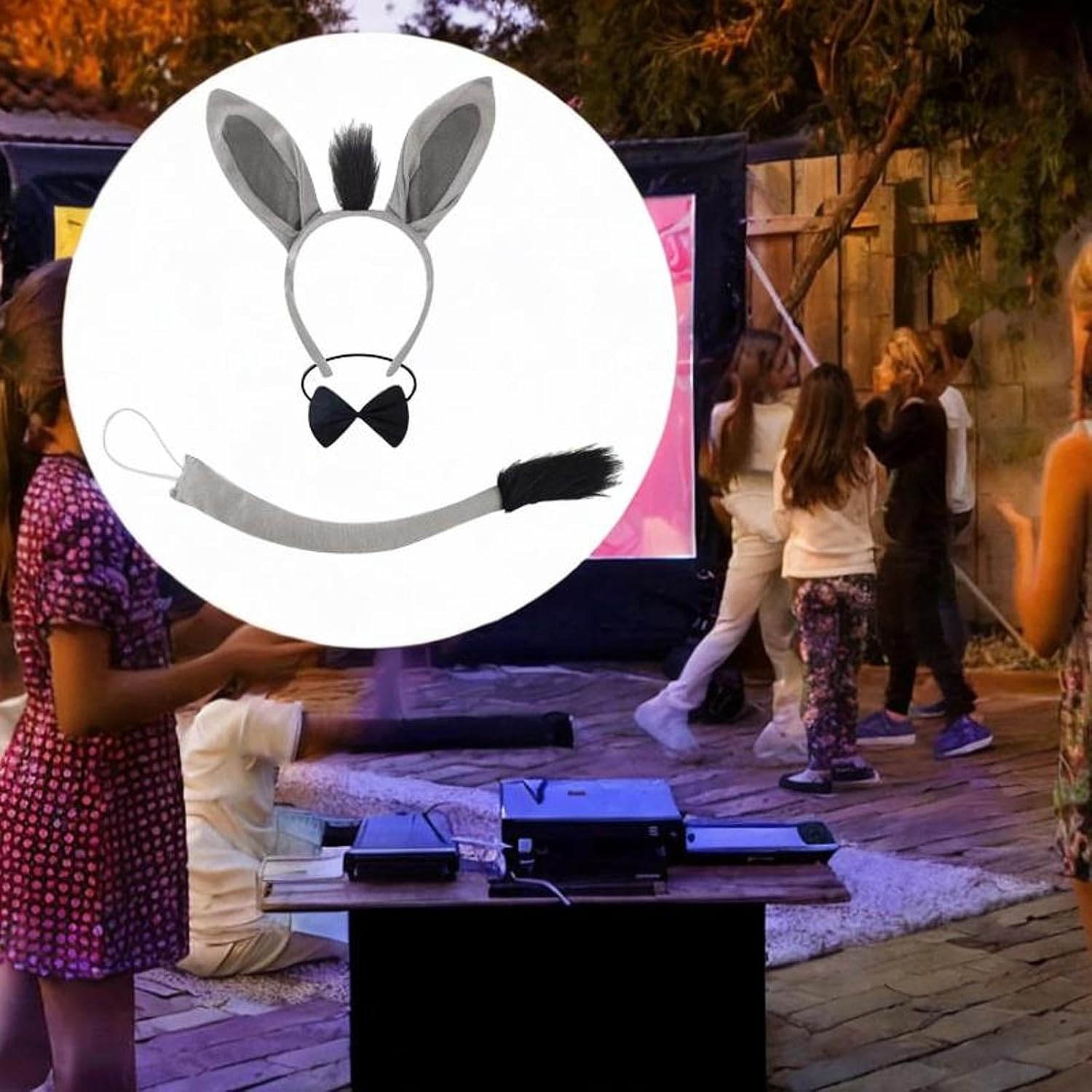 【Costume da asino】C'è una fascia per orecchie di cane, un papillon, una coda e un set completo di pregevole fattura, un accessorio carino, divertente e giocoso. 【Materiale di alta qualità】Il set di accessori per il costume da asino è realizzato in tessuto di alta qualità, leggero e confortevole al tatto. 【Dimensione standard】 La lunghezza della coda è . 40 cm, il papillon 11 x 7 cm, la fascia per le orecchie 24 x 27 cm. 【Regalo】 Questi oggetti di scena per animali di Halloween sono anche un'ottima scelta regalo per famiglie e amici in occasione di compleanni, feste, vacanze.