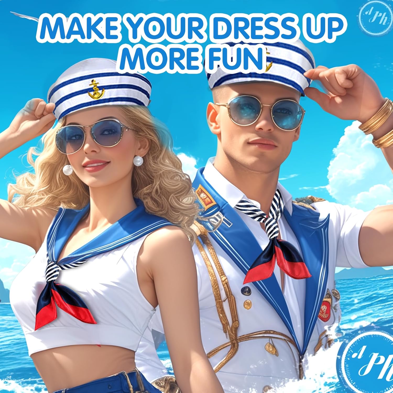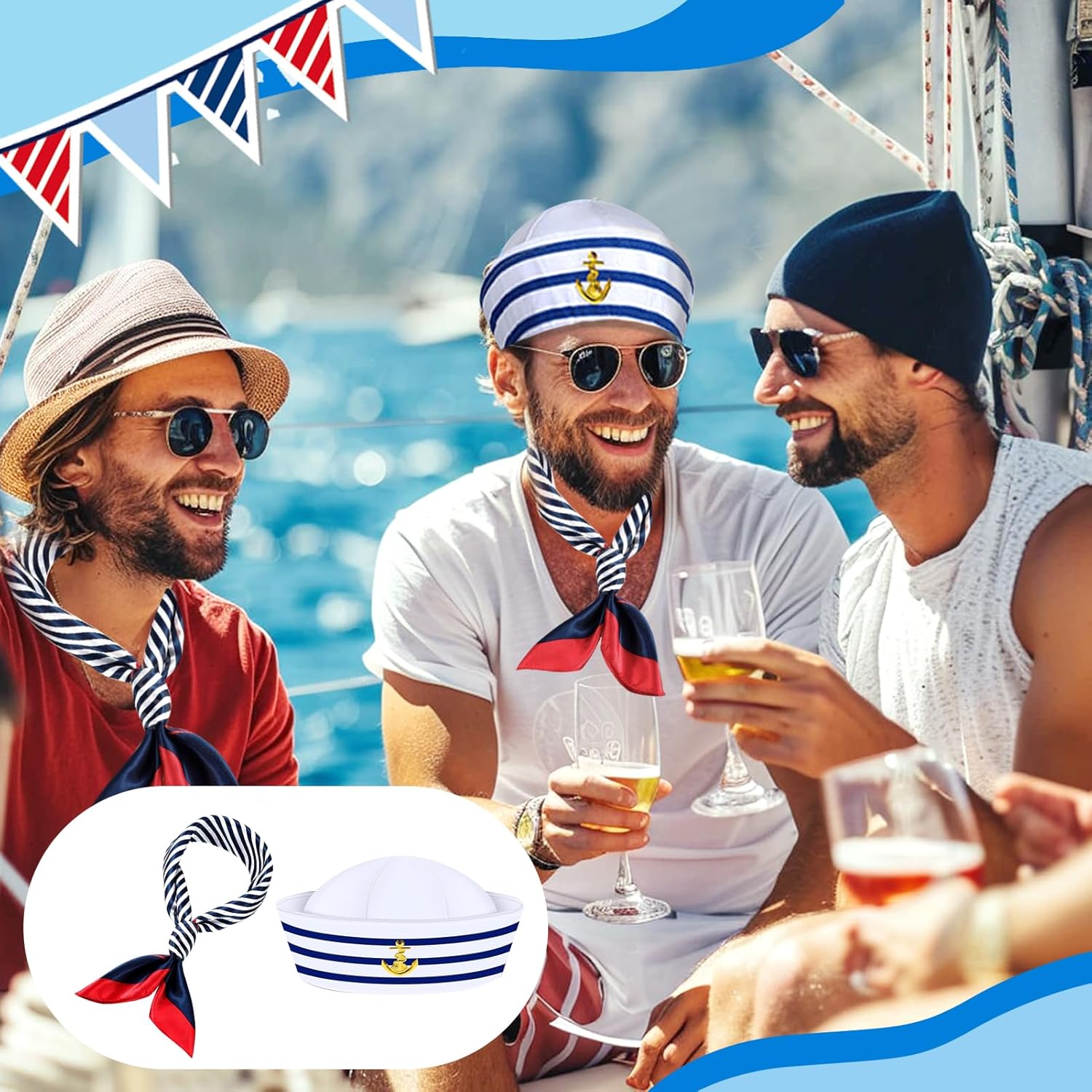 Migliora il tuo stile nautico con il set di costumi YONEEKSS Yacht Captain, con un cappello da marinaio regolabile e una sciarpa nautica. Questo set è perfetto per abbigliamento da yacht rock party, abiti nautici per donne e cappelli da capitano per gli uomini. Il cappello da capitano della barca, ornato con un emblema di ancora dorato, si abbina perfettamente alla sciarpa nautica a righe, rendendolo una scelta ideale per le donne dell'abbigliamento da yacht e gli appassionati di costumi da marinaio. Sia che tu stia partecipando a una festa in yacht, vestendoti per Halloween o aggiungendo un tocco di stile ai tuoi accessori per costumi marini, questo set è progettato per adattarsi a tutte le età, tra cui cappello da marinaio da donna e cappello da marinaio per bambini. Abbraccia il tema marittimo con questo set versatile, perfetto per il costume da capitano dello yacht e le occasioni in costume da capitano marinaio.