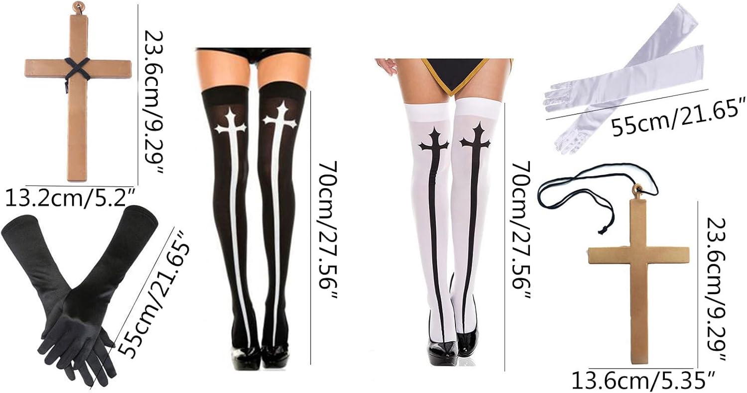 Contenuto della confezione: 2/3/4 pezzi/set opzionale, 1 cappello da suora, 1 paio di calzini alti al ginocchio (2 pezzi), 1 collare per suora, guanti, 1 collana con ciondolo in oro, diversa confezione include diverse, si prega di confermare le vostre esigenze prima di ordinare. Il cappello da suora e le calze sono morbidi al tatto e delicati sulla pelle, la collana con ciondolo non sbiadisce facilmente, può fornire un servizio a lungo termine e comodo da indossare Aspetto classico, il costume da suora può essere abbinato al tuo vestito da suora insieme, oppure puoi indossarlo da solo per abbinarlo al tuo abbigliamento, che ti farà godere il divertimento del gioco di ruolo Occasioni applicabili: questi accessori per costume da suora possono essere indossati per feste cosplay, Halloween, feste a tema e così via, indossandoli ti renderà facilmente al centro della folla Meraviglioso, dolce e caldo per amici, familiari o per te stesso.