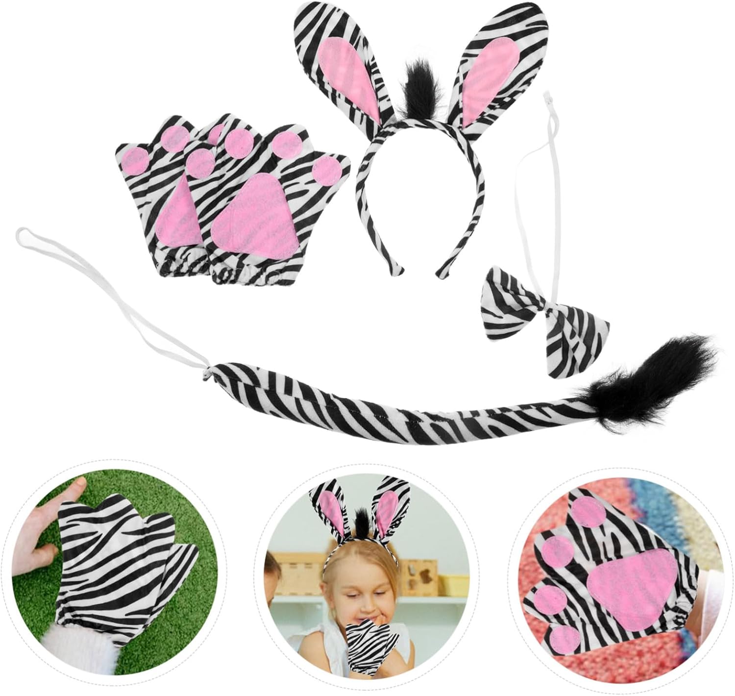 Accessori per costumi - con una bellissima, adorabile forma di orecchio di animale e, con papillon, che è attraente e decorativo, costume di Halloween regalo per feste di animali -, leggero, robusto e comodo da indossare, non facile da rompere e riutilizzabile, così puoi divertirti con la famiglia e il partner, costumi di animali per costumi di animali - puoi facilmente creare l'atmosfera di una festa di compleanno in modo creativo, con adorabili oggetti di scena, accessori per costumi di animali costume da zebra per - Orecchie, capelli, creativo e adorabile, ti fanno risaltare alla festa, costume da zebra per ragazze set di costumi cosplay di animali - bellissimo e l'adorabile tema zebrato lo rende un accessorio cosplay perfetto per costumi e copricapi per feste per bambini