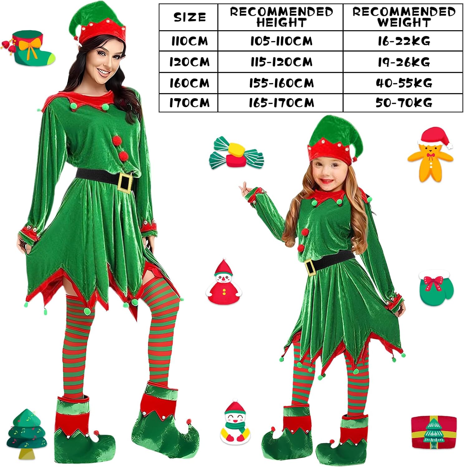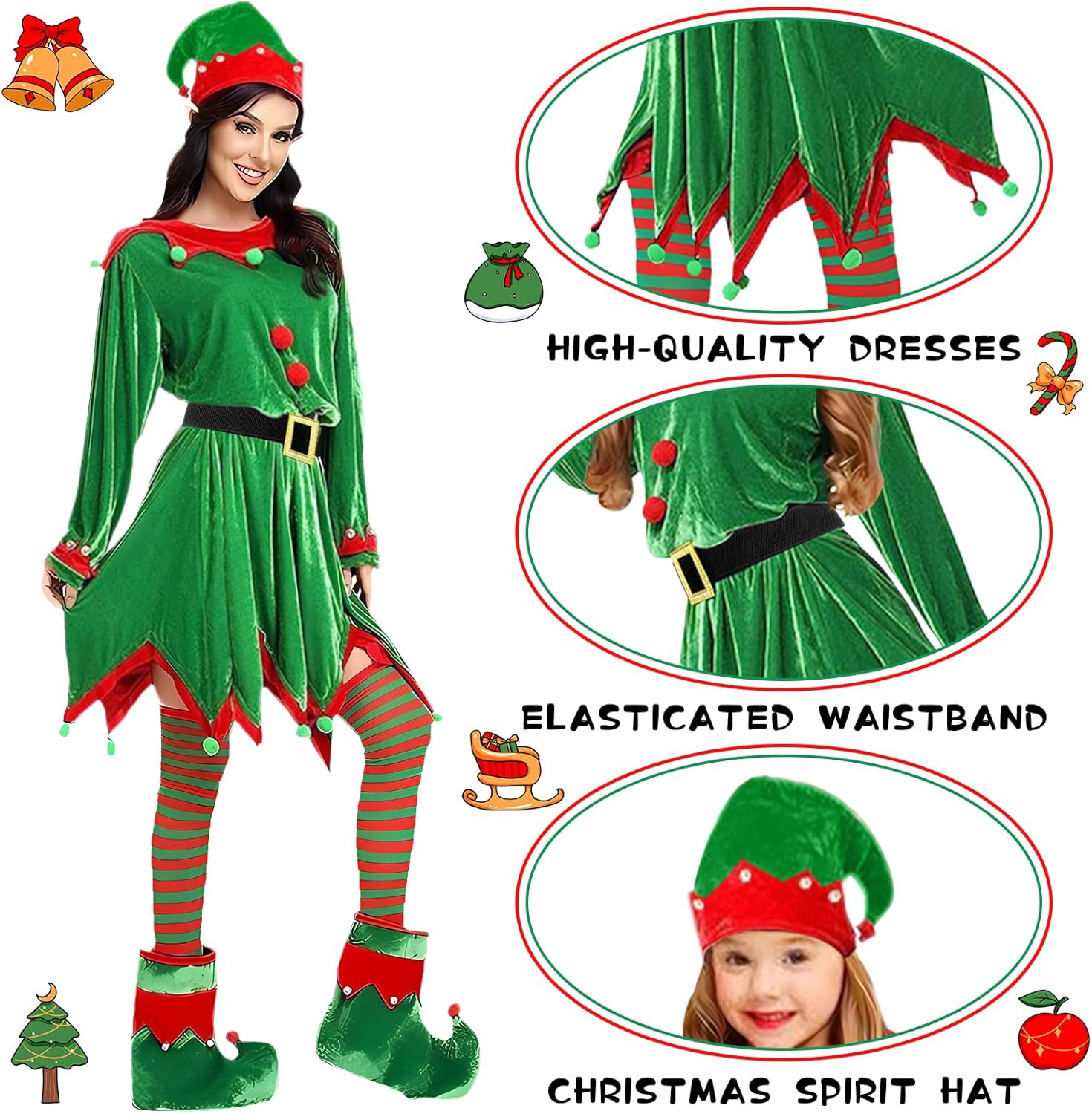 Set costumi da elfo di Natale, costume da elfo per bambina, costume da festa di Natale, vestito da gnomo, vestito con orecchie da elfo, cappello, calzini, scarpe, cintura, accessori, cosplay di Natale