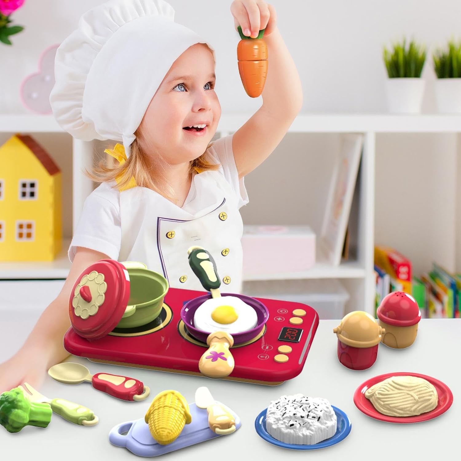 Costruzione robusta e sicura: Design con bordi lisci a prova di bambino e materiale ABS alimentare ecologico, per un ambiente di gioco affidabile e piacevole. Adatto a bambini da 2 a 6 anni, resistente e privo di sostanze nocive. Gioco Creativo Cucina: Combinazioni libere di metodi di gioco con utensili da cucina multifunzionali, inclusi padelle, sviluppano immaginazione e capacità logiche dei bambini attraverso interazioni versatili Scenari Diversificati:Combina giochi familiari e temi educativi prescolari con design rosso-blu vivaci. Adattabile a vari contesti come raduni all'aperto, creando opportunità di gioco dinamico intorno a set cucina per bambini che stimolano l'interesse infantile. Esperienza di gioco potenziata: Dai vita ai pasti con un set che include suoni e luci realistici, stimolando la creatività e il divertimento durante il gioco di finzione in cucina per bambini Strumento Educativo Interattivo: Stimola il gioco di ruolo simulando ordini al ristorante e interazioni, coltivando le emozioni e migliorando le capacità comunicative in un ambiente di gioco condiviso progettato per la collaborazione tra bambini.