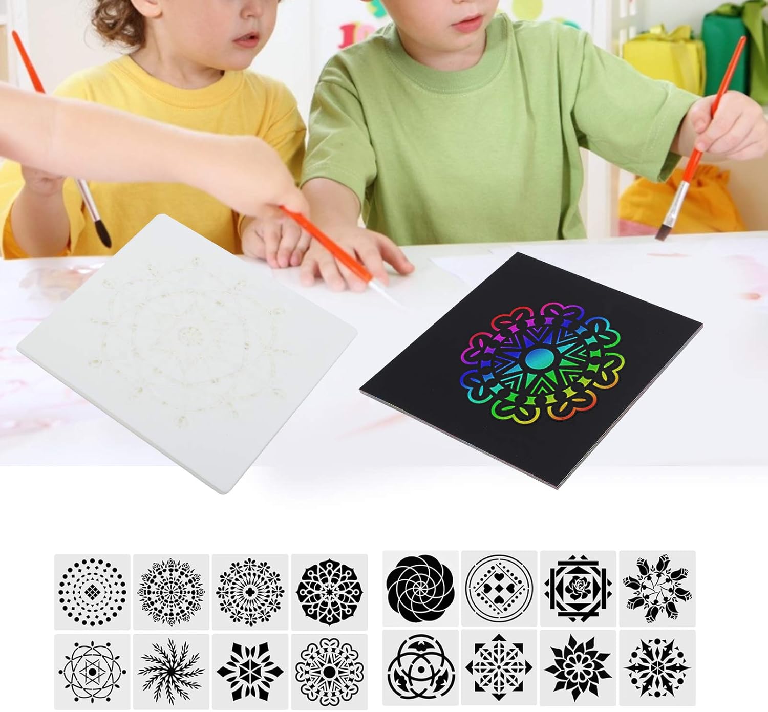 Set completo: include 16 motivi mandala, 10 vibranti carte a graffio e 1 stilo di bambù; Fornisce tutto il necessario per l'esplorazione artistica immediata senza ulteriori acquisti Metodo facile: modelli riutilizzabili pre-progettati con posizionamento sicuro su carta nera opaca; Bamboo Stick scivola per rivelare motivi colorati sotto; Riduce la frustrazione per i giovani artisti e i risultati di pulizia e dall'aspetto professionale ogni volta Strumento di sviluppo: migliora le capacità motorie e il coordinamento occhio-mano attraverso movimenti di raschiatura; Design intelligente, comodo e pratico, bell'aspetto; Anche con frequente opera, la sua integrità può essere mantenuta Decorazione multi-superficie: le opere d'arte mandala finite aderiscono a scatole, pareti e biglietti di auguri; Il rivestimento resistente ai graffi mantiene la vitalità per display di lunga durata; Per decorazioni natalizie stagionali o abbellimenti personalizzati Materiale: modelli realizzati in PVC con motivi tagliati; Stylus Funzionalità arrotondate per funzionamento sicuro; Modelli compatti 13 x 13 cm si adattano a portafogli d'arte standard; L'imballaggio leggero facilita lo stoccaggio e il viaggio