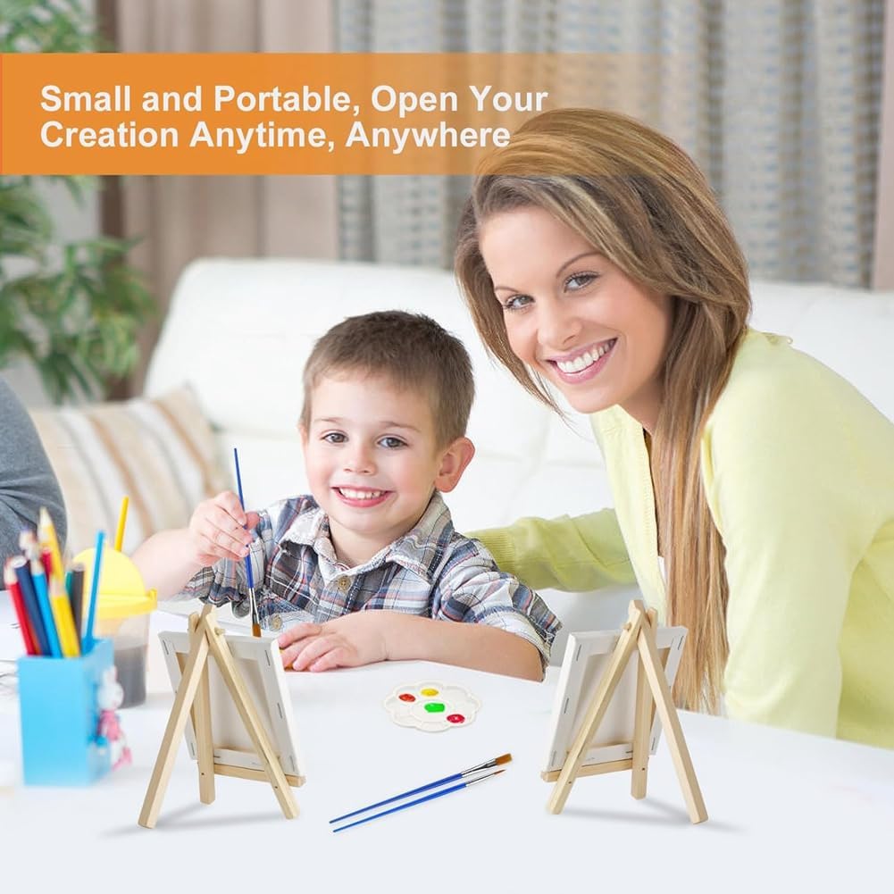Il set mini pittura può essere utilizzato come regalo e materiale per corsi pittura per bambini e principianti, aiutandoli a esercitarsi nella pittura e a migliorare le proprie capacità pittoriche. [Set di vernici lavabili per bambini piccolo]: i mini colori acrilici per bambini sono realizzati in acrilico di qualità, che ha le caratteristiche di facile miscelazione, asciugatura rapida, non facile da staccare e facile da pulire, ed è molto adatto ai bambini, rendendolo è una scelta per la pittura a lungo termine dei bambini. [Materiali per pittura premium]: la nostra piccola tela per dipingere è durevole, e ha una flessibilità e tensione superficiale, offrendoti un'eccellente esperienza di pittura. Il mini cavalletto è realizzato in legno e sicuro, che fornisce un supporto disperdersi i bambini disegnano tela. [Regalo perfetto per i bambini]: la dimensione mini tela per dipingere è circa 4 x 4 pollici, con una pellicola protettiva superficie che non si danneggia facilmente (strappare la pellicola protettiva prima dipingere). La dimensione mini cavalletto artistico è circa 3,35 x 5,91 pollici, che può essere piegata e leggera. [Ampiamente usato]: il nostro set di mini e cavalletti per bambini può essere utilizzato per esporre piccoli dipinti, foto, oggetti di , modelli in miniatura, opere d'arte per bambini, biglietti da visita e altro ancora.