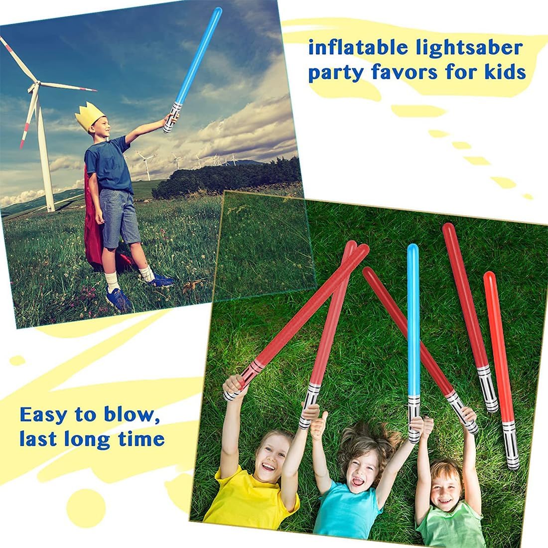 Set perfetto per feste: 2 spade laser gonfiabili in colori vivaci offrono divertimento emozionante e momenti indimenticabili per la tua prossima festa a tema Star Wars o spaziale Facile da usare: Si gonfiano rapidamente e senza sforzo, pronte per l'uso immediato per dare il via all'atmosfera festiva in pochi istanti Applicazioni versatili: Ideali per compleanni, carnevale o feste a tema spaziale o Star Wars – un successo garantito per bambini e adulti Regalo fantastico: Perfetto per feste di compleanno dei bambini – ogni bambino può sentirsi come un vero guerriero stellare, un must per i piccoli fan di Star Wars Decorazioni creative: Le spade laser gonfiabili non sono solo giocattoli, ma anche decorazioni originali per feste, compleanni e come accessori unici per foto