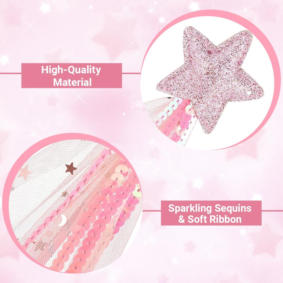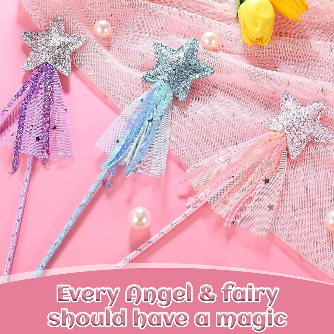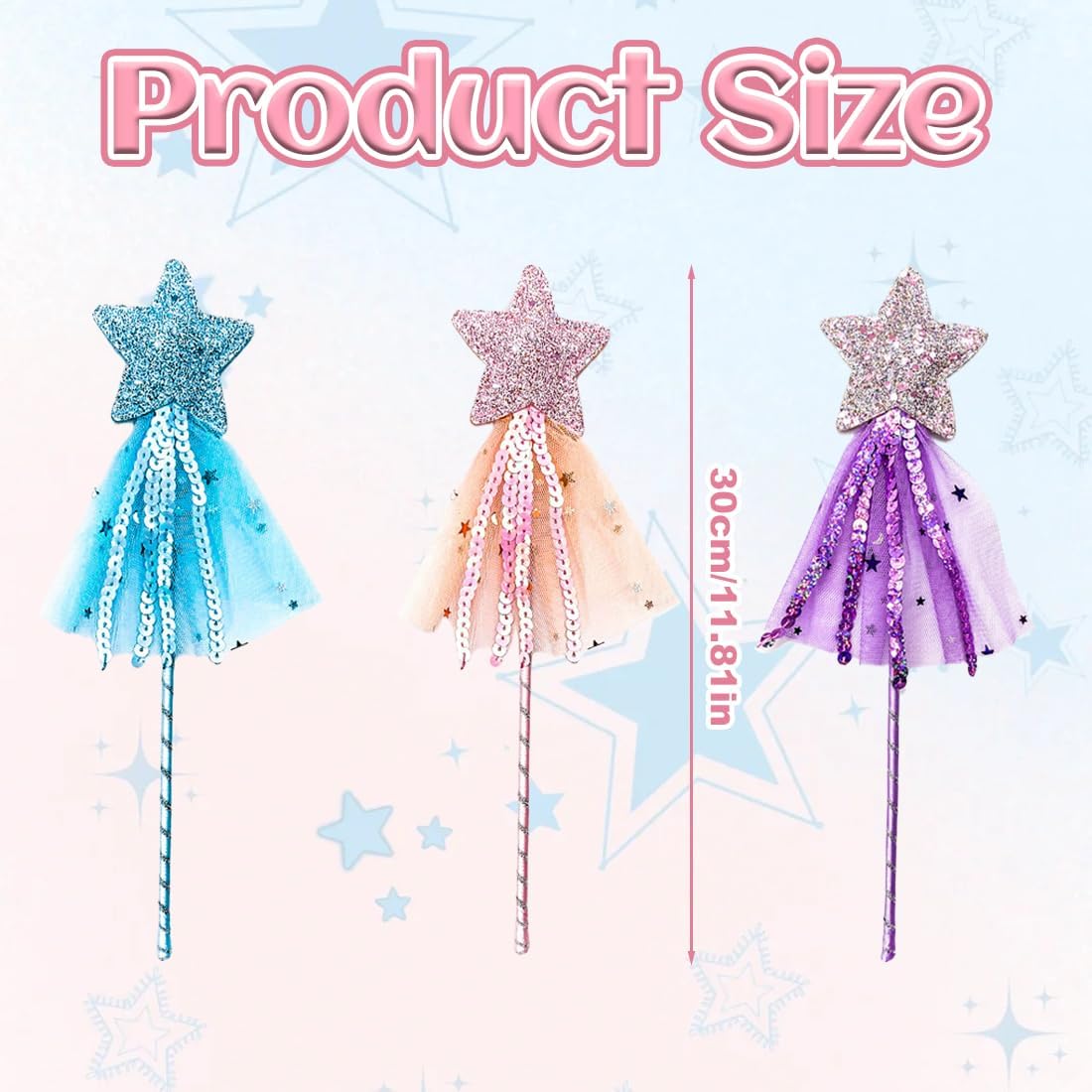 Dimensioni perfette per i bambini: Ogni bacchetta magica a forma di stella misura circa 30 cm di lunghezza, leggera e ideale per le mani dei più piccoli. Facile da impugnare e utilizzare, è l'accessorio perfetto per giochi di ruolo fantasiosi e momenti di magia Set colorato e accattivante: Include 3 bacchette fatate nei colori incantevoli rosa, viola e blu. Questi bastoncini scintillanti permettono a ogni bambina di trasformarsi nella sua principessa preferita, creando momenti magici e indimenticabili Materiali di alta qualità: Realizzati in tessuto resistente, leggero e sicuro, questi bastoncini fatati sono comodi da usare e progettati per durare nel tempo. Mantengono la loro forma e i colori vivaci, perfetti per un utilizzo prolungato da parte dei bambini Regalo ideale per i più piccoli: Ogni piccolo angelo o fata amerà questa bacchetta magica con stella scintillante. Un'idea regalo meravigliosa per compleanni, Natale o altre occasioni speciali, che farà brillare gli occhi di ogni bambino Accessorio versatile per ogni occasione: Perfetto per spettacoli di magia, accessori per costumi di Natale e Halloween, cosplay, feste in maschera, compleanni, baby shower e matrimoni. Un accessorio che aggiunge un tocco di magia a qualsiasi evento