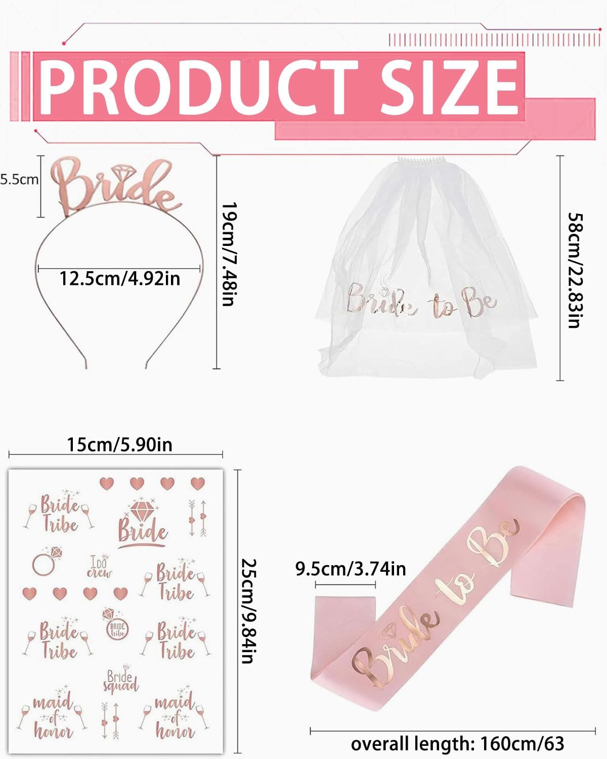Contenuto della confezione: contiene 3 fasce e fasce per velo da sposa, velo con parole sopra, la fascia è stabile, il velo è di buona lunghezza (sopra la spalla), con cintura Caratteristiche accessorie: pieghevole per riporlo facilmente, è facile da pulire e riutilizzare. All'interno del velo è cucito un pettine in plastica che lo rende facile da indossare. Design unico: set unico di decorazioni per addio al nubilato, può far risaltare gli sposi nella squadra, è un regalo indimenticabile per la sposa e le damigelle d'onore. Specifiche del prodotto: la dimensione della fascia è di 15,5 cm, la lunghezza del velo è di circa 60 cm (compreso il pettine), adatto per donne adulte. Occasioni adatte: questo set per la doccia nuziale è elegante e può essere indossato durante il giorno o la notte, una buona scelta per iniziare la festa. Adatto per addio al nubilato, feste di matrimonio, compleanni, fidanzamenti e persino giochi di ruolo per adulti, può abbinarsi a qualsiasi costume.