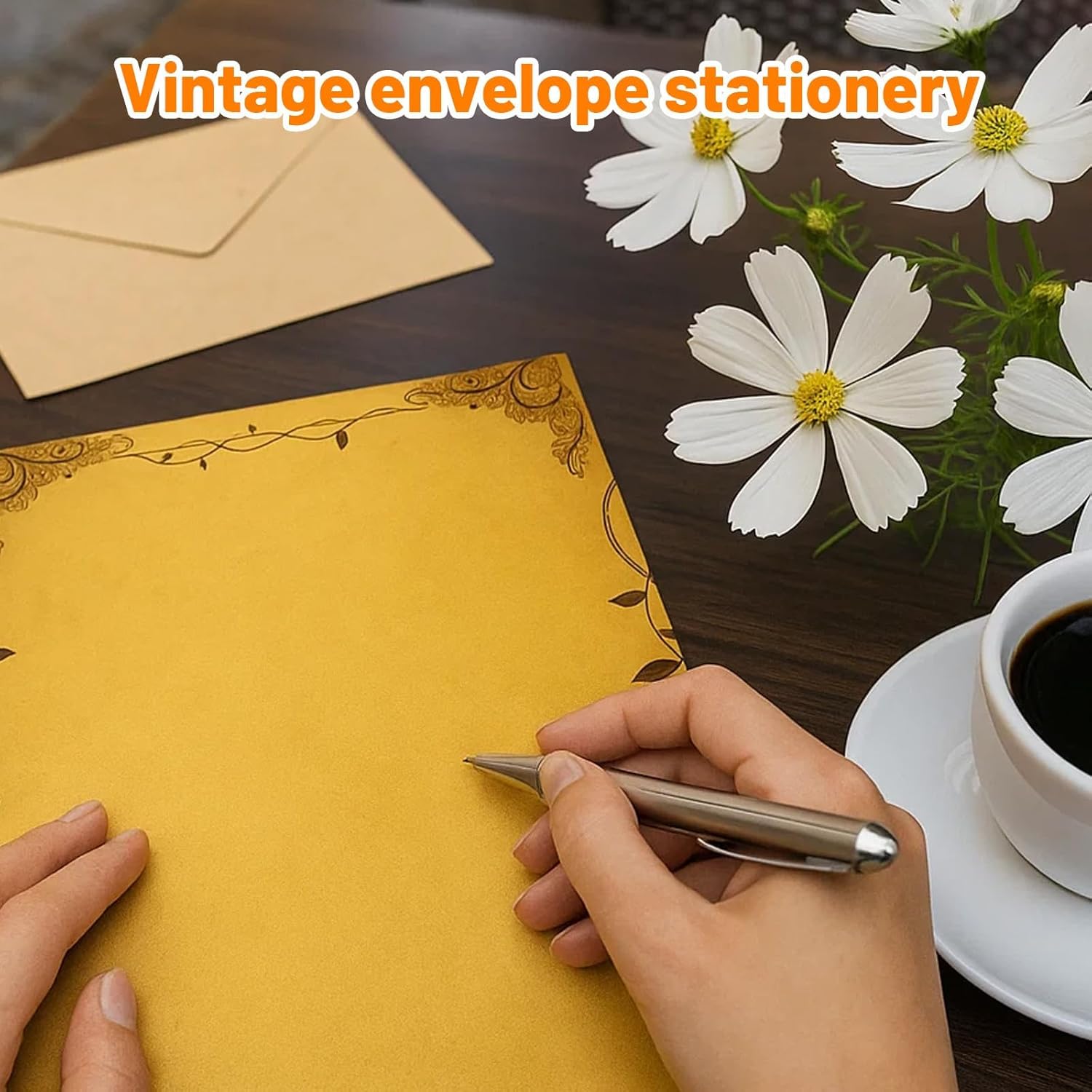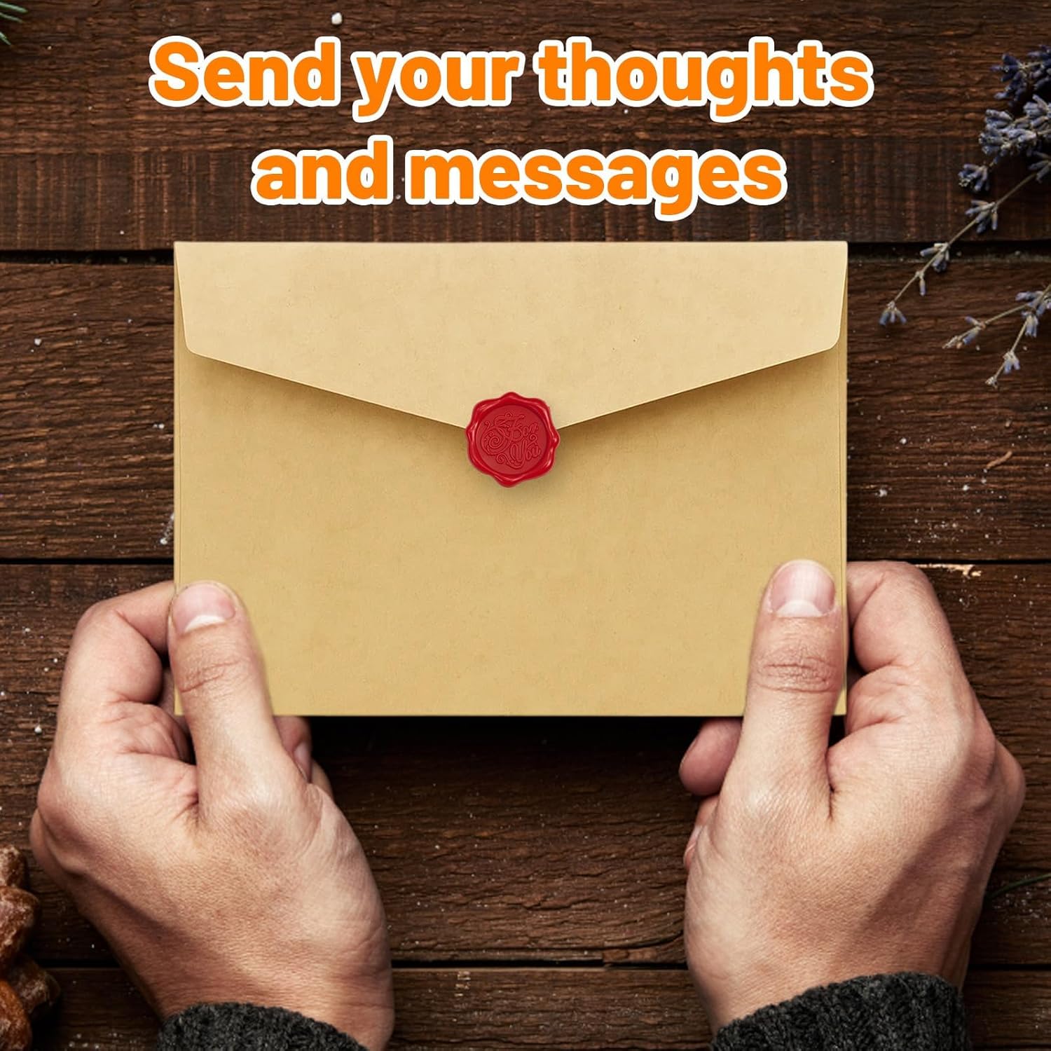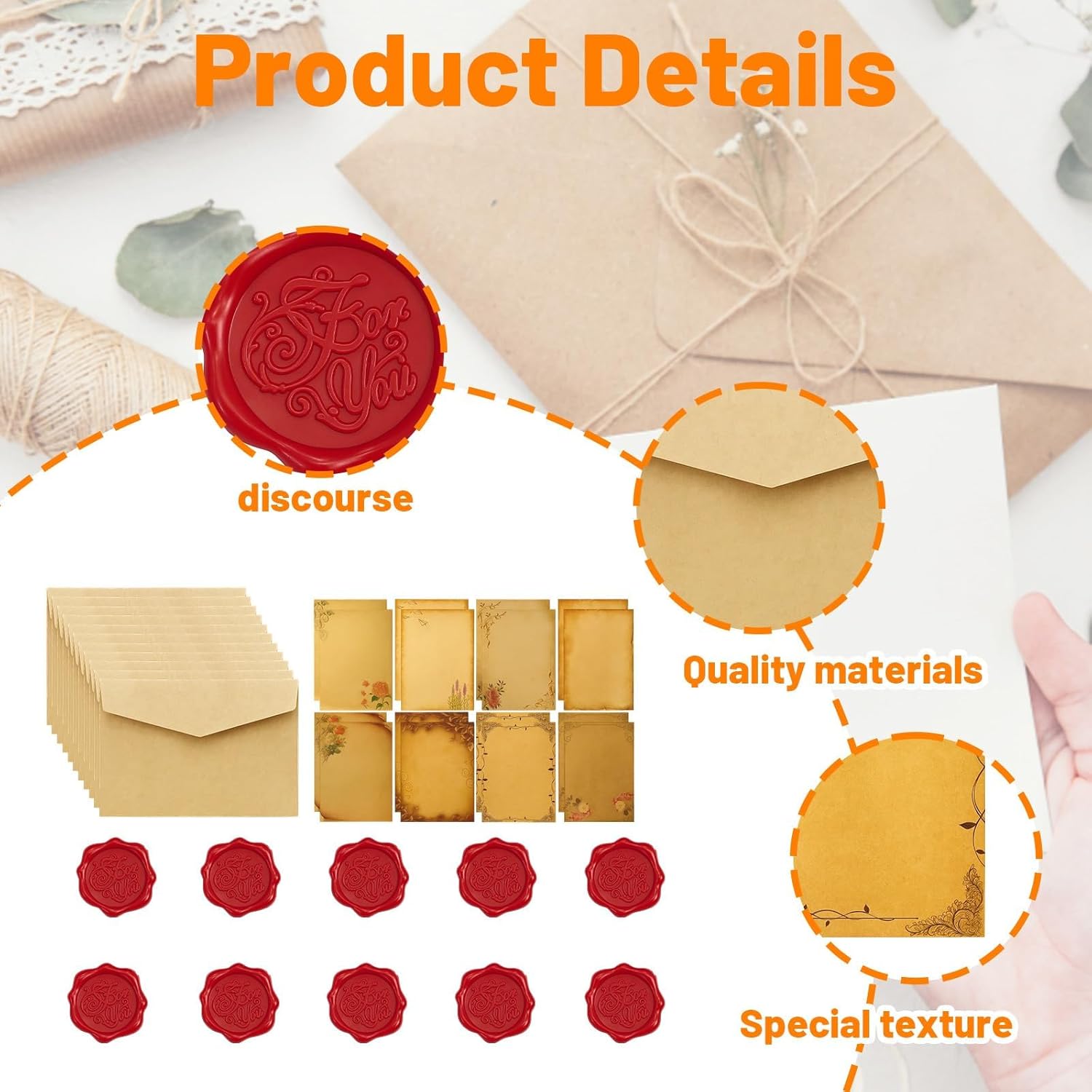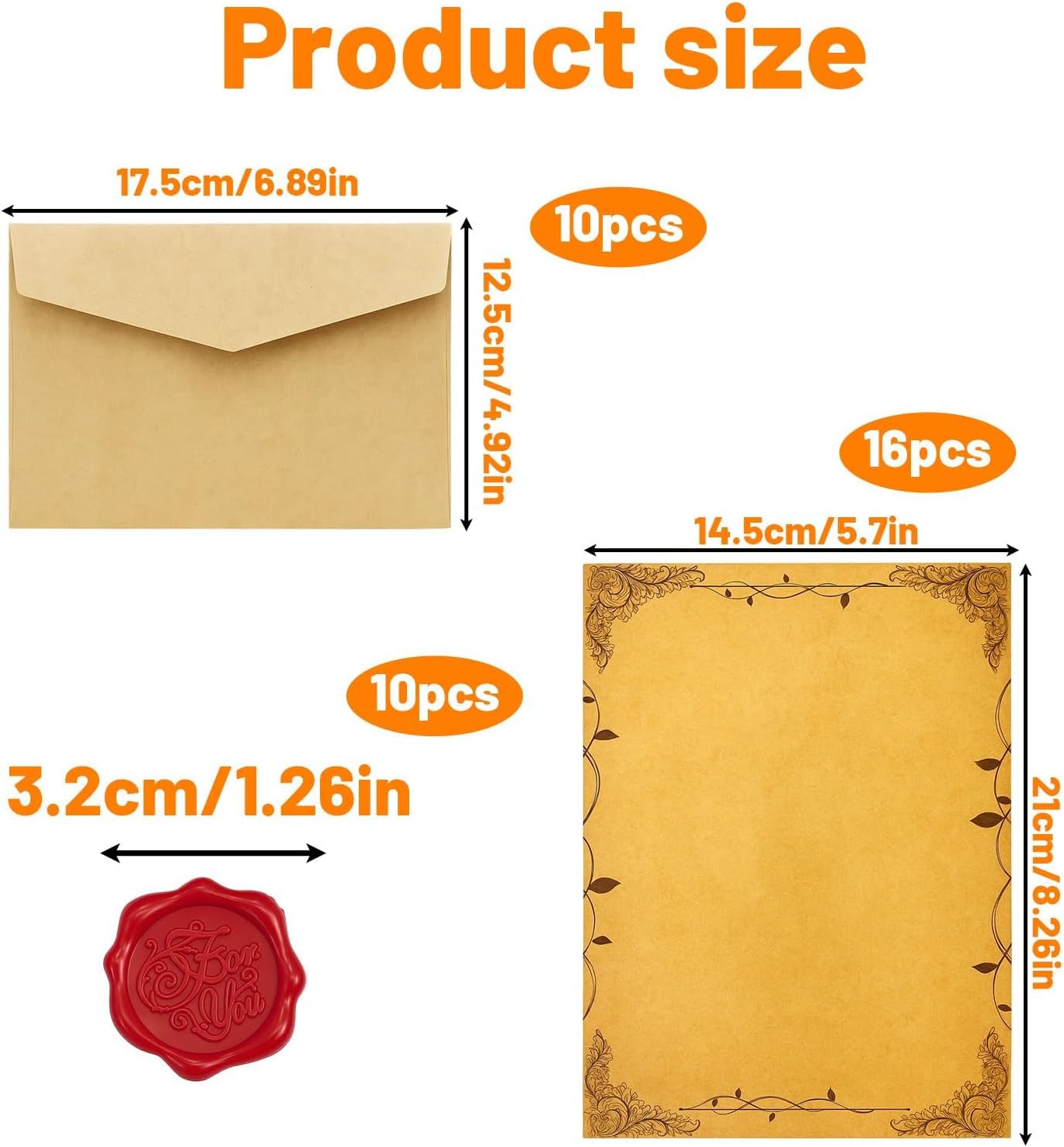 Set completo di lettere vintage: include 16 fogli di carta kraft premium e 10 buste abbinate; la classica tonalità marrone crea un autentico fascino vintage per lettere scritte a mano, note d'amore o inviti speciali. Dettagli premurosi della ceralacca: viene fornito con 10 timbri rossi incisi per aggiungere un tocco finale; i sigilli di questo set di carta da lettere e buste aiutano a preservare i tuoi ricordi scritti a mano creando un'esperienza nostalgica. Qualità della carta versatile: la carta vintage ad alto peso fornisce un eccellente assorbimento per penne stilografiche, penne gel o pennelli per calligrafia; la superficie liscia previene le sbavature mantenendo la consistenza della carta vintage. Multiuso: adatto per scrivere lettere d'amore romantiche, creare inviti in stile vintage, fare appunti di ringraziamento o progetti fai da te di scrapbooking; la combinazione di colori neutri completa vari stili decorativi. Potenziale regalo significativo: presentato in un set di scrittura di buon gusto per gli appassionati di vintage, gli amanti della cancelleria o per chi cerca regali romantici; evoca il calore della comunicazione scritta a mano nella nostra era digitale.