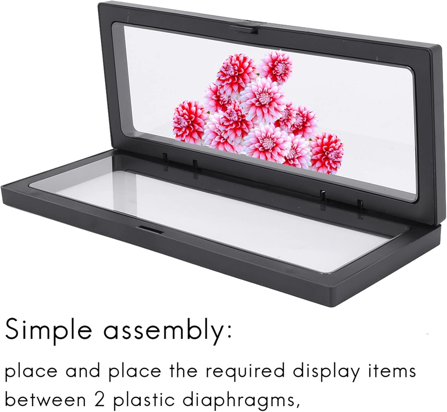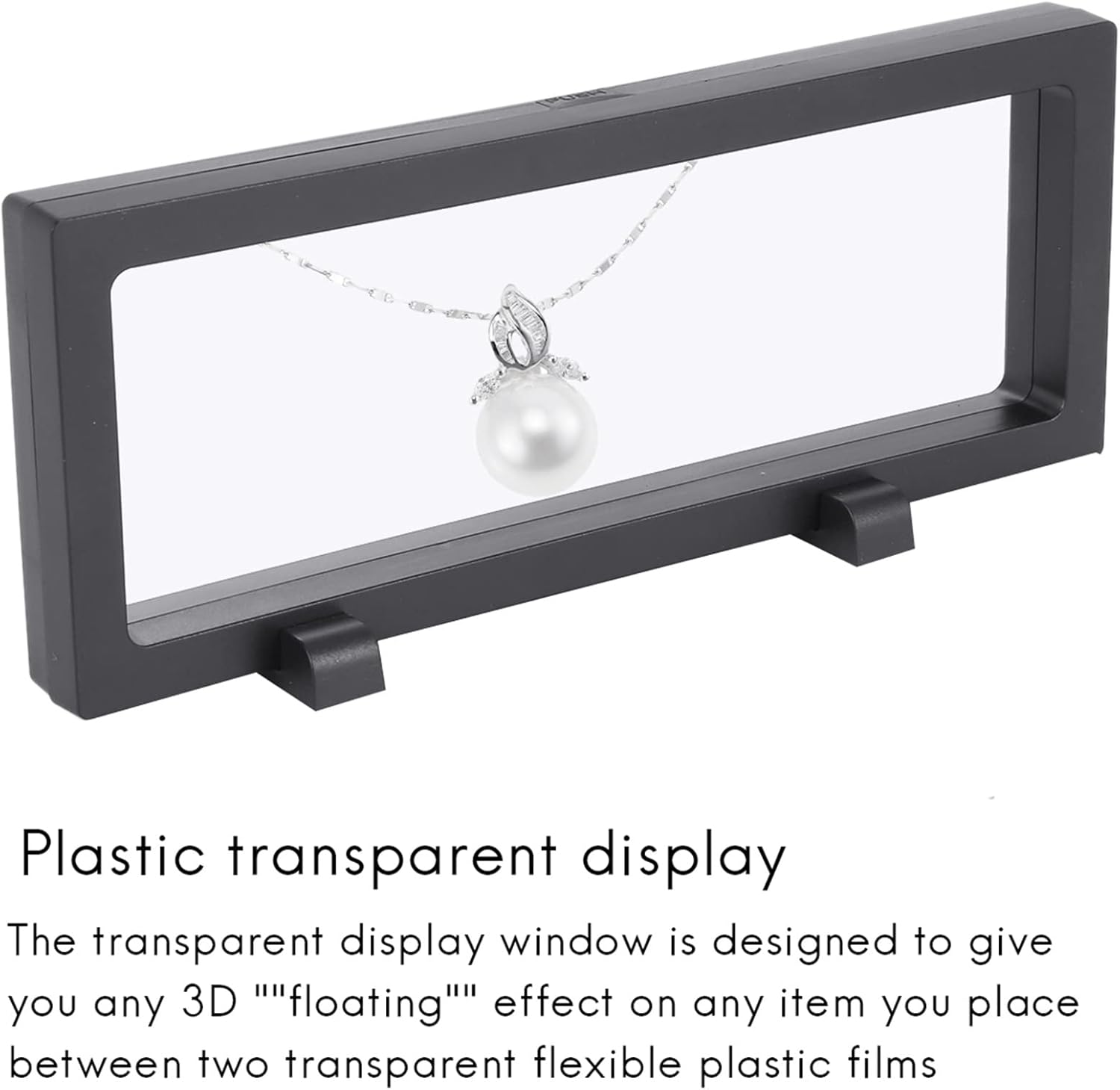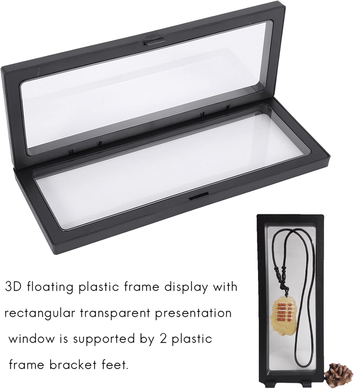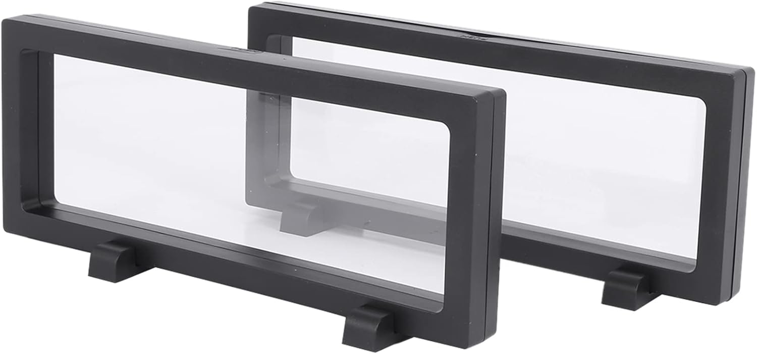 Display in plastica trasparente: la finestra di visualizzazione trasparente è progettata per offrire qualsiasi effetto "fluttuante" 3D su qualsiasi oggetto posizionato tra due pellicole di plastica flessibile trasparente. Ottimo per sfoggiare gioielli personali, articoli di gioielleria, oggetti d'antiquariato, medaglie o collezioni di monete. Il display 3D con cornice in plastica galleggiante con finestra di presentazione trasparente rettangolare è supportato da 2 piedini per staffa con cornice in plastica. Display personale e professionale: che tu stia cercando una soluzione più per la visualizzazione dei prodotti della gioielleria, che semplicemente mostrare oggetti di valore a casa in un modo più elegante, questo espositore a scatola galleggiante è per friend, famiglia o clienti. Offre un'ottima opzione per visualizza i tuoi oggetti di valore. Montaggio semplice: posizionare e posizionare gli elementi di visualizzazione richiesti tra 2 diaframmi in plastica, quindi fissare insieme i due lati del telaio, quindi posizionare il telaio sui 2 piedini del display in plastica per posizionare il telaio in verticale.