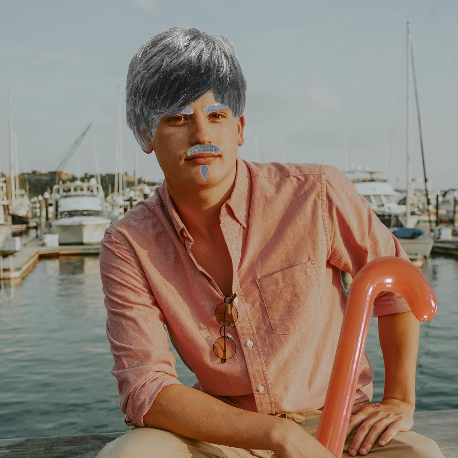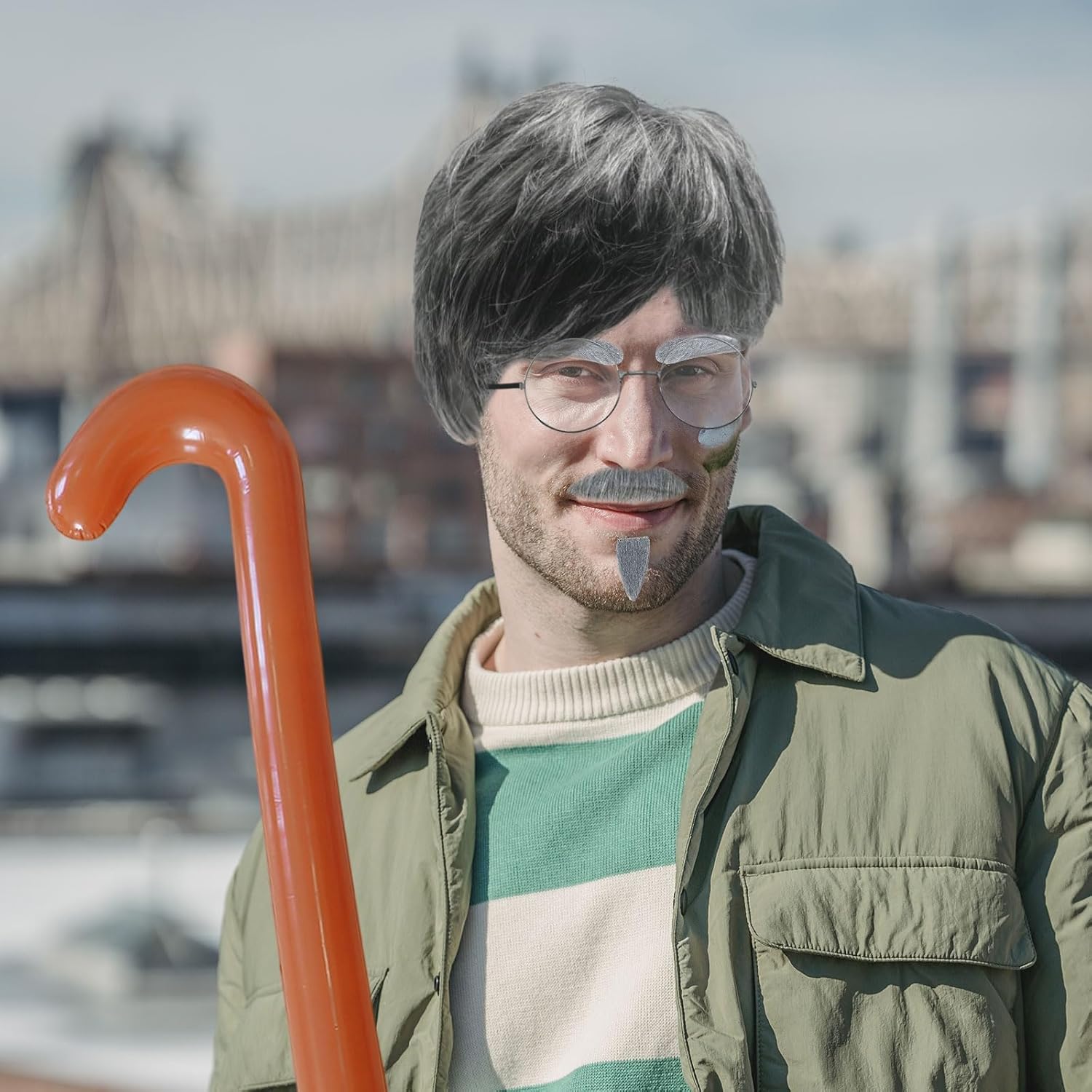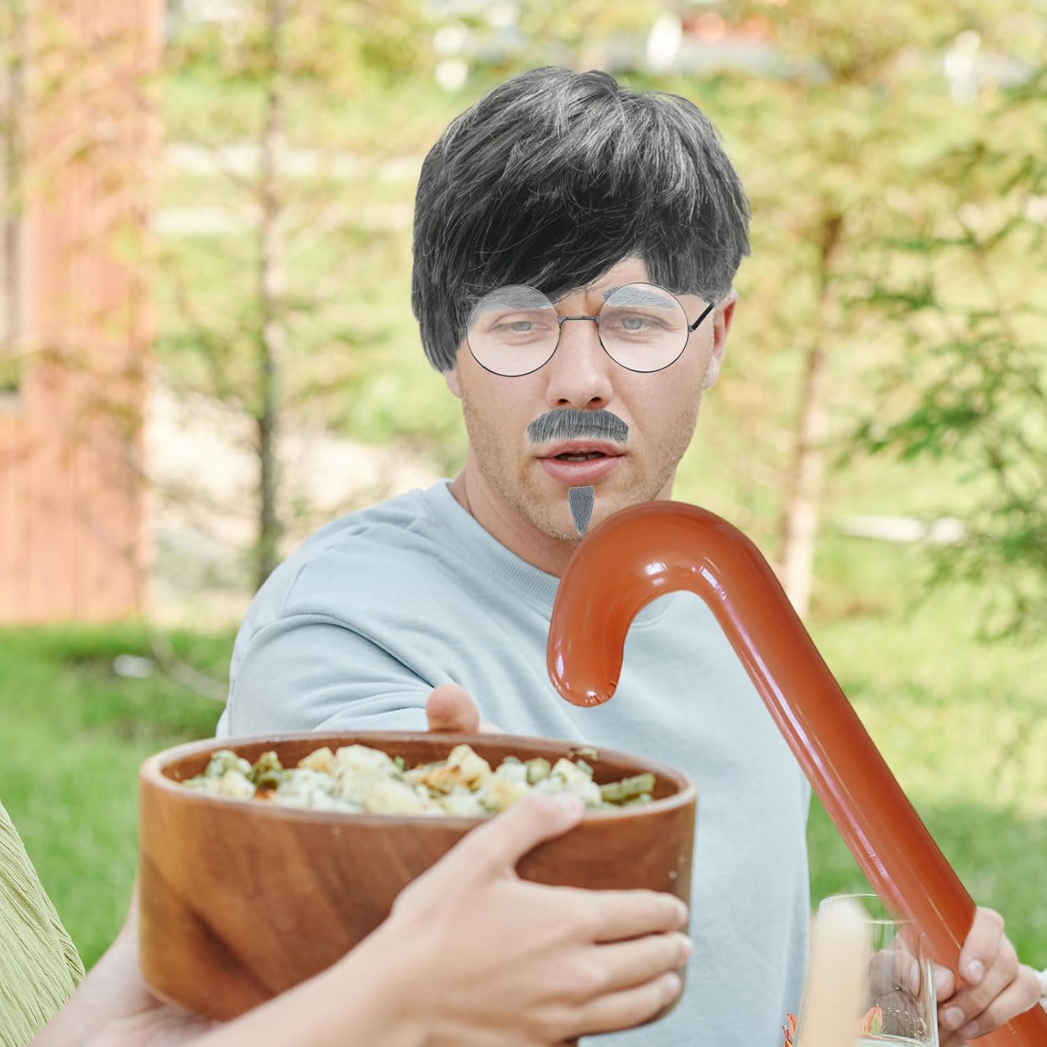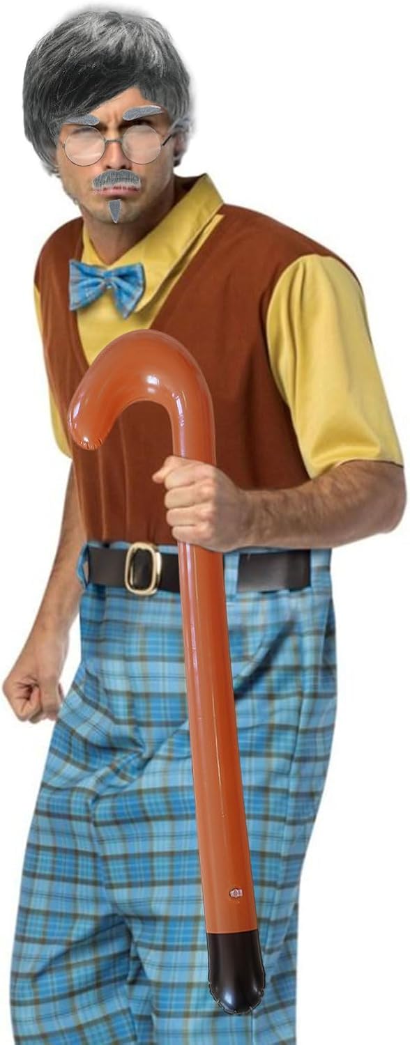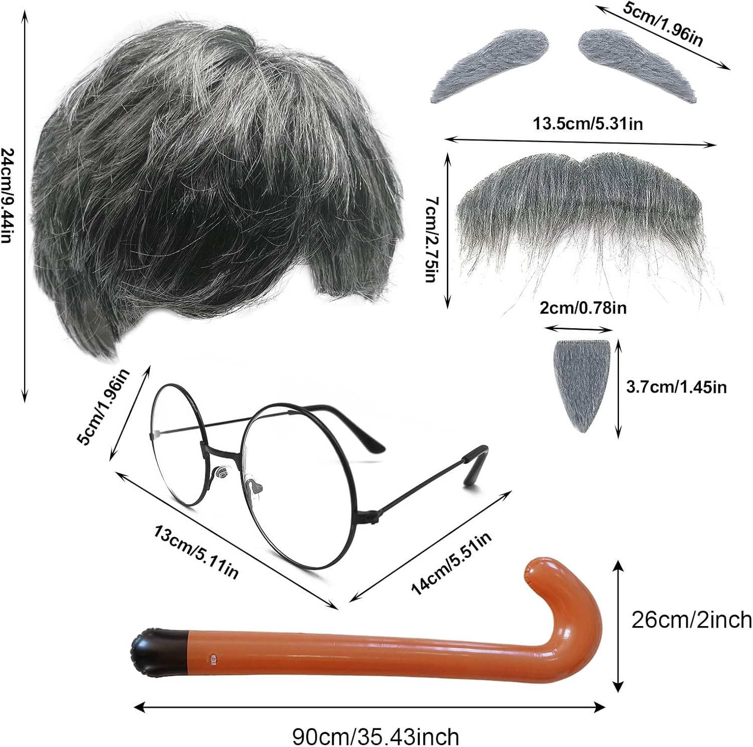 SET DI ACCESSORI DEL NONNO: Questo set di costumi da nonno include una parrucca da vecchio, baffi finti grigi, sopracciglia, cappello con parrucca, occhiali e un bastone gonfiabile: tutto ciò di cui hai bisogno per trasformarti nel perfetto personaggio del nonno. Materiale: la parrucca da uomo è realizzata in fibra termosintetica. La parrucca grigia ricorda la forma classica del vecchio. L'immagine del vecchio è vivida e realistica. Design innovativo: la parrucca grigia è abbinata a barba finta, sopracciglia, occhiali e bastone, e gli accessori sono completi, fornendoti tutti gli accessori per il costume per diventare nonno, completando il costume da nonno e ottenendo il massimo delle risate e dell'intrattenimento. Ampiamente applicabile: gli accessori per costumi del nonno sono perfetti per carnevali, Halloween, addii al celibato, varie feste a tema o feste a tema scientifico, attività divertenti in classe, ecc., adatti a tutti gli adulti e bambini. Regalo unico: un accessorio unico per il nonno, puoi regalarlo agli amanti delle parrucche o agli amici e ai familiari che amano partecipare a varie feste. Le parrucche uniche possono renderle il momento clou della festa.