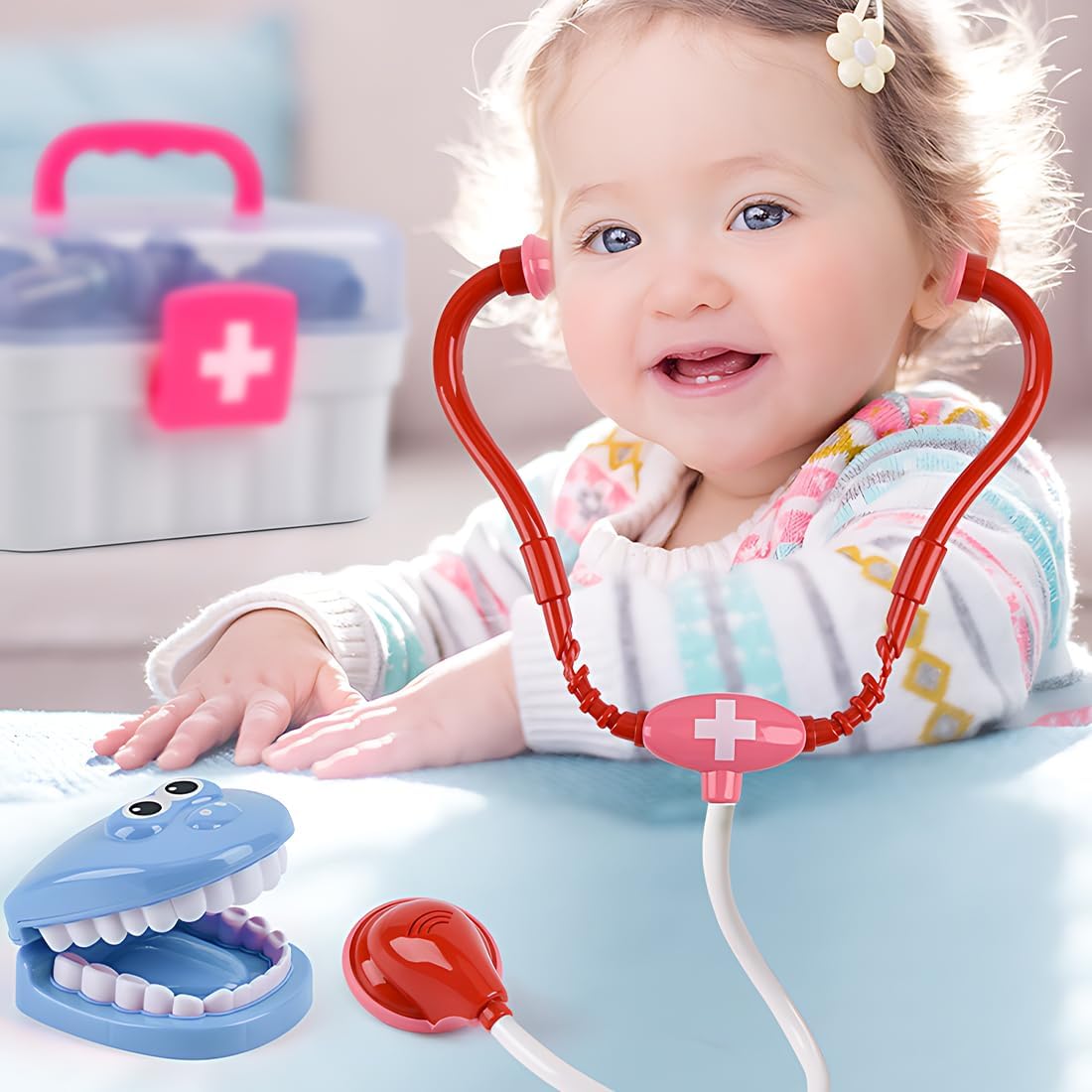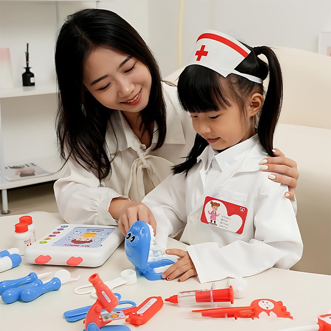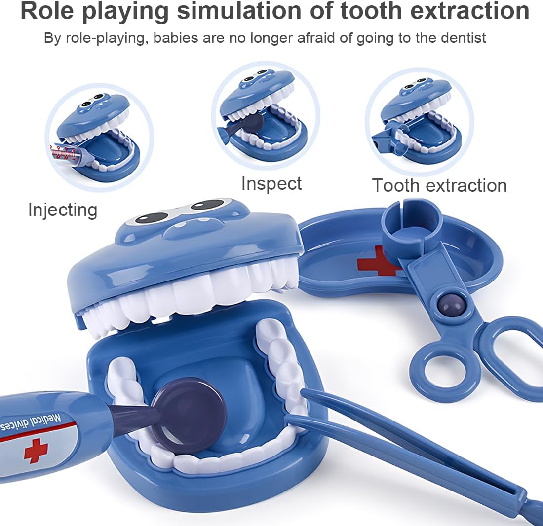 🦷KIT DENTISTA PER BAMBINI: il kit per il gioco di ruolo per bambini contiene 9 strumenti: denti simulati, spazzolino, dentifricio, trapano dentale, pinzette, vassoio, siringa, specchio orale e gancio dentale. 🦷MATERIALE SICURO: il playset dentale per bambini è realizzato in plastica di alta qualità, sicura, atossica, resistente all'usura e durevole. 🦷Gioco di ruolo: lasciate che il vostro bambino sperimenti l'odontoiatria assumendo il ruolo di un dentista. Aumenta la fiducia del bambino in modo che non abbia paura di andare dal medico. 🦷GIOCATTOLI INTERATTIVI: i giocattoli modello pediatra possono aiutare i bambini a imparare a lavarsi i denti e a capire l'importanza di proteggere la bocca attraverso la simulazione della scena. Promuovono lo sviluppo intellettuale e l'interazione genitori-figli. 🦷UTILIZZO: Perfetto per il gioco di finzione, il gioco di ruolo, le feste e le lezioni scolastiche. Crea ore di gioco felici.