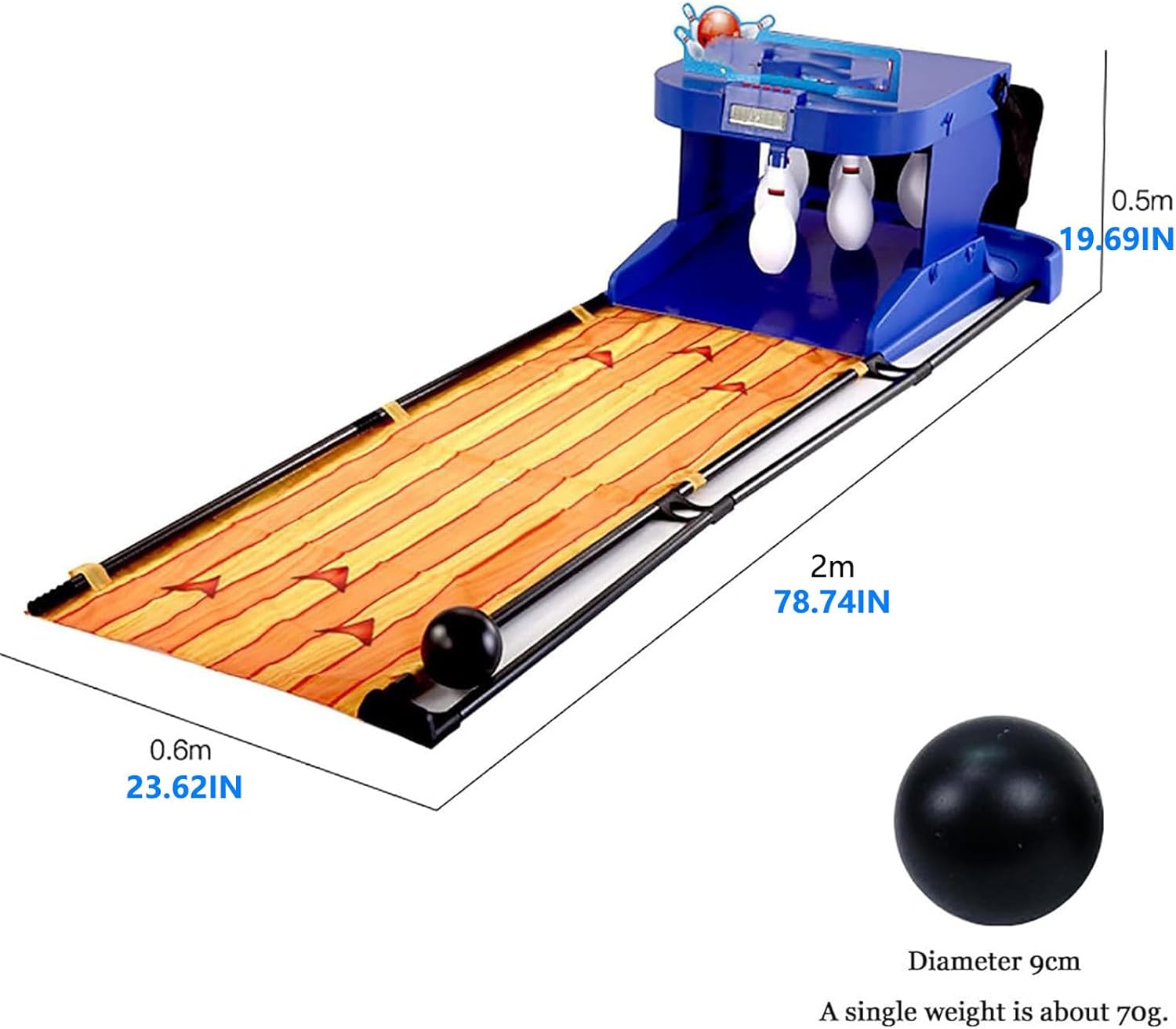 Ritorno e punteggio automatico della palla: questo set elettronico da bowling dispone di un sistema di ritorno automatico della palla e segna, alimentato da batterie (non incluse), che lo rende facile e divertente da usare. Include 6 spille in plastica e 2 palline da bowling, tutte realizzate in plastica atossica di alta qualità per un gioco sicuro. Segnapunti a LED interattivo: progettato per uno o due giocatori, il set include un segnapunti elettronico a LED che registra automaticamente i punteggi, migliorando il divertimento competitivo e l'interazione durante il gioco. Ripristino automatico realistico: dopo ogni lancio, i perni si ripristinano automaticamente con un suono simulato, aggiungendo realismo e comodità alla tua esperienza di bowling a casa. Portatile e facile da configurare: il set da bowling elettrico è portatile, adatto per l'uso domestico e può essere rapidamente installato o ripiegato per riporlo, risparmiando spazio senza compromettere il divertimento. Favorisce il legame familiare: ideale per adulti e bambini, questo set da bowling incoraggia l'interazione familiare, migliora la coordinazione occhio-mano e aumenta la fiducia dei bambini attraverso una competizione giocosa.