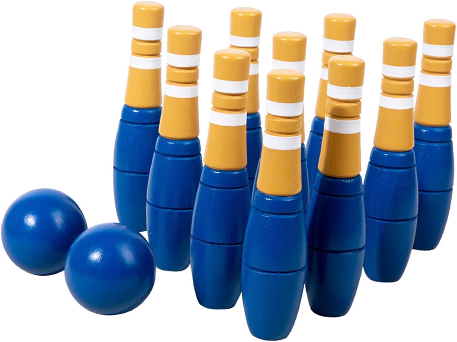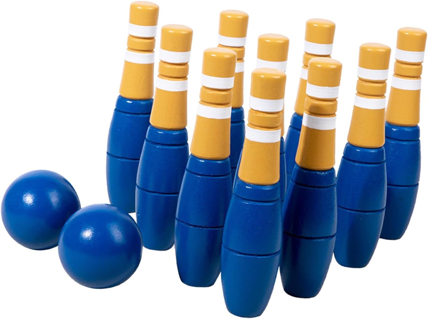 La confezione contiene: il set da bowling include 10 spille, 2 palline e una borsa a rete per un facile trasporto quando si esce. [Divertente giocattolo di interazione]: il gioco di bowling è adatto per sport ricreativi, attività di fitness per bambini, interazione con i genitori, riunioni sociali, ecc. Aiuta a migliorare la coordinazione occhio-mano, l'allenamento della forza e l'intrattenimento sociale. [Ottimo regalo]: le piccole spille da bowling sono il grande regalo per ragazzi e ragazze sopra i 3 anni, ottimo regalo di compleanno, regalo per la festa dei bambini. [Gioca ovunque]: questo set da bowling è ideale per interni ed esterni, un ottimo giocattolo educativo ed educativo, adatto per lo sviluppo precoce. Materiale di alta qualità: questo giocattolo da bowling per bambini è realizzato in legno massello, garantendo durata e resistenza agli urti. I bordi sono lisci, rotondi, proteggendo la pelle delicata dei bambini.