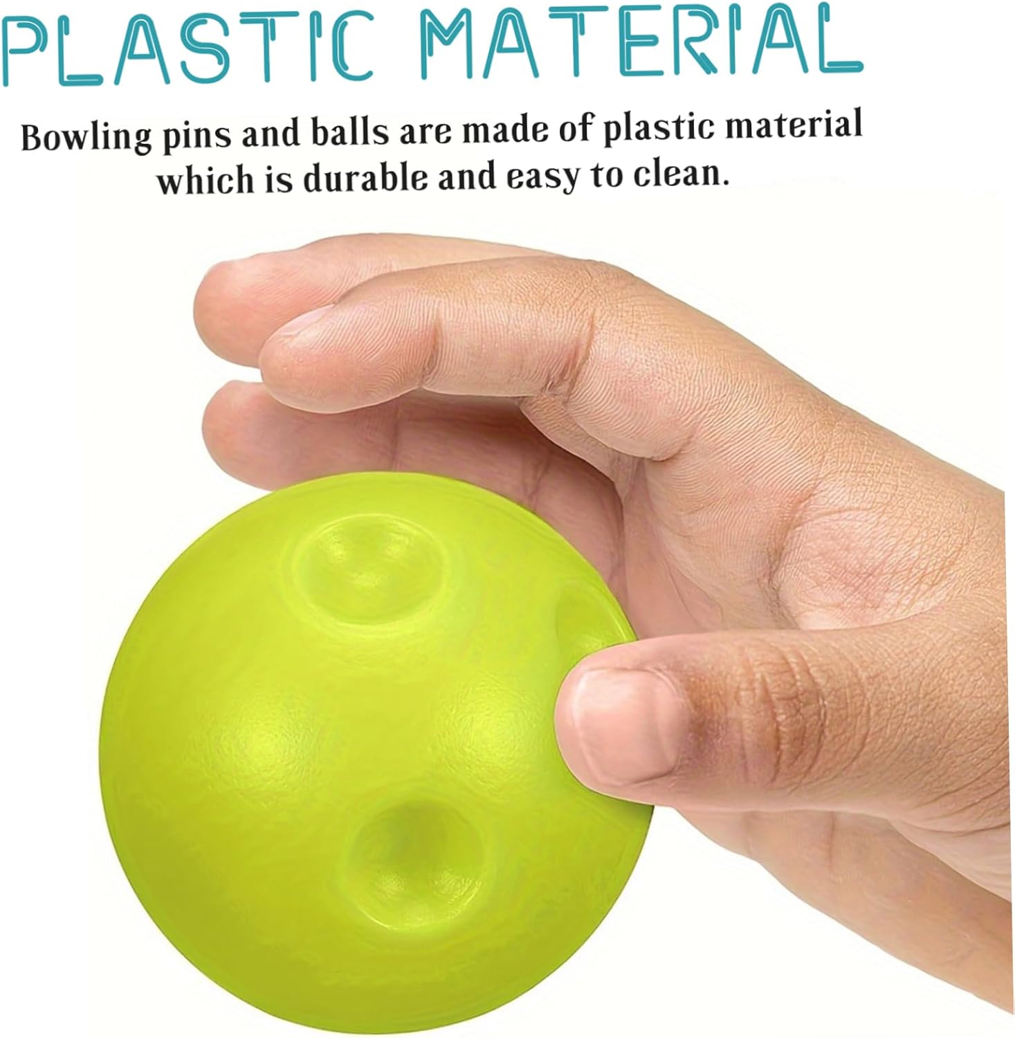Materiale plastico: i birilli e le palline da bowling sono realizzati in materiale plastico facile da pulire. Utilizzo: le palle da bowling per bambini possono essere utilizzate come gioco da bowling indoor e outdoor per far giocare i bambini su una superficie piana. Dimensioni del set da gioco della ciotola: birilli da bowling: 3x4,6x14,5 cm/1,18x1,81x5,71 pollici, palla: 8,5 cm..Adatto a far giocare bambini e adulti. Cosa otterrai: i set da bowling per bambini includono 6 birilli da bowling, 2 palline, il set soddisfa le tue esigenze di gioco. Colori vivaci: il gioco di bowling per bambini è divertente per migliorare la coordinazione occhio-mano e i bambini divertono a buttare giù palline da bowling luminose.