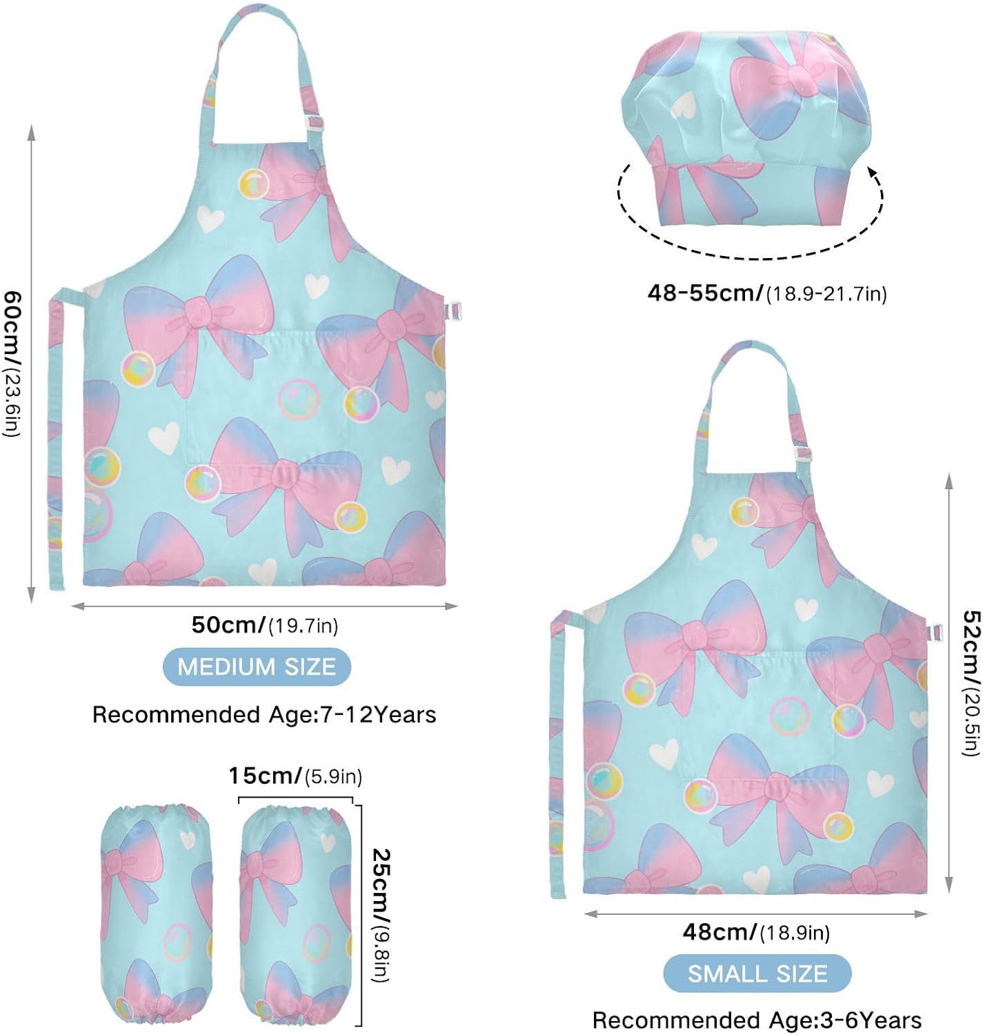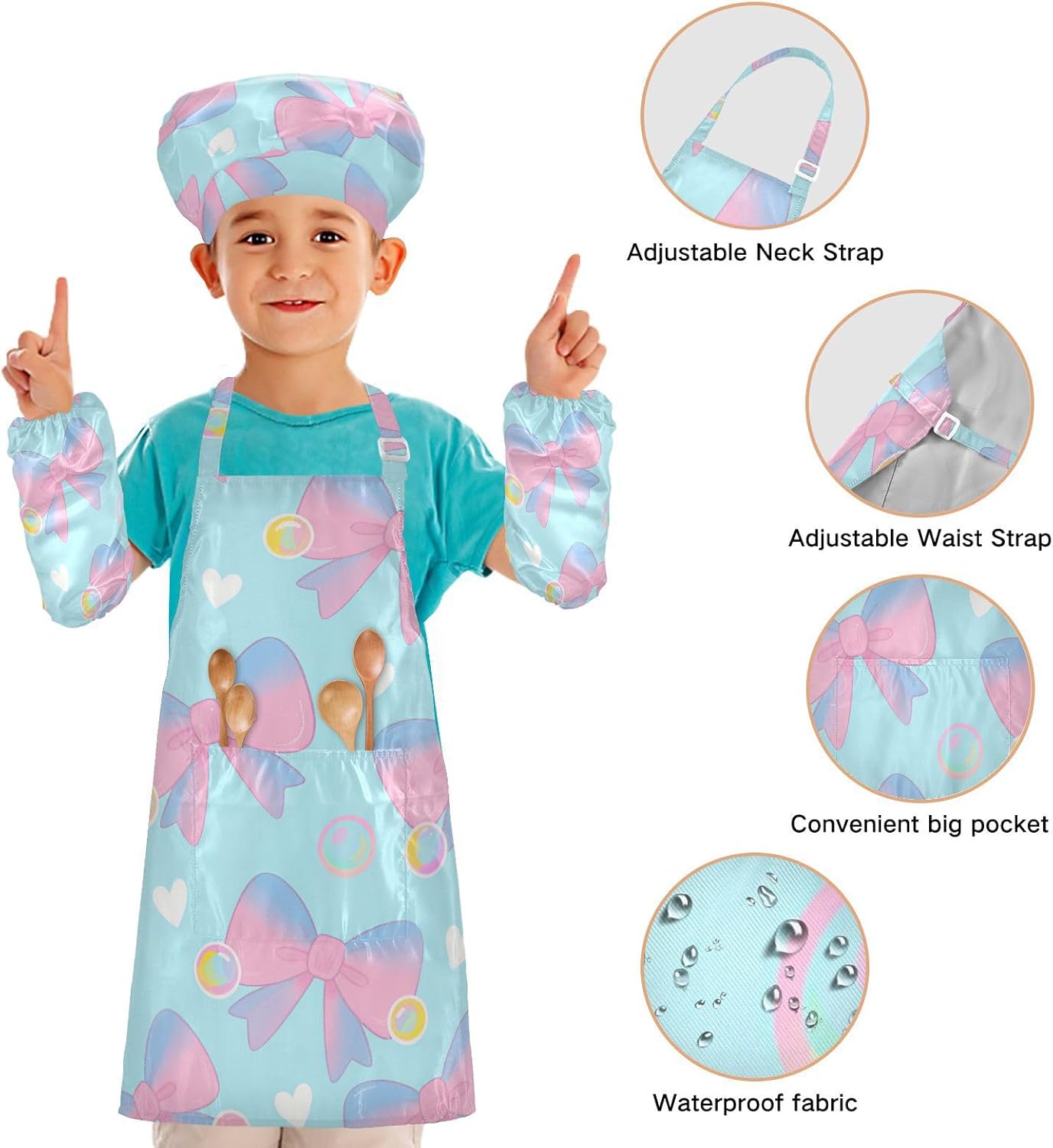 Set da chef creativo con papillon e grembiuli per bambini con tasche, per bambini dai 3 ai 12 anni