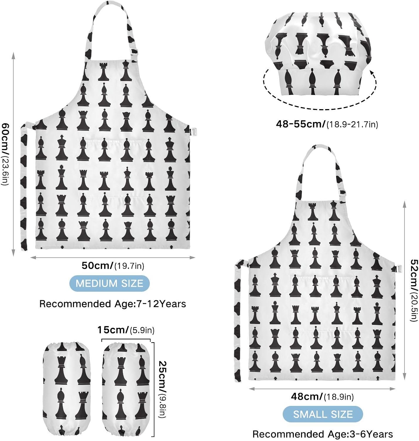 Dimensioni: il set di cappelli da chef per bambini di piccole dimensioni per bambini dai 3 ai 6 anni è alto 52,1 cm, largo 48 cm. I grembiuli per bambini di medie dimensioni per età compresa tra 7 e 12 anni sono alti 59,7 cm, larghi 50 cm. Il cappello delle due dimensioni misura 48-55,1 cm. ?La custodia misura 15 x 24,9 cm. Materiale di alta qualità: il grembiule per bambini è realizzato in poliestere, 290 twill morbido panno impermeabile, dando una sensazione confortevole quando si indossa. Cinghia regolabile: il collo lungo e le cinghie in vita sono regolabili. È possibile regolare la cinghia in base alla lunghezza che i bambini si sentono a proprio agio per attività o vestirsi Inoltre, la cinghia regolabile può fornire abbastanza spazio per i bambini da indossare o togliere. Scenario applicabile: ideale per asilo, asilo, cucina, sala pittura, giardino, Halloween, Natale, abbigliamento del Ringraziamento, artigianato e attività di pittura artistica, festa di compleanno per incoraggiare i bambini a sviluppare la loro cucina, pittura, cottura, giardinaggio o altre abilità. L'articolo include: il cappello da chef per bambini include 1 grembiule leggero, 1 cappello da chef e 2 maniche. Il set da cucina per bambini da 3 pezzi può dare ai bambini una buona esperienza di utilizzo per cucinare o dipingere come fornelli o pittori professionisti.