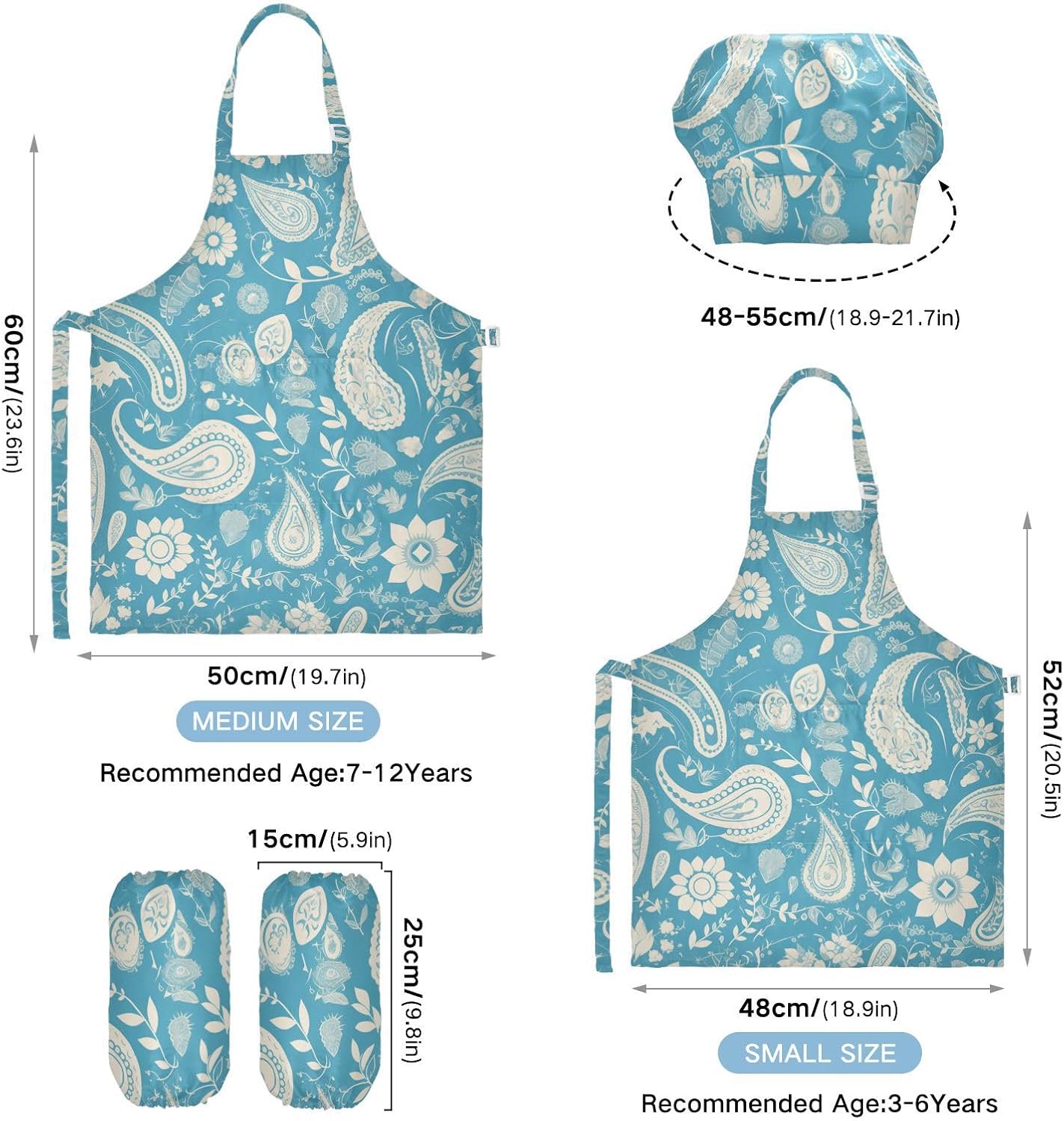 Dettagli del prodotto: Materiale: poliestere. La confezione include: 1 grembiule per bambini + 1 cappello da chef abbinato + 1 paio di maniche Dimensioni grembiule: S - 48 x 52,1 cm (età 3-5 anni), L - 19,7 x 59,7 cm (età 6-12 anni) Istruzioni per il lavaggio: Lavabile in lavatrice o a mano con acqua fredda. Perché sceglierci? Il nostro set di cappelli con grembiule per bambini è realizzato in poliestere di alta qualità, morbido al tatto e privo di sostanze chimiche, cinturino regolabile con lacci neri, morbido e confortevole, le cravatte lunghe possono essere facilmente modificate per adattarsi alla maggior parte delle dimensioni, adatte a diverse forme del corpo, sia un ragazzo che una ragazza, grasso o magro. I nostri simpatici grembiuli funzionali personalizzati con motivo vigoroso e design unico sono perfetti per tutti i tipi di occasioni, possono essere utilizzati per proteggere i vestiti durante la cottura, la cottura, l'artigianato, la pittura, il giardinaggio, il barbecue o qualsiasi altra cosa che potrebbe creare disordine. Questi set da cucina splendidamente progettati e confezionati sono anche un regalo perfetto per la cucina dei bambini, regalo per le vacanze e un regalo premuroso per i tuoi bambini che si divertono nella cottura e nella cucina.