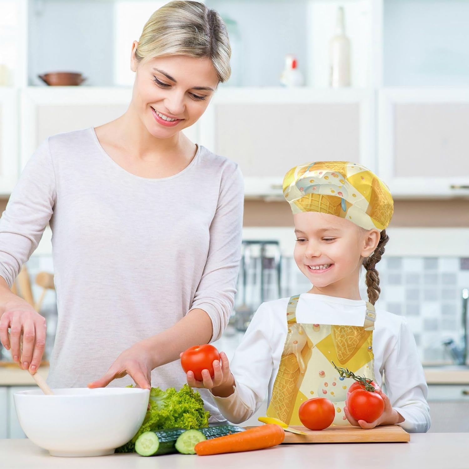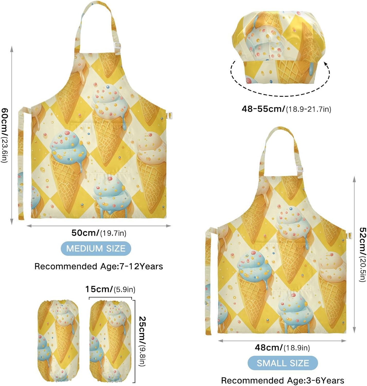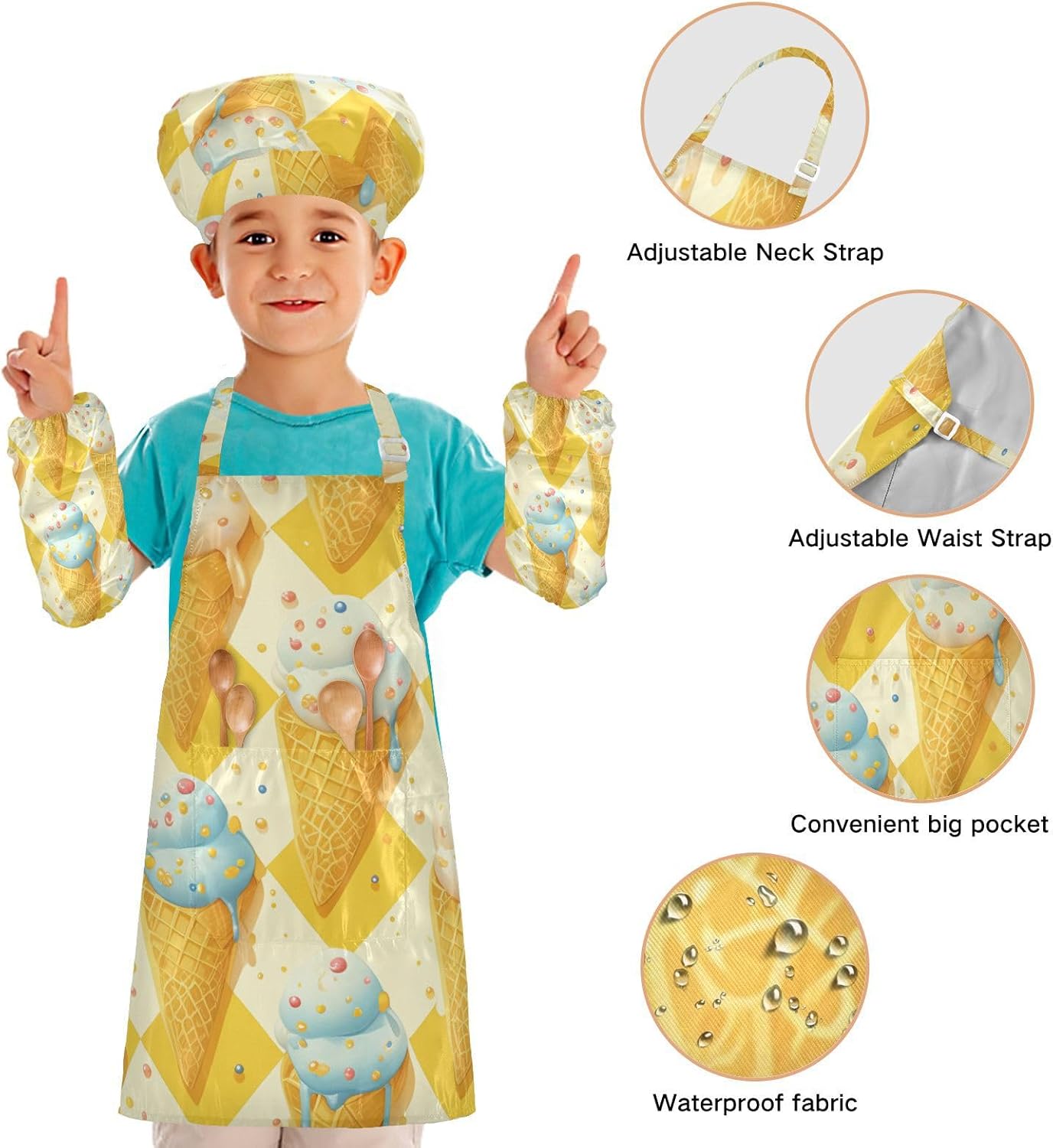 Set da chef per bambini, comodo grembiule da cucina giallo con tasche per cucinare e dipingere dai 3 ai 12 anni