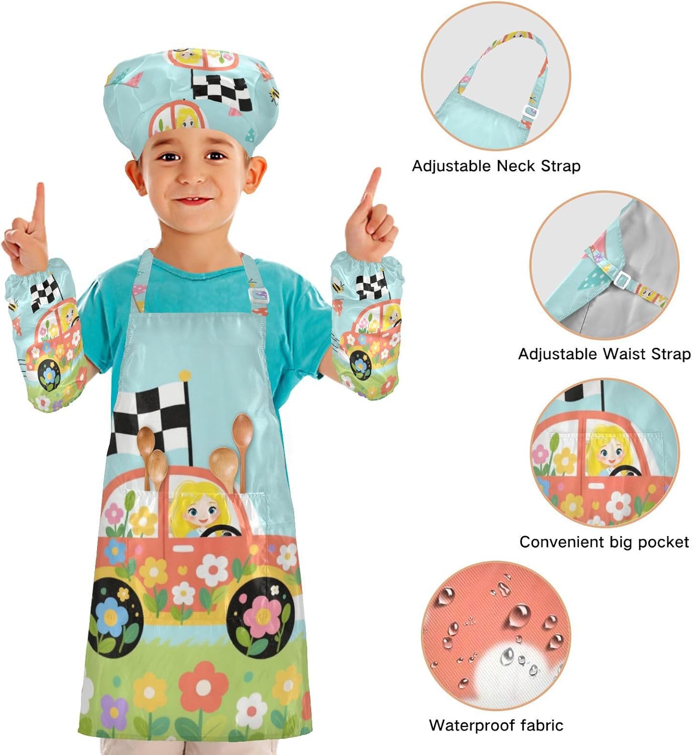 Taglia disponibile: S: 48 x 52 cm, per bambini dai 3 ai 6 anni. M: 50 x 59,7 cm, per bambini dai 7 ai 12 anni. Le taglie di cappelli e maniche condividono le stesse dimensioni. Cappello: 48-55 cm. Maniche: 15 x 24,9 cm. Tessuto comodo: il {parola chiave} è realizzato in tessuto di poliestere di alta qualità, morbido, ecologico, impermeabile, a prova di fuoriuscite e, processo di stampa squisito brillante. Protezione delle maniche con una grande tasca: due maniche possono proteggere i bambini da acqua, olio e pigmenti. Con grandi tasche decorative e funzionali, è comodo mettere alcuni strumenti quando si utilizza, adatto per imparare a cucinare, fare caramelle, dolci, ecc. Applicazioni versatili: ideale per i bambini per proteggere i vestiti durante la cottura, il giardinaggio, la cottura, il gioco, la produzione di caramelle, la cottura di torte, tele, arti e mestieri, lezioni in classe, faccende domestiche. Può anche essere una grande decorazione per costumi di Halloween, oggetti di scena teatrali, feste di compleanno, eventi carini, feste a tema, riunioni di famiglia e molto altro ancora. Istruzioni di lavaggio: lavabile in lavatrice e a mano. Non candeggiare, lavare a secco e asciugare in asciugatrice.