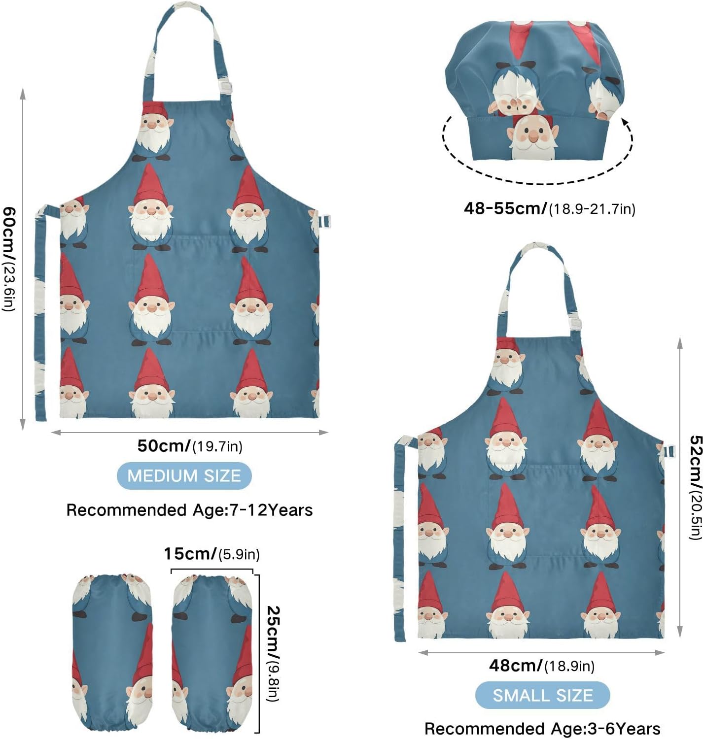 Dimensioni e articolo include: S: 18,9 x 20,5 L per bambini dai 3 ai 6 anni. M: 19,7 W x 23,5 L per età 7-12 anni. Il grembiule da cucina per bambini include 1 grembiule leggero, 1 cappello da chef e 2 maniche. Il grembiule per bambini può dare ai bambini una buona esperienza di utilizzo per cucinare o dipingere come fornelli o pittori professionisti. Materiale di alta qualità: i grembiuli per bambini sono realizzati in poliestere, comodi, eleganti, leggeri e regolabili, impermeabili, facili da pulire. Impermeabile Caratteristica: Realizzato in poliestere, il grembiule da cucina per bambini è impermeabile. I bambini possono sentirsi liberi di imparare a cucinare e dipingere come preferiscono e possono mantenere i loro vestiti puliti allo stesso tempo. Ampia applicazione: il grembiule da cucina per bambini è adatto per l'insegnamento della pittura e l'insegnamento della cucina, può essere applicato anche per corsi d'arte, costumi di Halloween, oggetti di scena teatrali, feste di compleanno e le belle attività della decorazione per feste a tema. L'articolo include: il set da cucina per bambini da 3 include 1 grembiule leggero, 1 cappello da chef e 2 maniche. Il grembiule artistico per bambini può dare ai bambini una buona esperienza di utilizzo per cucinare o dipingere come fornelli o pittori professionisti.