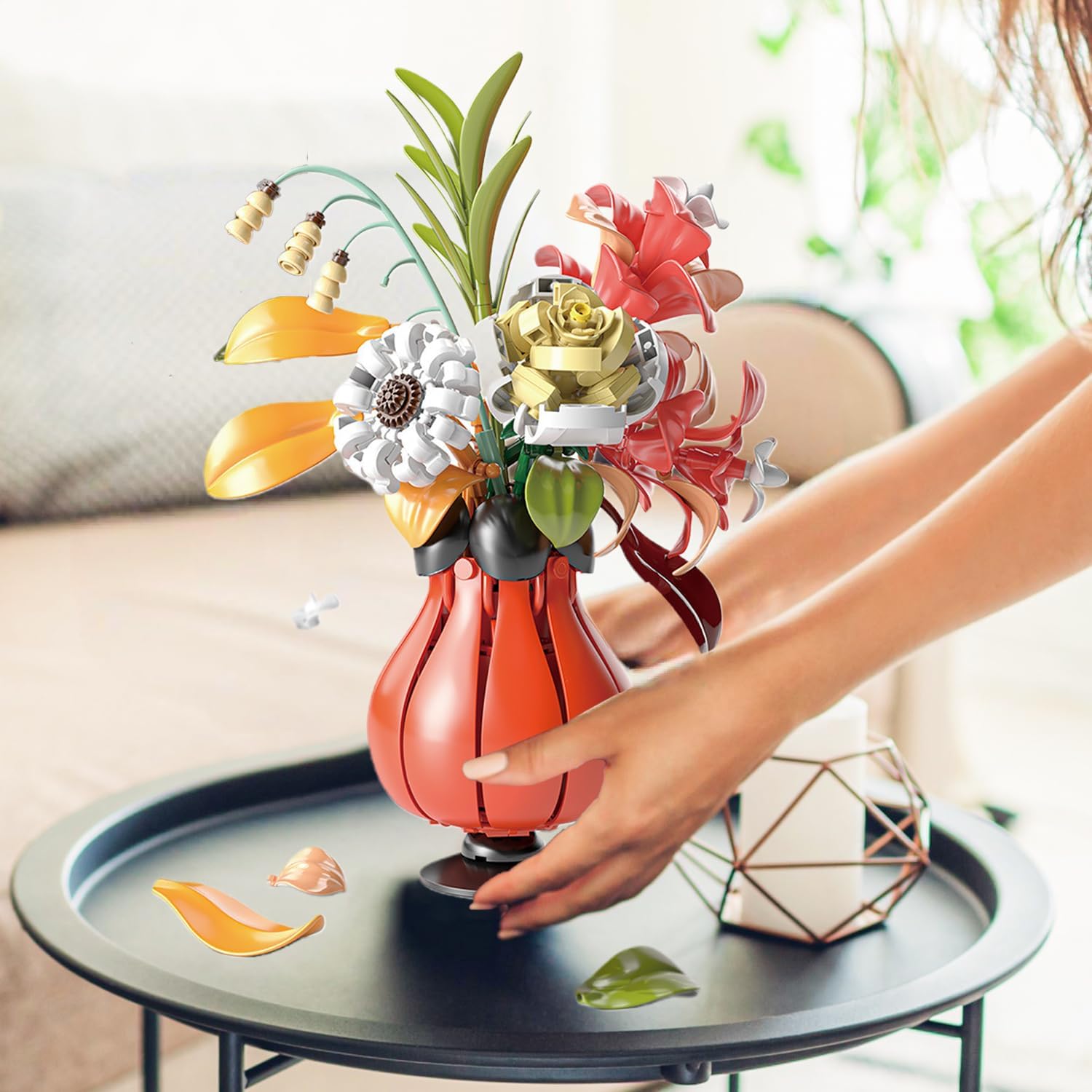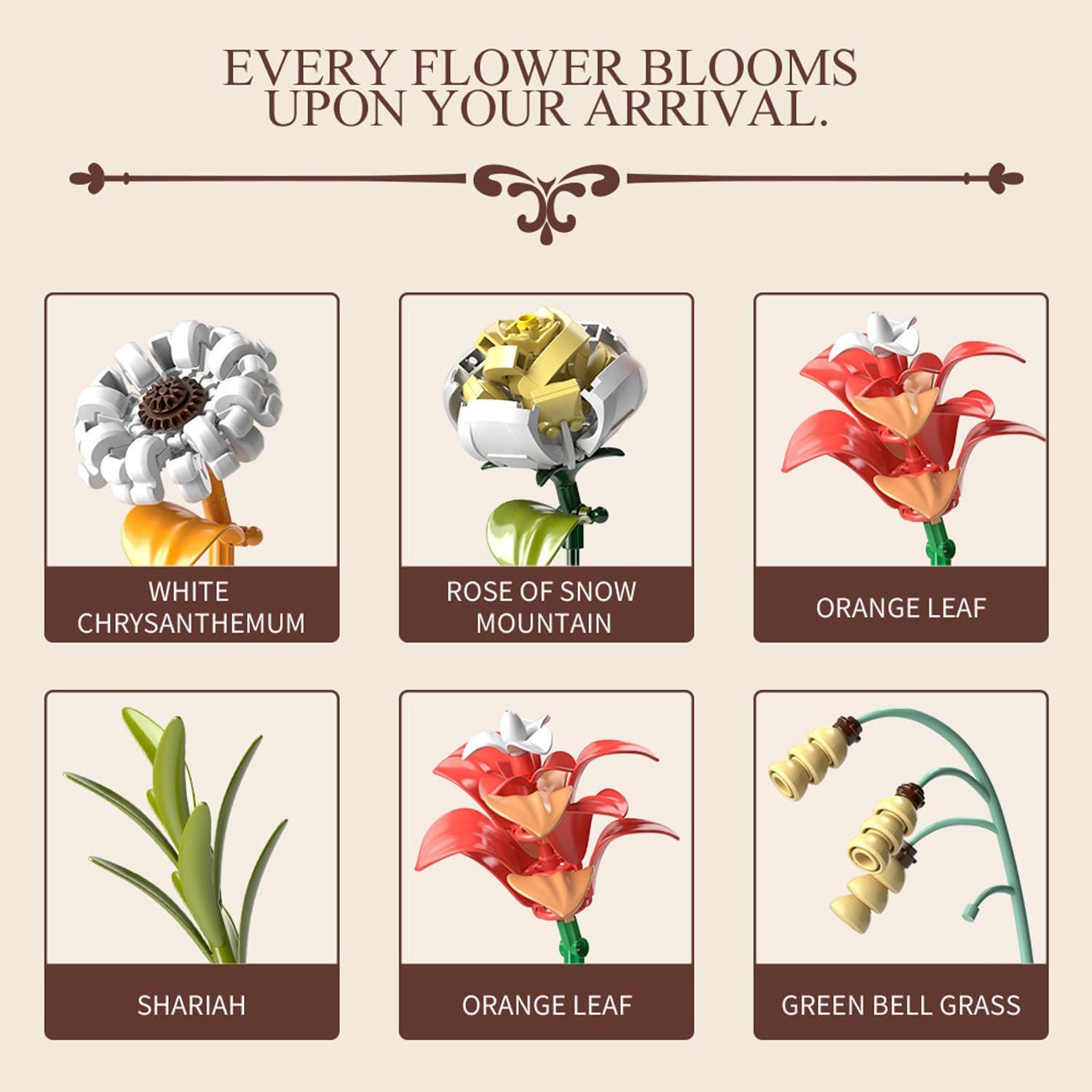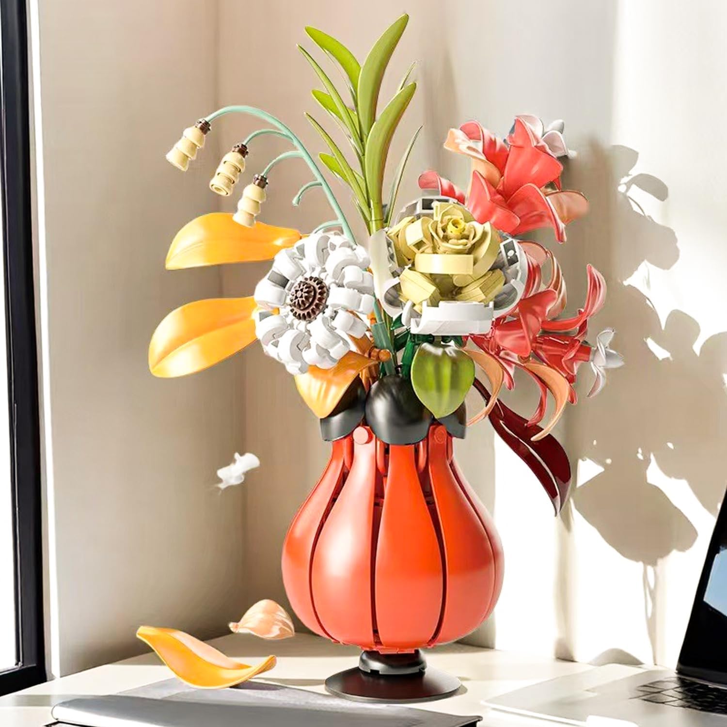Varietà di fiori: il set comprende rose, loto, crisantemi e vaso