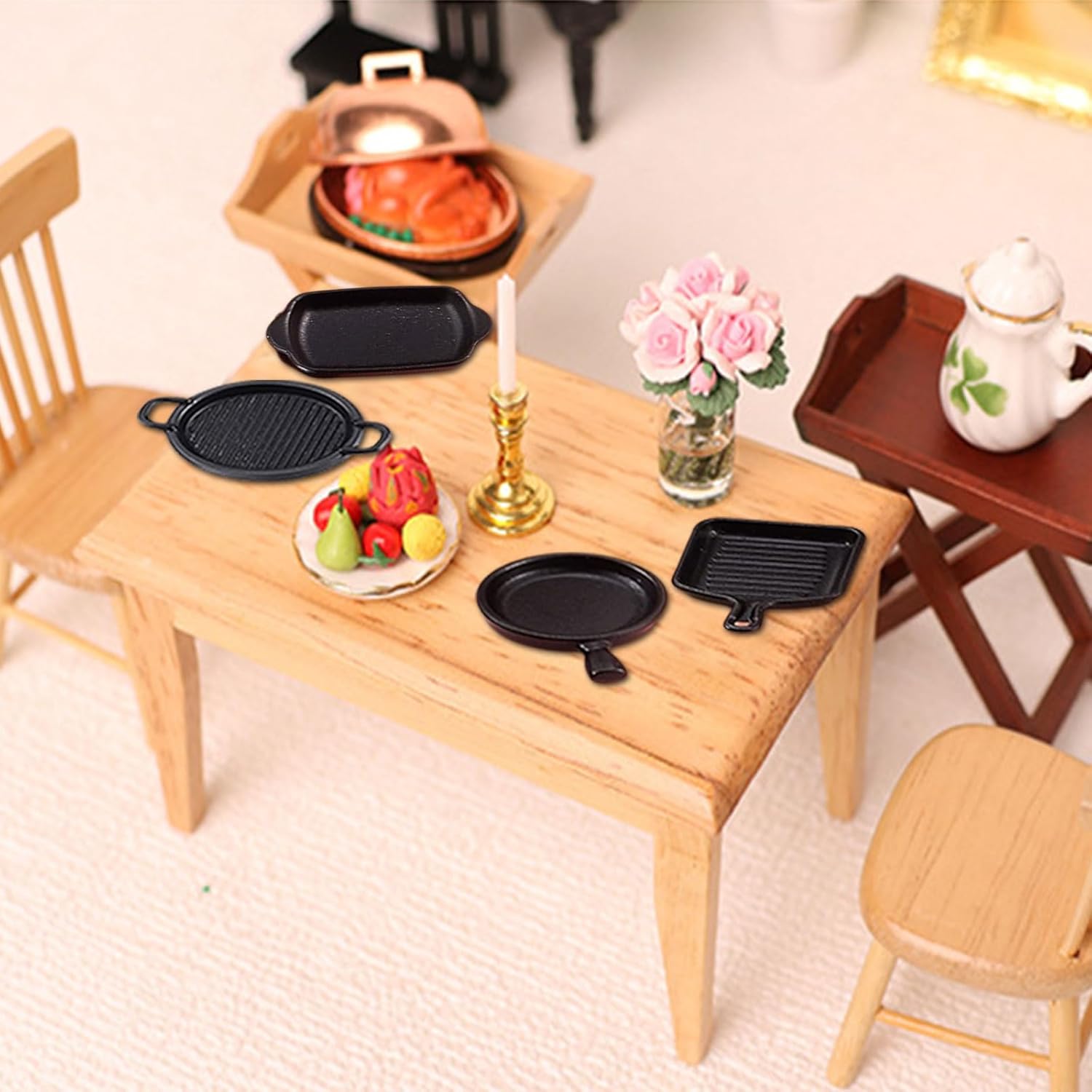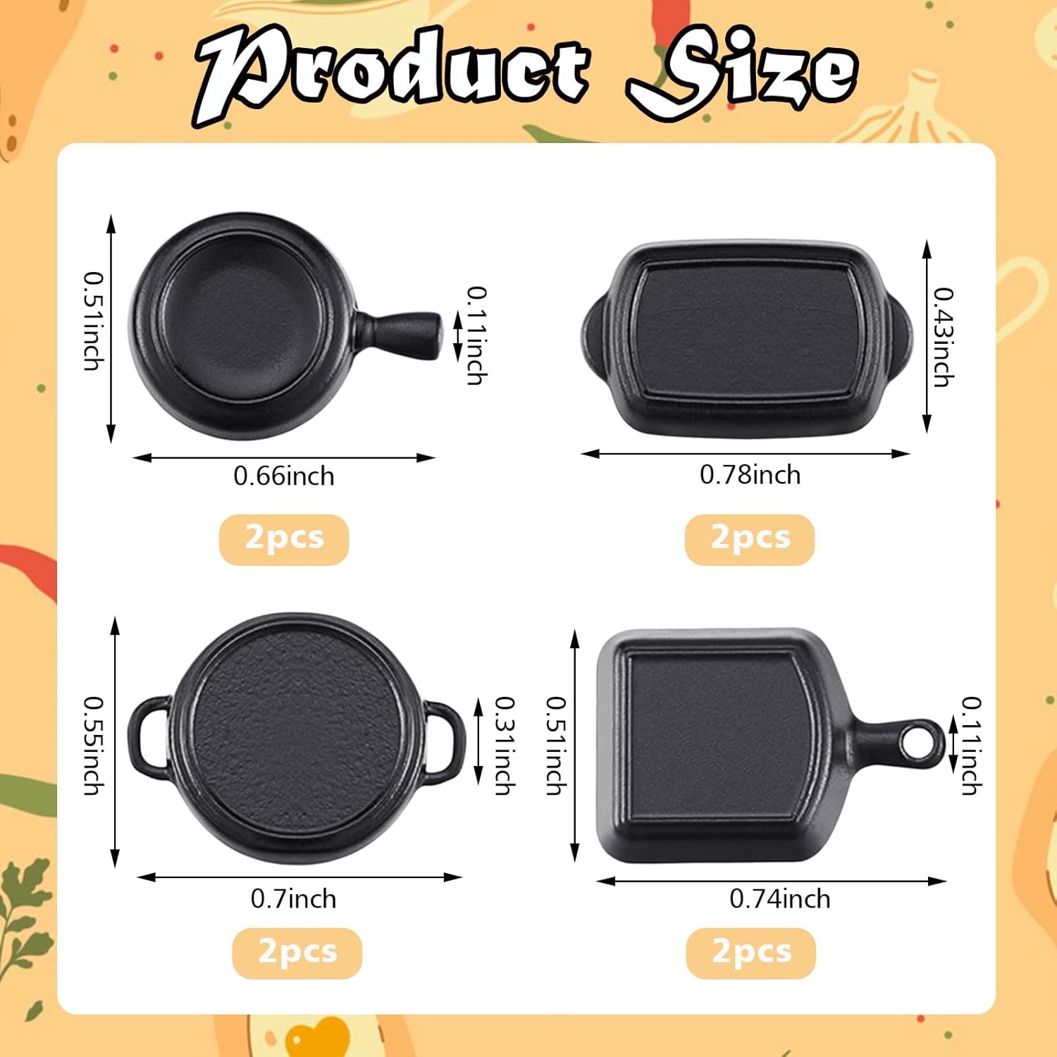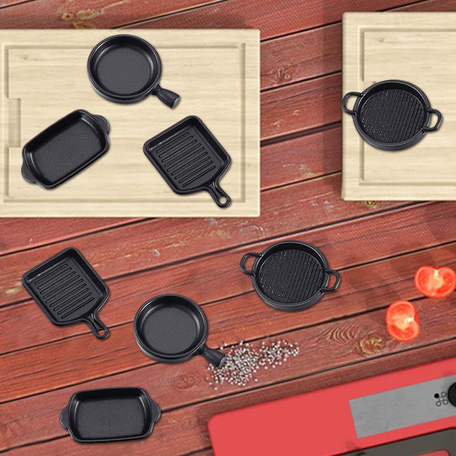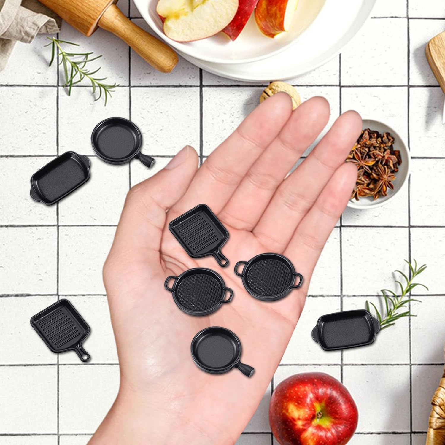 Elenco dei prodotti: Riceverai 2 padelle, 2 teglie rotonde, 2 padelle quadrate e 2 teglie rettangolari. Questi accessori bambole soddisferanno le tue esigenze di decorazione per le case delle bambole in miniatura e arricchiranno la tua casa delle bambole in miniatura, portando ancora più divertimento durante il tuo tempo libero. Materiali di alta qualità: I nostri accessori casa bambole sono realizzati in resina di alta qualità, robusta, durevole, sicura e affidabile, senza deformazioni. Ogni accessorio è progettato con cura per garantire alta qualità e bellezza duratura anche con un uso prolungato. Casa bambole accessori: Questo set di accessori casa delle bambole è progettato specificamente per case delle bambole in scala 1:12 e 1:6. Gli accessori in miniatura sono piccoli, colorati e realistici, si adattano perfettamente alla tua casa delle bambole in miniatura, aggiungendo dettagli decorativi fini e rendendo la tua casa delle bambole più vivace e interessante. Design realistico: Il design raffinato di questi miniature oggetti aggiunge fascino e divertimento alla tua mini cucina o al tuo tavolo. Ogni accessorio è colorato e dettagliato, servendo sia come decorazione che per stimolare l’immaginazione e la creatività dei bambini. Regalo per bambini: Che sia per Natale, un compleanno o altre festività, questo accessori per bambole è una scelta ideale per gli appassionati di case delle bambole e per i bambini. Il design elegante e il fattore divertimento sicuramente piaceranno ai destinatari.