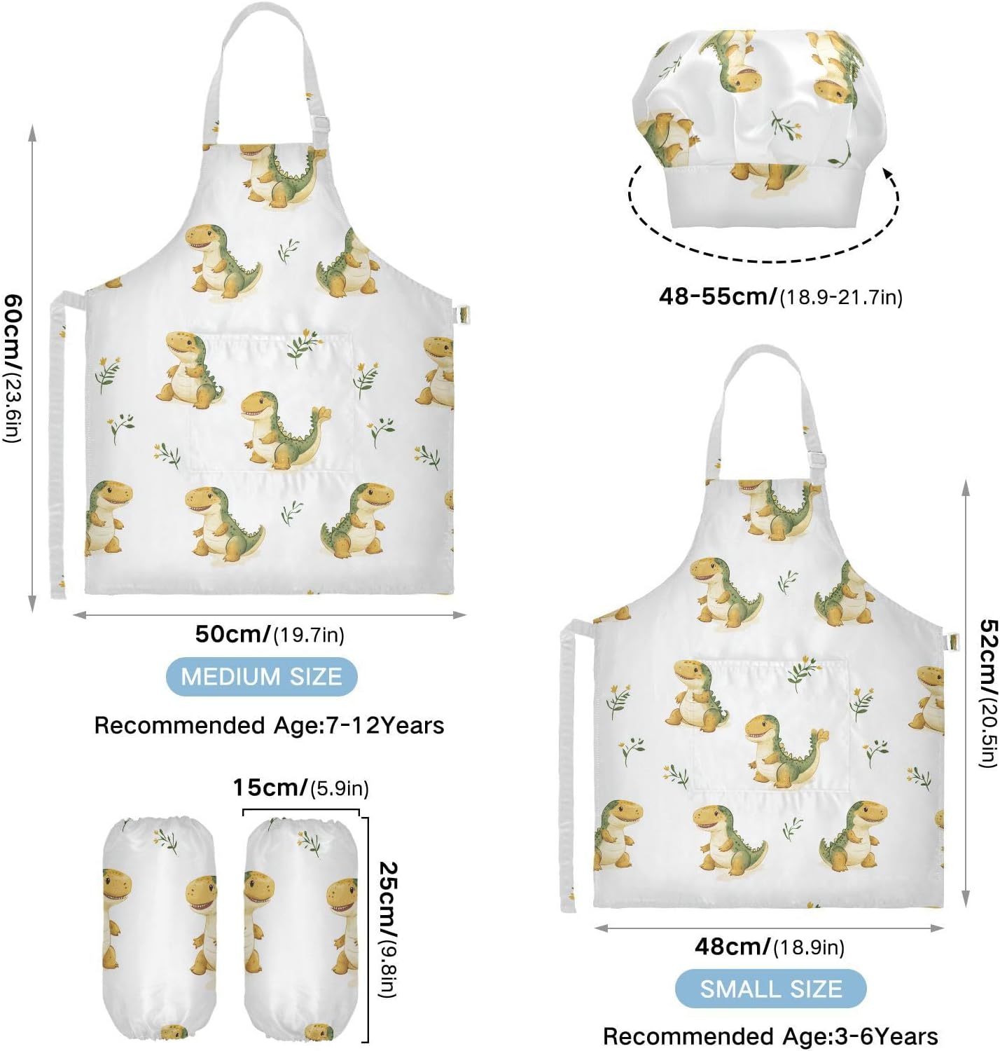 Dimensioni: il grembiule per bambini di piccole dimensioni per bambini dai 3 ai 6 anni è alto 52,1 cm, largo 48 cm. Il set di grembiule per bambini di medie dimensioni per età compresa tra 7 e 12 anni è alto 59,7 cm, largo 50 cm. Il cappello delle due dimensioni misura 48-55,1 cm. ?La custodia misura 15 x 24,9 cm. Materiale di alta qualità: il set di grembiuli per bambini è realizzato in poliestere, morbido tessuto impermeabile twill 290, dando una sensazione confortevole quando si indossa. Caratteristica impermeabile: Realizzato in poliestere, i grembiuli per bambini sono impermeabili. I bambini possono sentirsi liberi di imparare a cucinare e dipingere come preferiscono e possono mantenere i loro vestiti puliti allo stesso tempo. Multiuso: il grembiule da cucina per bambini non può essere indossato per pittura, cucina, giardinaggio, lavaggio dei piatti, feste, arte, artigianato e attività scolastiche, ma anche per Natale, Ringraziamento, Halloween, San Patrizio, Capodanno, festa dei bambini, festival, vacanze, cene, compleanni e riunioni di famiglia. Contenuto della confezione: un grembiule impermeabile, un cappello da chef e due maniche. L'adorabile set da chef per bambini può incoraggiarli a sviluppare le loro abilità di cucina, pittura, cottura, giardinaggio o altre abilità.