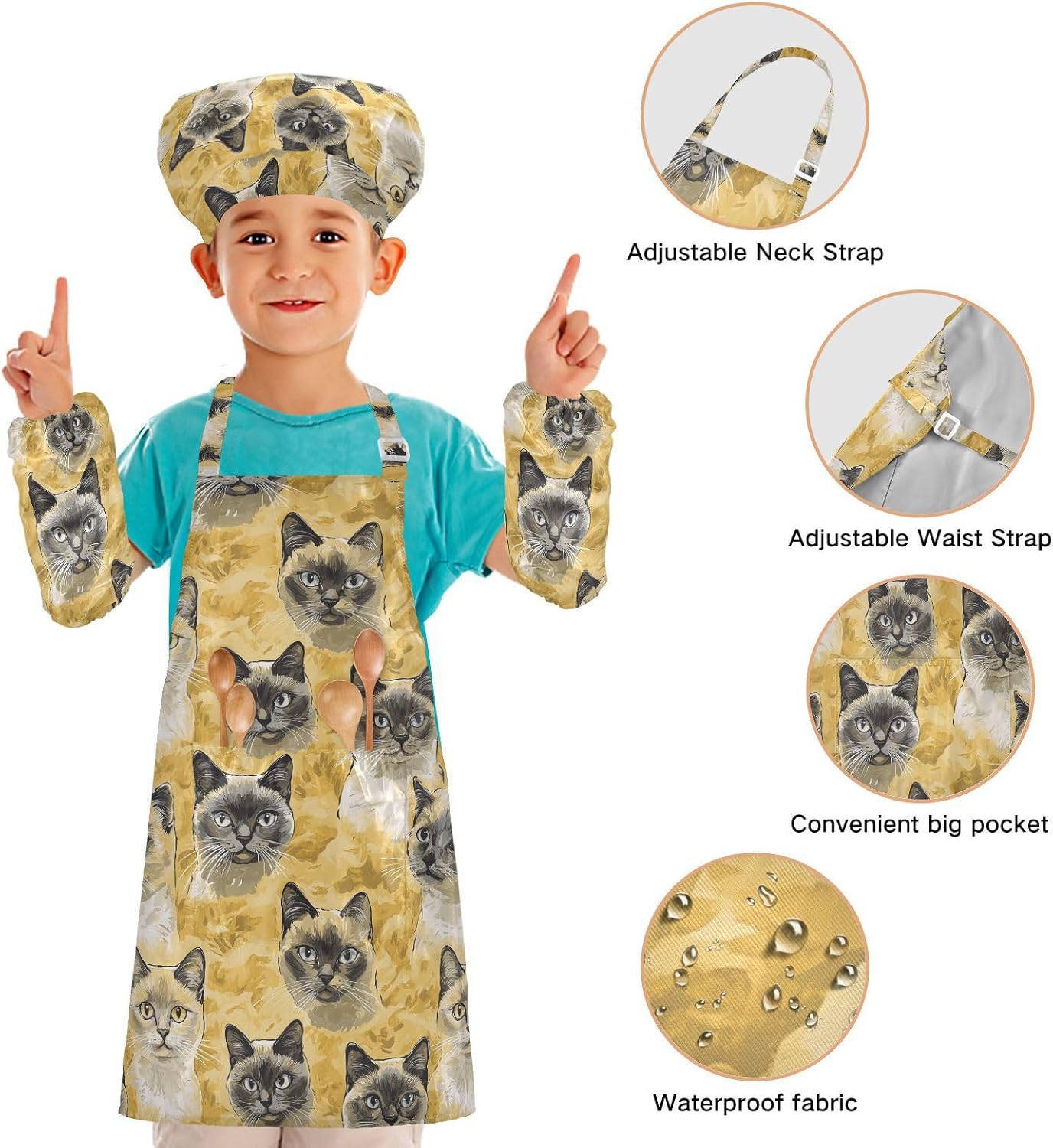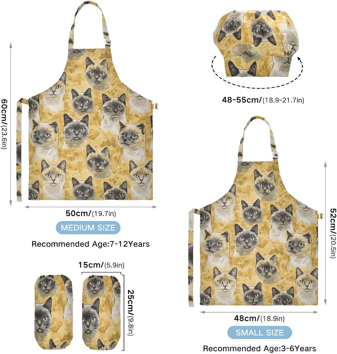 Dimensioni: il grembiule per bambini di piccole dimensioni per bambini dai 3 ai 6 anni è alto 52,1 cm, largo 48 cm. I grembiuli per bambini di medie dimensioni per bambini dai 7 ai 12 anni sono alti 59,7 cm, larghi 50 cm. Il cappello delle due dimensioni misura 48-55,1 cm. ?La custodia misura 15 x 24,9 cm. Materiale di alta qualità: il set di cappelli da chef per bambini è realizzato in poliestere, morbido tessuto impermeabile twill 290, per una sensazione confortevole quando si indossa. Cinghia regolabile: il grembiule per bambini con collo regolabile e cinturino in vita può fornire ai bambini una buona esperienza di utilizzo. Non devi preoccuparti se i grembiuli per bambini si adattano a loro o meno. Ampia applicazione: il set di grembiule per bambini è adatto per l'insegnamento della pittura e l'insegnamento della cucina, può essere applicato anche per corsi d'arte, costumi di Halloween, oggetti di scena teatrali, feste di compleanno e le belle attività della decorazione per feste a tema. L'articolo include: il set di grembiule per bambini include 1 grembiule leggero, 1 cappello da chef e 2 maniche. Il costume da chef per bambini può dare ai bambini una buona esperienza di utilizzo per cucinare o dipingere come cuochi o pittori professionisti.
