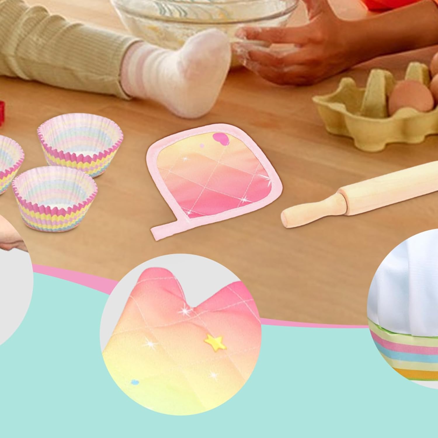 Materiali certificati per contatto alimentare: tutti i componenti destinati al contatto diretto con gli articoli di consumo sono fabbricati con componenti approvati per alimenti, fornendo la garanzia dei genitori che il set può essere utilizzato in modo sicuro per la preparazione di prelibatezze reali e ingeribili Design incentrato sulla sicurezza: ogni utensile e articolo all'interno dell'apparecchio presenta periferie levigate e leggermente arrotondate e una composizione sostanziale, che mitiga intenzionalmente la probabilità di bordi o componenti facilmente fratturati durante il gioco vigoroso Dimensioni ridotte ergonomiche: ogni spatola, frusta e contenitore di misurazione è intenzionalmente ridimensionato in proporzione per adattarsi alla destrezza e alla capacità di presa dei piccoli arti, promuovendo la manipolazione e migliorando l'acquisizione delle abilità motorie Include abbigliamento in tessuto: viene fornito completo di un grembiule proporzionale in tessuto e un rivestimento per la testa complementare, consentendo al giovane partecipante di assumere pienamente il carattere vocazionale, che arricchisce notevolmente le dimensioni fantasiose del loro tempo di gioco Promuove la competenza precoce: impegnarsi con gli oggetti ridimensionati per misurare e mescolare aiuta a introdurre concetti preliminari di proporzionalità e sequenziamento in modo divertente e tattile, aiutando nella progressione della competenza e della concentrazione della vita pratica