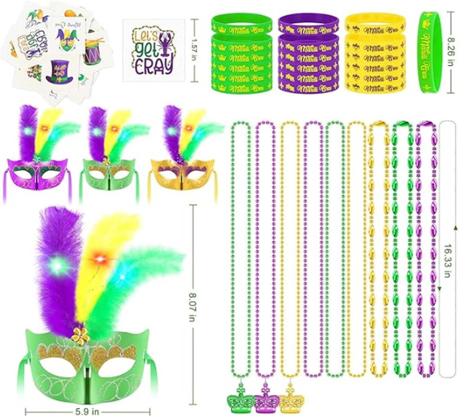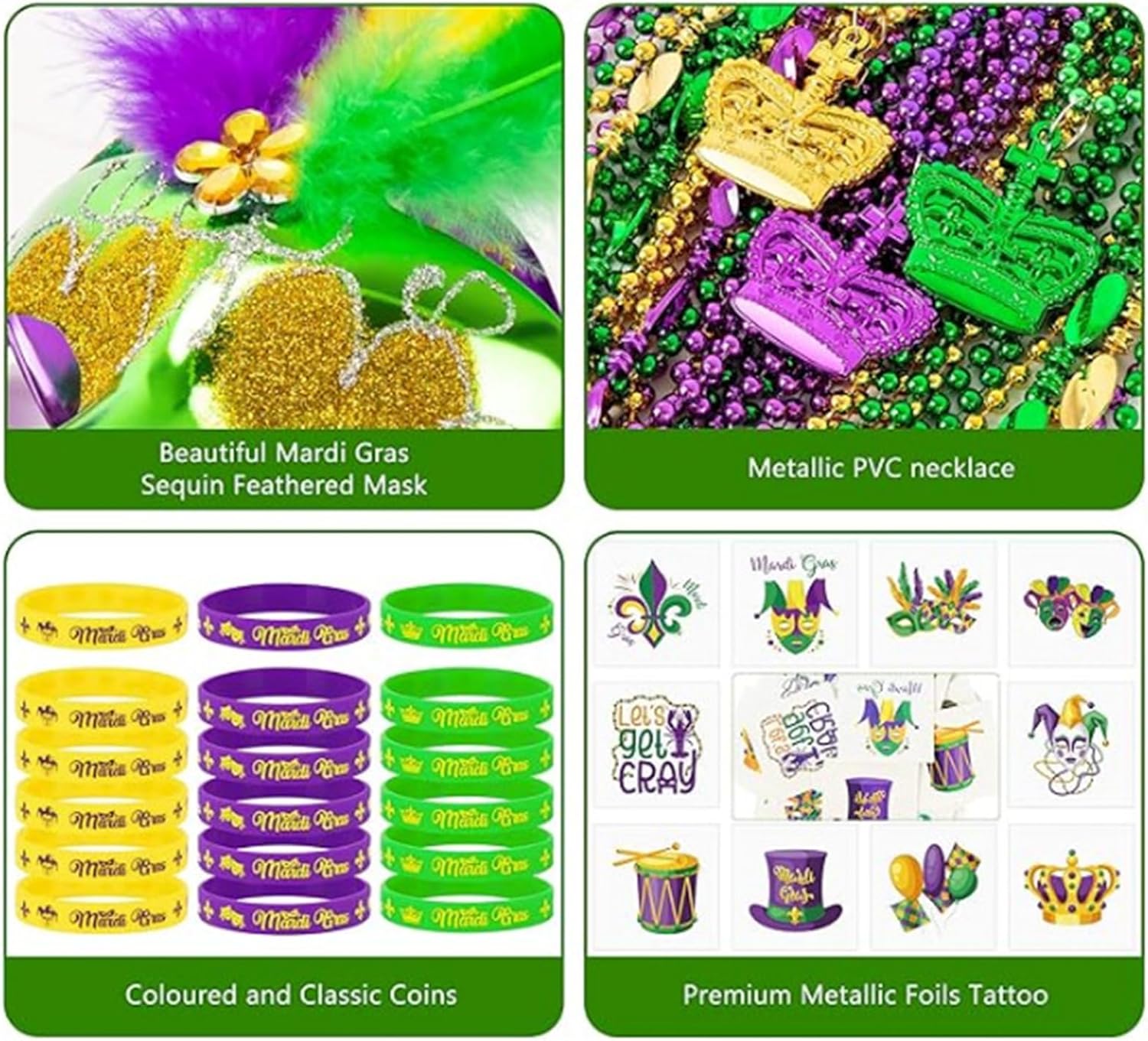 Cerchi un regalo unico? Questo set costumi Mardi è scelta perfetta per chiunque diverta a vestirsi e divertirsi. Diffondere lo spirito festivo con questo regalo speciale Preparati a brillare alla celebrazione con questo set costumi del Mardi! Con adesivo per corpo, eyemask, braccialetto e collana lunga, centro attenzione Realizzato in materiale plastico, questo set costumi è leggero, morbido e traspirante, garantendo comfort durante l'occasione Che tratti celebrazione del Mardi, festa in maschera o un raduno speciale, questo set costumi aggiungerà un tocco eccitazione e ti farà risaltare dalla folla Adatto per uomini e donne tutte le età, questo set costumi del Mardi è perfetto per coloro che amano partecipare a occasioni festive e feste a tema