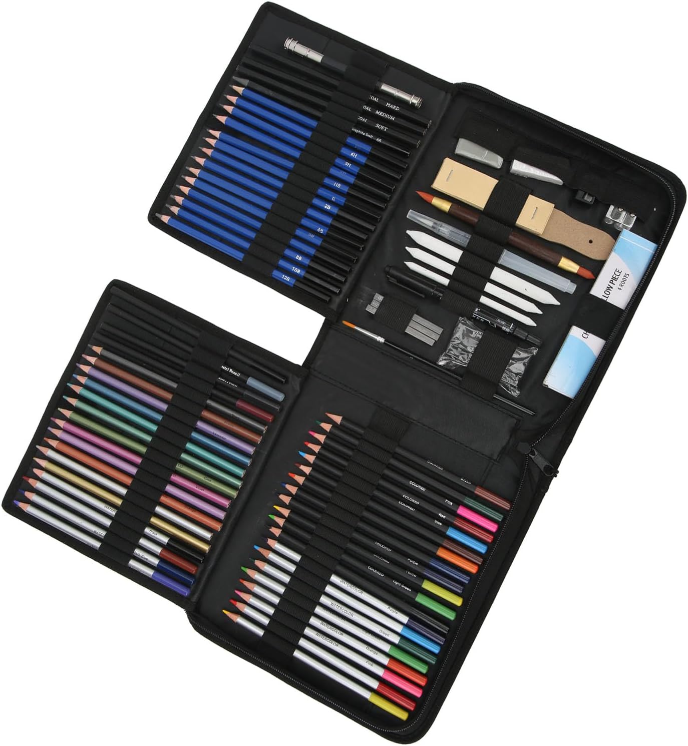 [FACILE ACCESSO] Mantieni i tuoi strumenti organizzati con matite nominate, numerate e codificate a colori in una comoda copertura con cerniera in tessuto [TASCA PROTETTIVA] La resistente borsa oxford protegge le matite da eventuali danni e le mantiene al sicuro durante il viaggio [COLORI VIVIDI] Goditi le matite color crema intense e ricche per una copertura uniforme e una facile sfumatura su varie superfici [MULTI-FUNZIONALE] Include temperamatite ed estensore di ricarica per schizzi, graffiti e pittura [SVILUPPO DELLE ABILITÀ] Migliora le tue abilità con la matita colorata e crea splendide illustrazioni con questo set da disegno