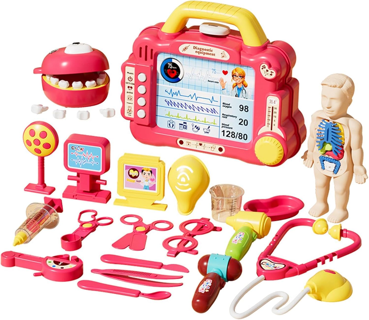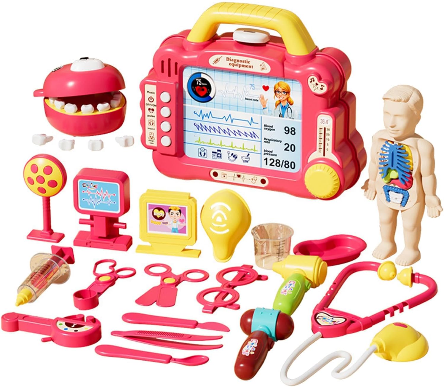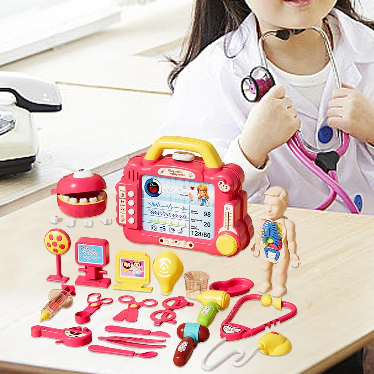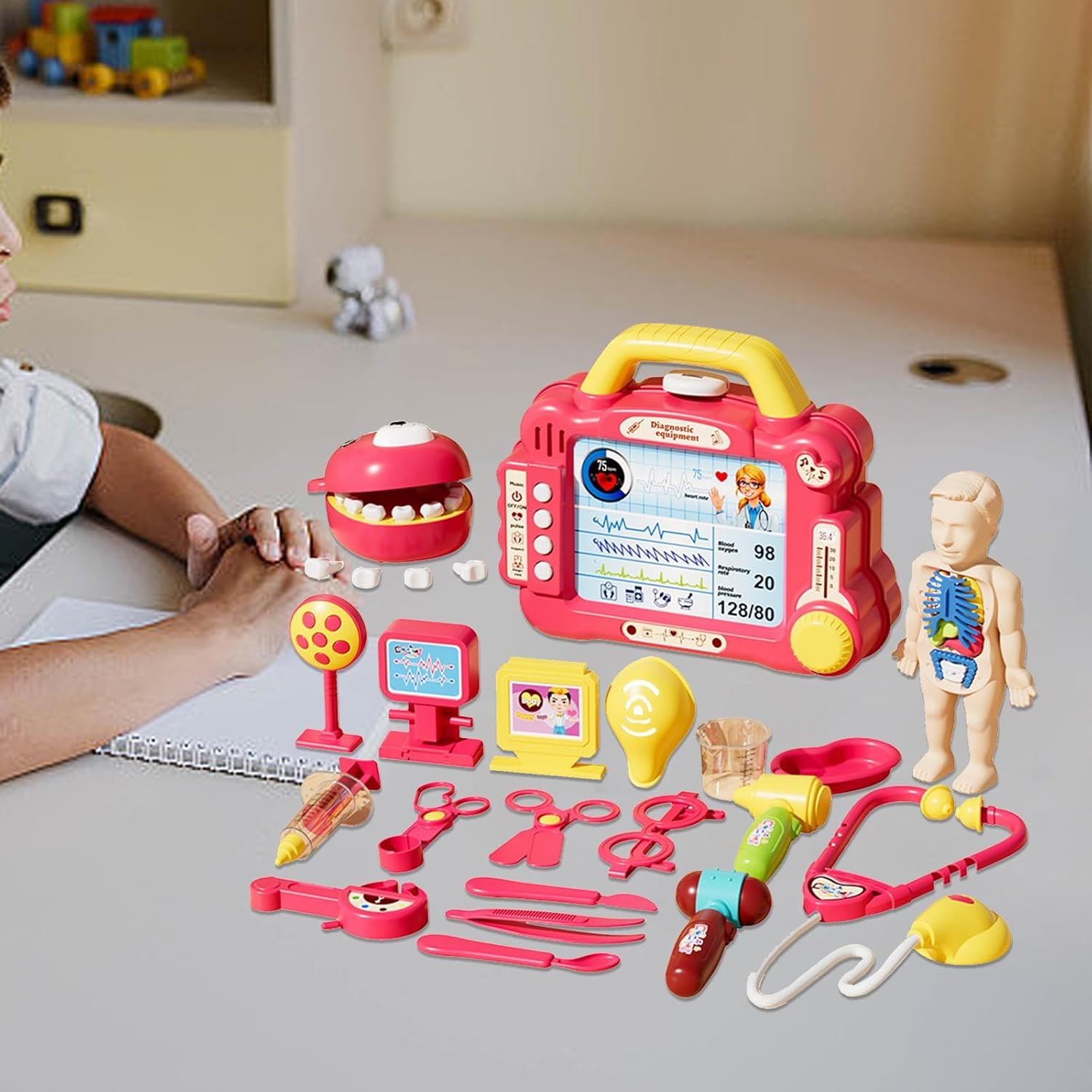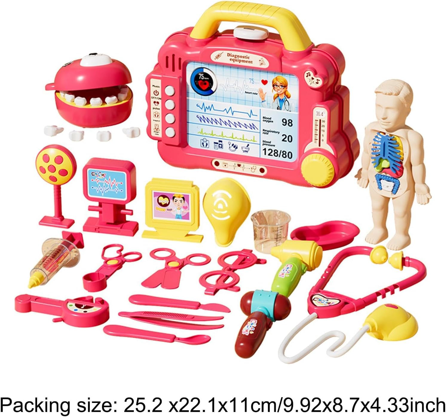 【Gioco di ruolo】: con questo set di giocattoli da dottore, i bambini possono sperimentare i ruoli di medici e infermieri. 【Regalo】 Il set medico interattivo per bambini è un ottimo regalo per i bambini. 【Materiale】: questo set di giocattoli da medico per bambini è realizzato in materiale PP ed è per un uso a lungo termine. 【Giocattoli educativi】: questo set di giocattoli non solo offre ore di divertimento nei giochi di ruolo, ma aiuta anche i bambini a conoscere le procedure in modo divertente, promuovendo il loro sviluppo cognitivo e la loro immaginazione. 【Giocattolo di interazione】 Il set di giocattoli da dottore incoraggia i bambini a comunicare con genitori e amici.