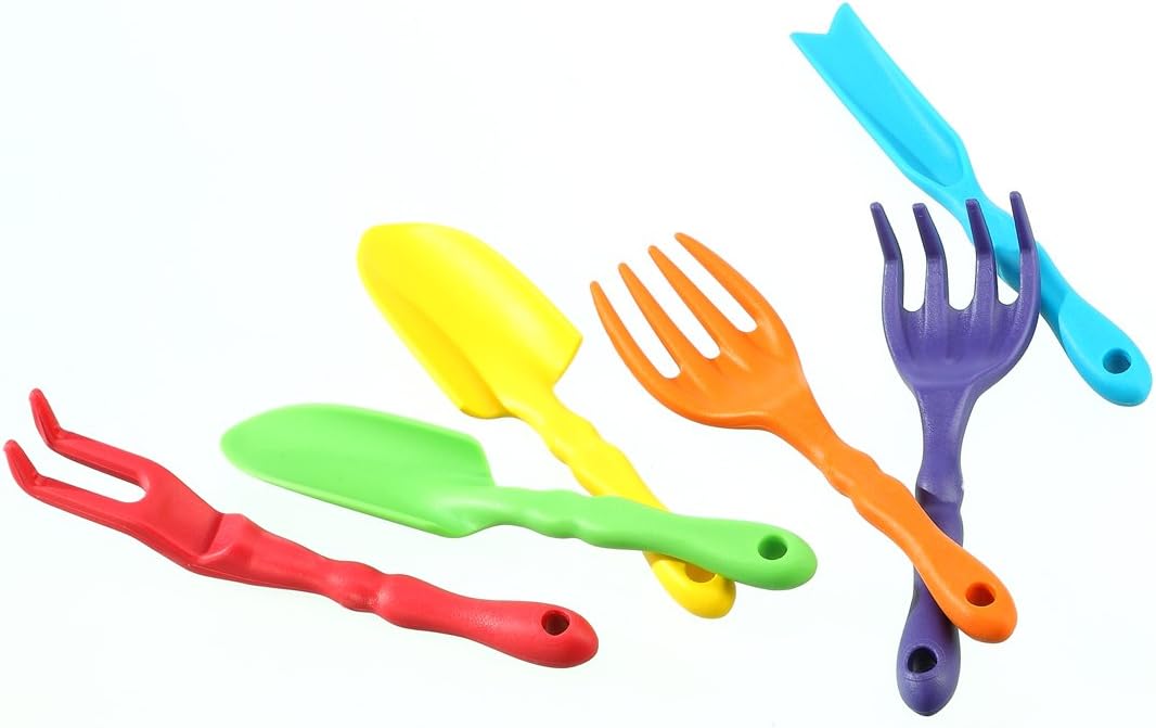 Divertente set da gioco da giardinaggio per bambini da piantare, curare e sabbiera in plastica robusta. Il set composto da 6 parti è facile da impugnare