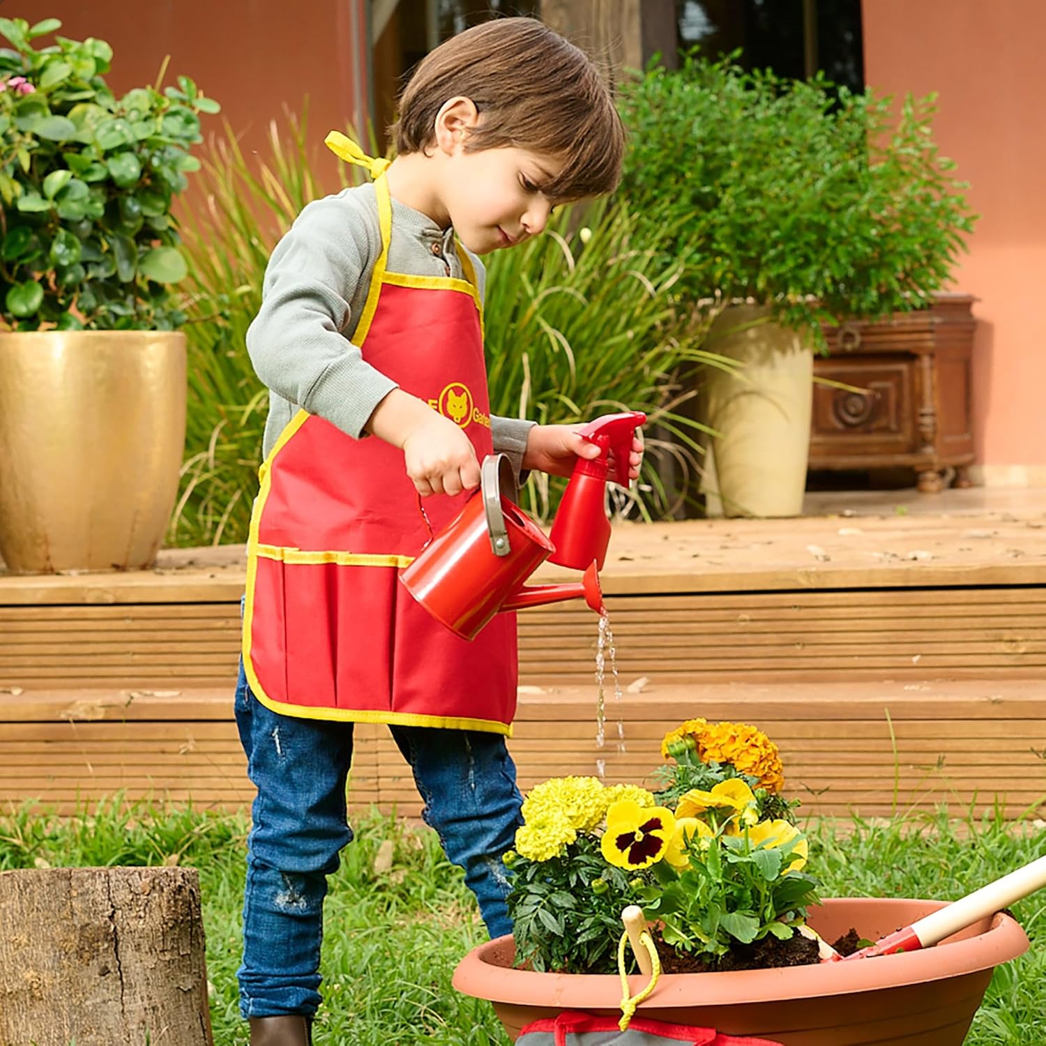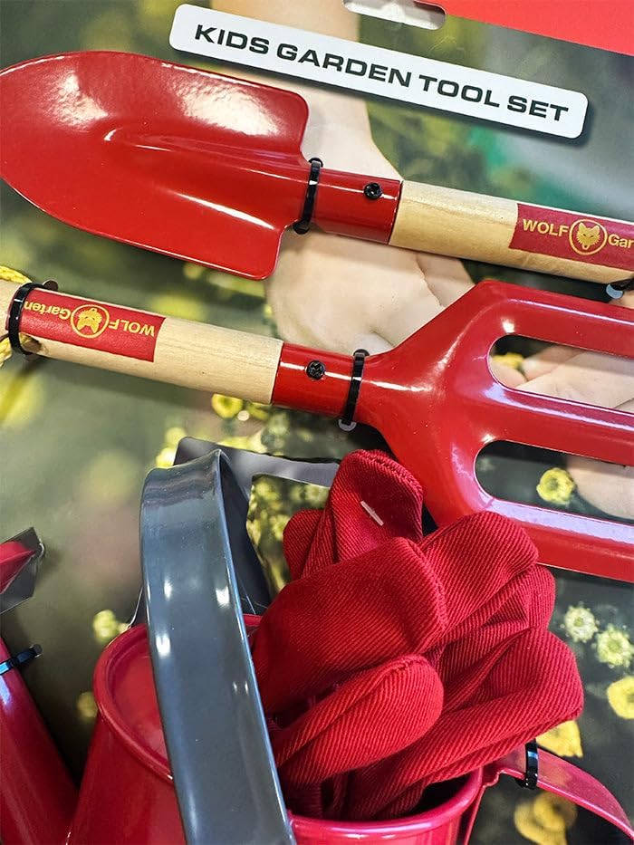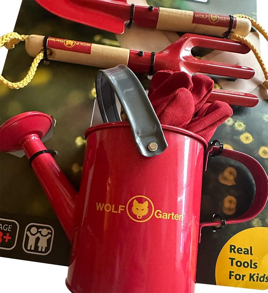 Questo pratico set di attrezzi della Wolf Garten è sicuro al 100% e adatto a bambini dai 3 anni in su. Andate comodamente in giardino con il vostro bambino con gli attrezzi da giardino di Wolf Garten. Nel set di attrezzi troverai tutti i tipi di attrezzi da giardinaggio come una pala, un annusatore, un annaffiatoio e un paio di guanti da giardinaggio. I giovani lavoratori devono potersi godere appieno e sentirsi dei veri adulti. I bambini imparano molto da giochi di ruolo come questo, soprattutto quando lo fanno con i loro genitori, che possono mostrare loro in modo giocoso come utilizzare gli attrezzi da giardino. Il set di strumenti nel design Wolf Garten è un giocattolo super divertente ed educativo. Lascia che tuo figlio lo aiuti nel giardinaggio con un kit di attrezzi pieno di elementi essenziali per il giardinaggio. Questo set di strumenti Wolf Garten dà a ogni bambino l'idea di poter davvero aiutare in giardino