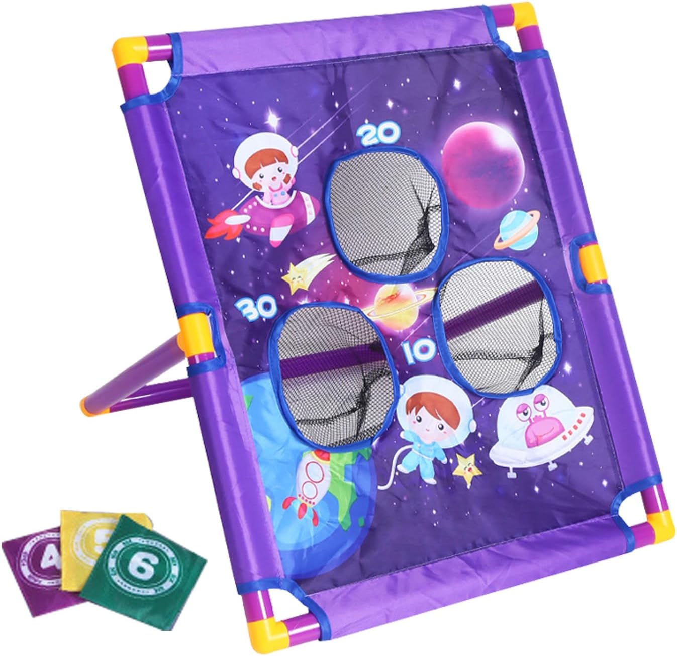 Facile da usare: aiuta il tuo bambino a migliorare la coordinazione occhio-mano con il nostro gioco di lancette per bambini. Non sono necessari attrezzi, si può iniziare in pochi minuti con istruzioni facili da seguire. Basta puntare e gettare il pouf nel buco Facile da trasportare: con il suo design portatile, ideale per riunioni di famiglia, picnic e attività quotidiane in giardino, questo giocattolo per pouf leggero e facile da trasportare promette comodità per interni ed esterni. Aumenta il divertimento all'aperto: incoraggiando l'esercizio all'aperto e l'interazione, questo gioco aiuta le famiglie a connettersi proteggendo gli occhi e mantenendo attivi i bambini; promuove le abilità sociali e la coordinazione occhio-mano Ampia applicabilità: ideale non solo per i bambini, ma molto adatto a tutte le età. Questo gioco è ideale per feste di famiglia, campeggio, spiagge, piscine e altro ancora. Sicurezza e stabilità: i materiali durevoli e il design stabile garantiscono sicurezza, consentendo ai ganci di fissare saldamente la tavola Cornhole per evitare movimenti durante il gioco, promuovendo il divertimento in famiglia a lungo termine
