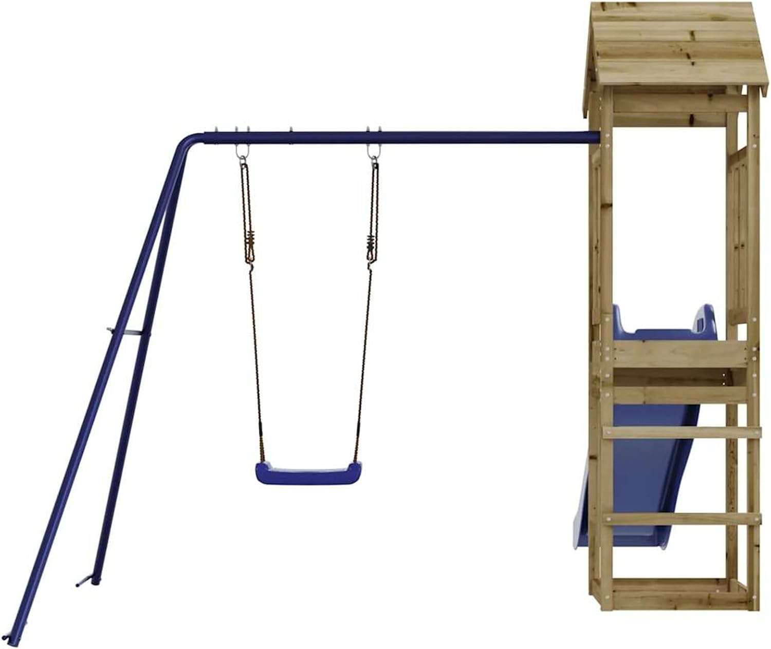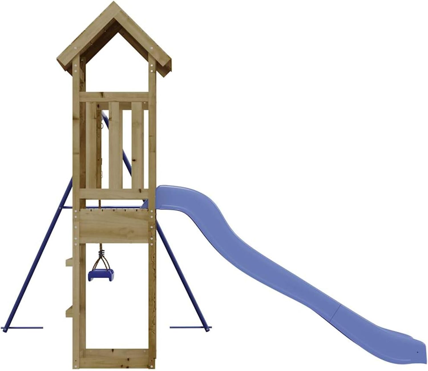 Questo set da gioco per esterni in legno trasforma il vostro cortile in un parco giochi per avventure fantasiose. Materiale resistente: questa casetta è realizzata in legno di pino impregnato sottovuoto. Il legno massello di pino è un bellissimo materiale naturale. Il legno di pino ha le venature dritte e i nodi conferiscono al materiale il suo caratteristico aspetto rustico. L'impregnazione è un processo di conservazione eseguito utilizzando le autoclavi.