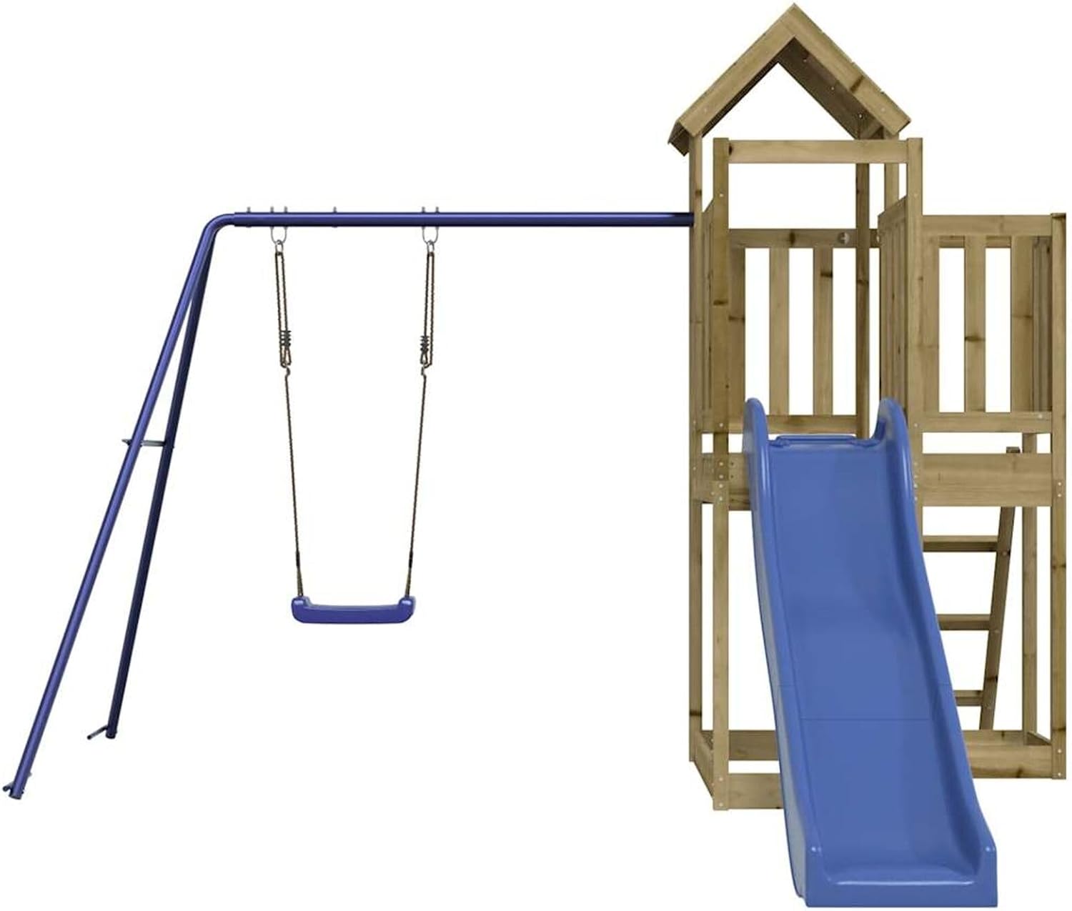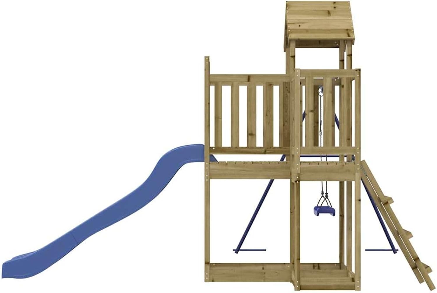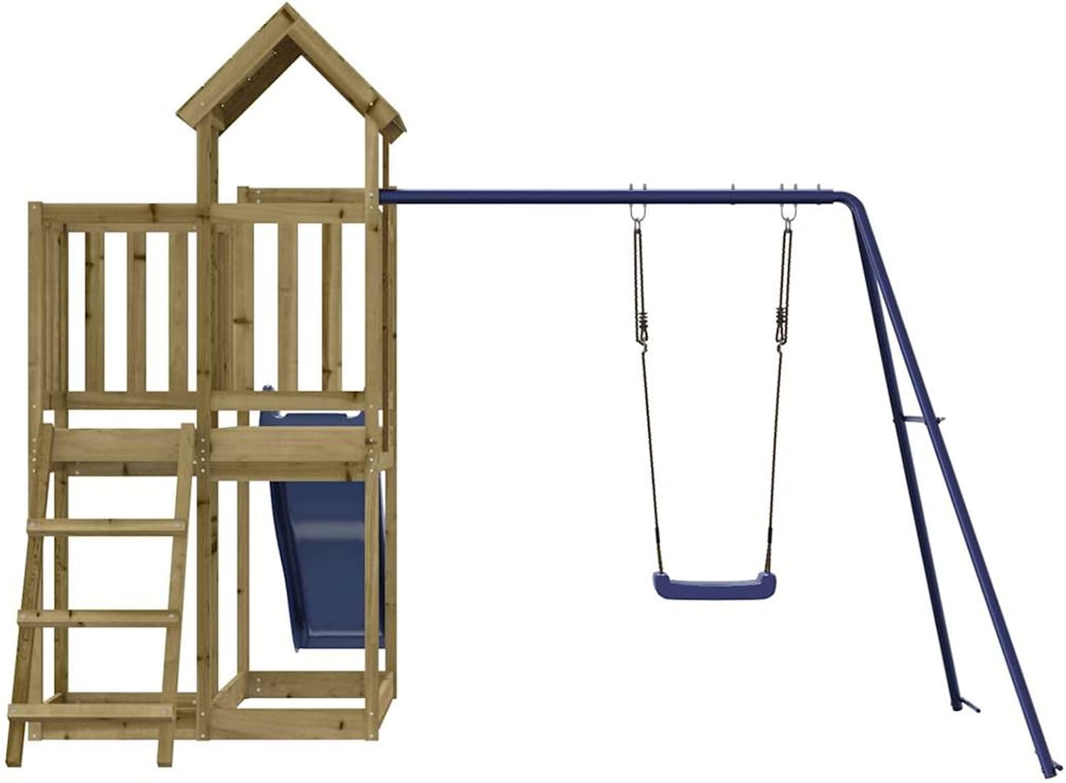Questo set da gioco per esterni in legno trasforma il vostro cortile in un parco giochi per avventure fantasiose. Materiale resistente: questa casetta è realizzata in legno di pino impregnato sottovuoto. Il legno massello di pino è un bellissimo materiale naturale. Il legno di pino ha le venature dritte e i nodi conferiscono al materiale il suo caratteristico aspetto rustico. L'impregnazione è un processo di conservazione eseguito utilizzando le autoclavi.