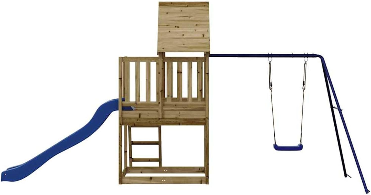 Questo set da gioco per esterni in legno trasforma il vostro cortile in un parco giochi per avventure fantasiose. Materiale resistente: questo parco giochi da giardino è realizzato in legno di pino impregnato sottovuoto. Il legno massello di pino è un bellissimo materiale naturale. Il legno di pino ha le venature dritte e i nodi conferiscono al materiale il suo caratteristico aspetto rustico. L'impregnazione è un processo di conservazione eseguito utilizzando le autoclavi.