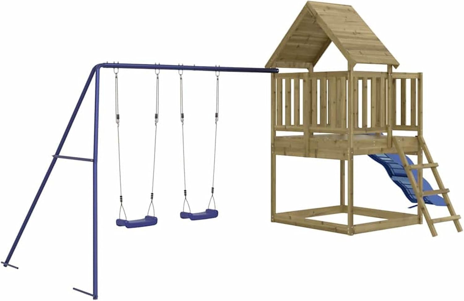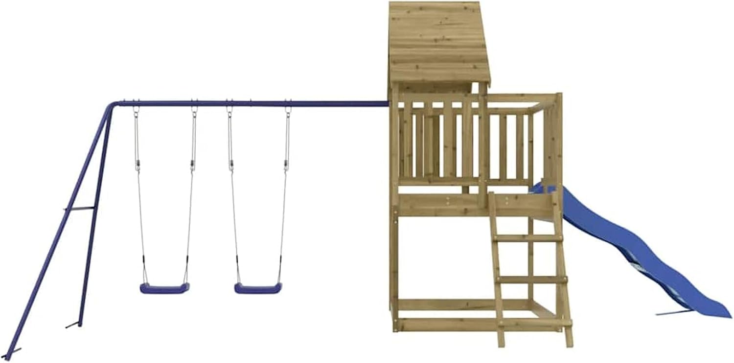 Questo set da gioco per esterni in legno trasforma il vostro cortile in un parco giochi per avventure fantasiose. Materiale resistente: questo parco giochi da giardino è realizzato in legno di pino impregnato sottovuoto. Il legno massello di pino è un bellissimo materiale naturale. Il legno di pino ha le venature dritte e i nodi conferiscono al materiale il suo caratteristico aspetto rustico. L'impregnazione è un processo di conservazione eseguito utilizzando le autoclavi.