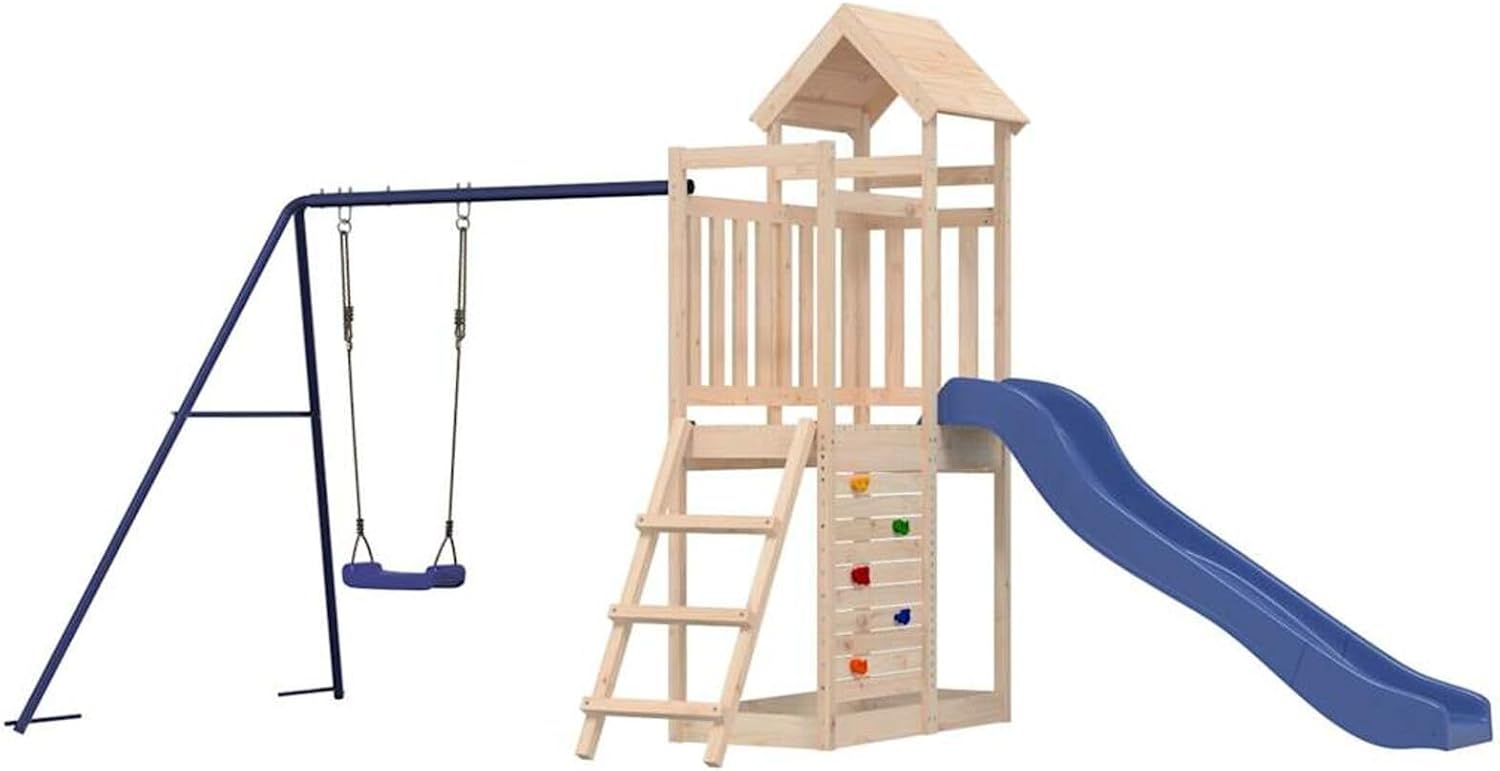 Questa casetta in legno trasforma il vostro cortile in un parco giochi per avventure fantasiose. Materiale resistente: questo parco giochi con scivolo è realizzato in legno di pino massello. Il legno massello di pino è un bellissimo materiale naturale. Il legno di pino ha le venature dritte e i nodi conferiscono al materiale il suo caratteristico aspetto rustico. Telaio robusto e stabile: il telaio in legno del parco giochi da giardino garantisce robustezza e stabilità.