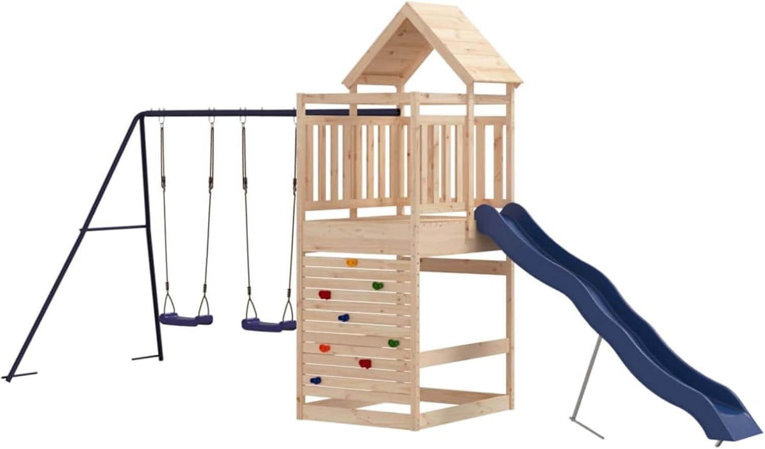 Questo set da gioco per esterni in legno trasforma il vostro cortile in un parco giochi per avventure fantasiose. Legno massello di pino: Questa struttura per l'arrampicata da giardino è realizzata in legno massello di pino. Il legno massello di pino è un bellissimo materiale naturale. Il legno di pino ha le venature dritte e i nodi conferiscono al materiale il suo caratteristico aspetto rustico. Telaio robusto e stabile: Il telaio in legno del set da gioco garantisce robustezza e stabilità.