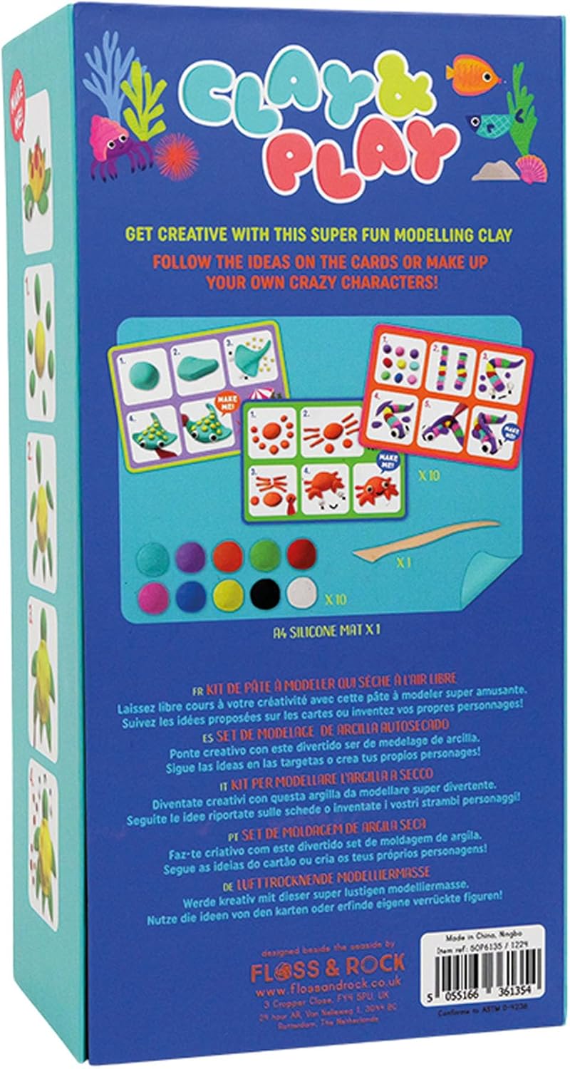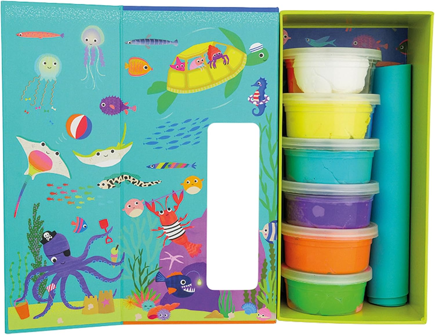 Crea 10 divertenti creature marine con argilla morbida e asciugata all'aria Include 6 vasetti di 10 vivaci colori di argilla Guida passo passo con 5 schede di istruzioni fronte-retro Viene fornito con un tappetino in silicone e uno stilo in legno Materiali ecologici, imballaggio riutilizzabile e vasetti senza BPA