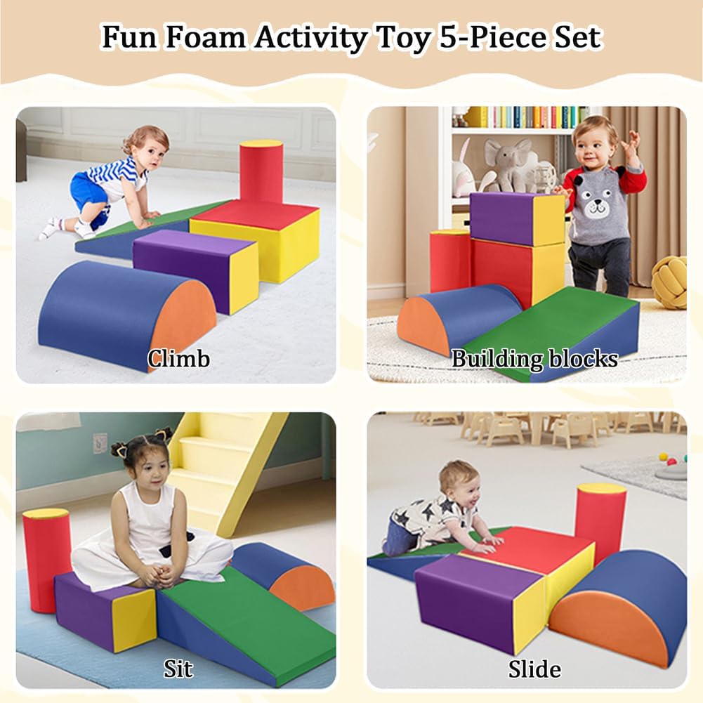 Gioco morbido educativo: questo set da gioco in schiuma per arrampicarsi e gattonare può essere liberamente combinato, includendo arrampicata, gattonare, scivolare e costruire, il che aiuta a sviluppare le capacità motorie dei bambini, stimolare l'immaginazione, esercitare la coordinazione occhio-mano e promuovere lo sviluppo cognitivo dei bambini. Blocchi da arrampicata morbidi impermeabili: il set da gioco morbido realizzato in schiuma ad alta densità e avvolto in una copertura in PU impermeabile e delicata sulla pelle, offre un supporto eccellente. Questi morbidi giocattoli da arrampicata possono proteggere ginocchia e gomiti del tuo piccolo da lesioni. Inoltre, non si deformano facilmente anche sotto l'impatto di forze esterne, garantendo un ambiente di gioco sicuro e confortevole. Attrezzatura da gioco morbida antiscivolo: il set da gioco con blocchi ha un fondo antiscivolo, ogni componente può essere fissato saldamente al sedile originale per evitare che il bambino scivoli o cada. Il fondo è dotato di velcro per evitare che il bambino cada attraverso lo spazio. Facile da pulire: i nostri blocchi in schiuma sono realizzati in tessuto morbido, resistente e impermeabile, facile da pulire. Se il tuo bambino fa cadere accidentalmente snack o bevande, basta pulirli con un panno umido. Dotato di cerniere per un comodo smontaggio e lavaggio. Trasporto compresso. Ritorna alla forma originale in circa 48 ore. Ampiamente utilizzato: il nostro set da gioco in schiuma permette ai più piccoli di sviluppare importanti capacità motorie come arrampicarsi, gattonare e scivolare mentre si muovono e giocano in asili nido, parchi divertimento, asili nido, centri di apprendimento precoce, sale giochi o come regalo di compleanno. Inoltre, il bambino può anche migliorare la coordinazione occhio-mano e sviluppare la cognizione dei colori.