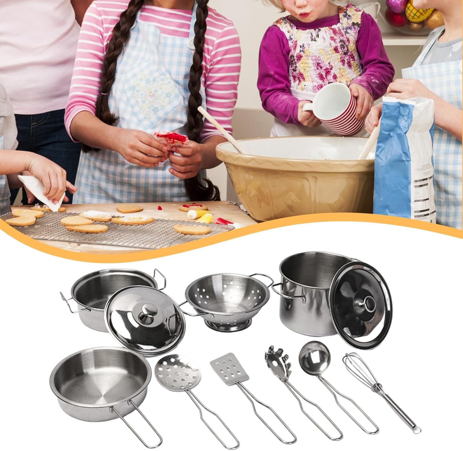 【Gioco educativo】: attraverso giochi di ruolo interattivi, questo set di giocattoli da cucina sviluppa le capacità pratiche dei bambini, le capacità motorie fini e le prime conoscenze culinarie 【Bordi lisci】: le saldature dei giocattoli da cucina per bambini su ogni pezzo sono accuratamente lucidate per creare bordi lisci e arrotondati, proteggendo le manine durante le loro fantasiose avventure culinarie 【Set da 11 pezzi】: Questo set completo da cucina per bambini include una varietà di mini pentole, padelle e utensili da cucina, offrendo al tuo bambino tutto ciò di cui ha bisogno per un'avventura in cucina completa ed emozionante. Perfetto per aspiranti chef 【Materiale in acciaio inossidabile】: questo mini set da cucina è realizzato in acciaio inossidabile di qualità per uso alimentare, resistente agli urti e alle cadute e costruito per resistere al gioco entusiasta dei bambini per infinite ore di divertimento 【Esperienza di cucina realistica in miniatura】: pentole e padelle da gioco offrono simulazioni realistiche all'immaginazione e alla creatività