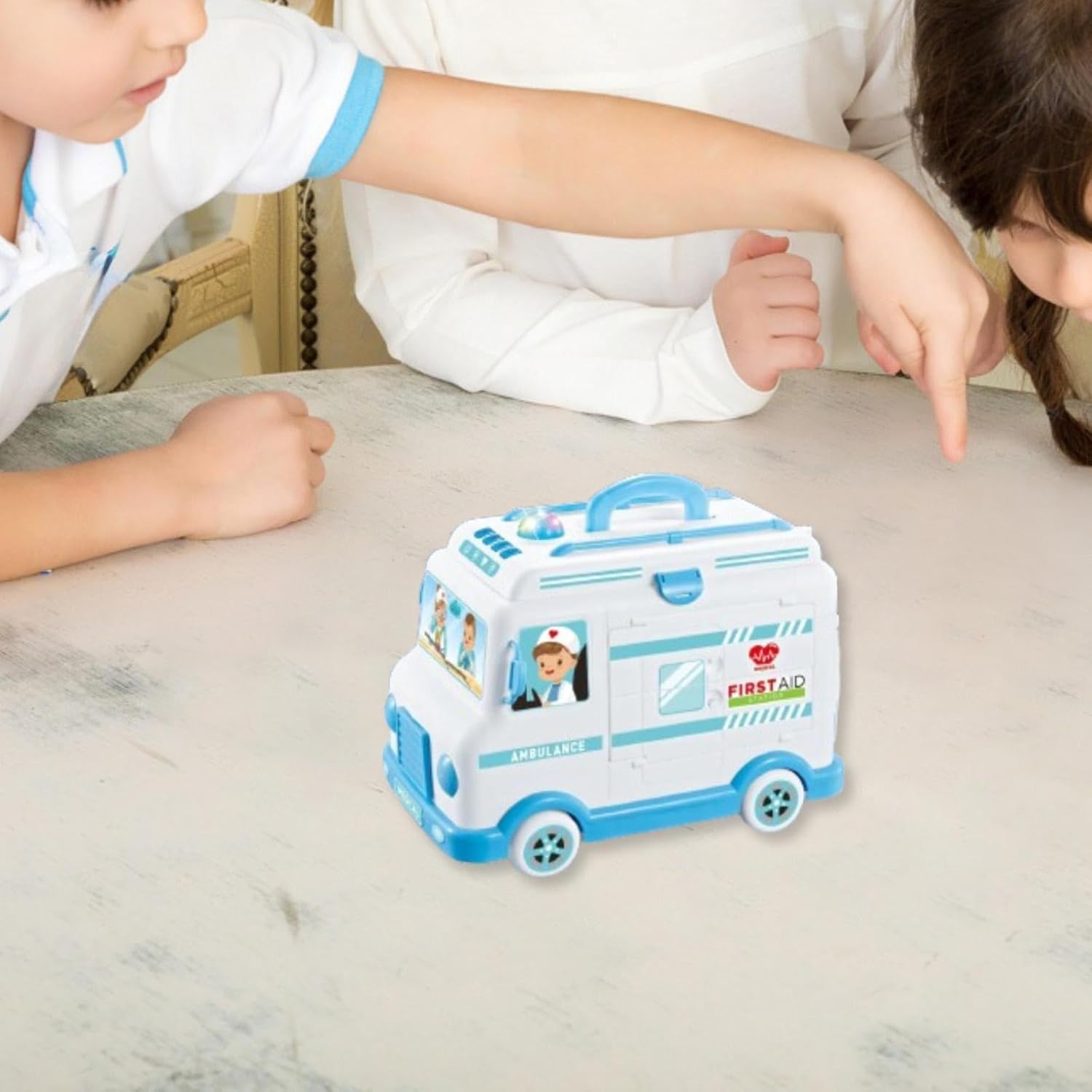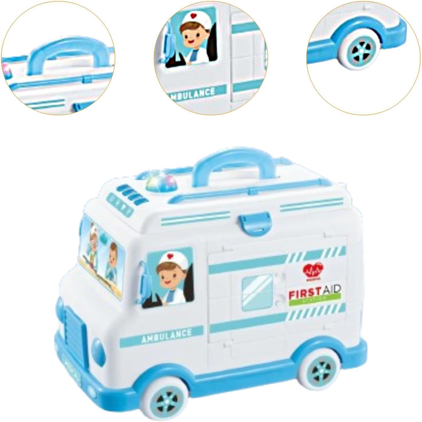 【Regalo per bambini】: questo set di giocattoli da dottore è un regalo ideale per ogni occasione, che si tratti di compleanni, vacanze o anniversari speciali 【Materiale】: kit da dottore per finta realizzati in materiale PP, robusto per un uso a lungo termine 【Caratteristiche】: il giocattolo per bambini per finta ambulanza presenta suoni e luci, che sono più divertenti da giocare 【Esperienza di apprendimento divertente】: con questo set di giocattoli da dottore, i bambini possono diventare dottori partecipando a giochi di ruolo realistici, funge anche da ottimo strumento per l'interazione genitore-figlio 【Set di giocattoli completo】: il set di giocattoli per camion ambulanza include una varietà di strumenti e accessori, offrendo ai bambini un'esperienza completa